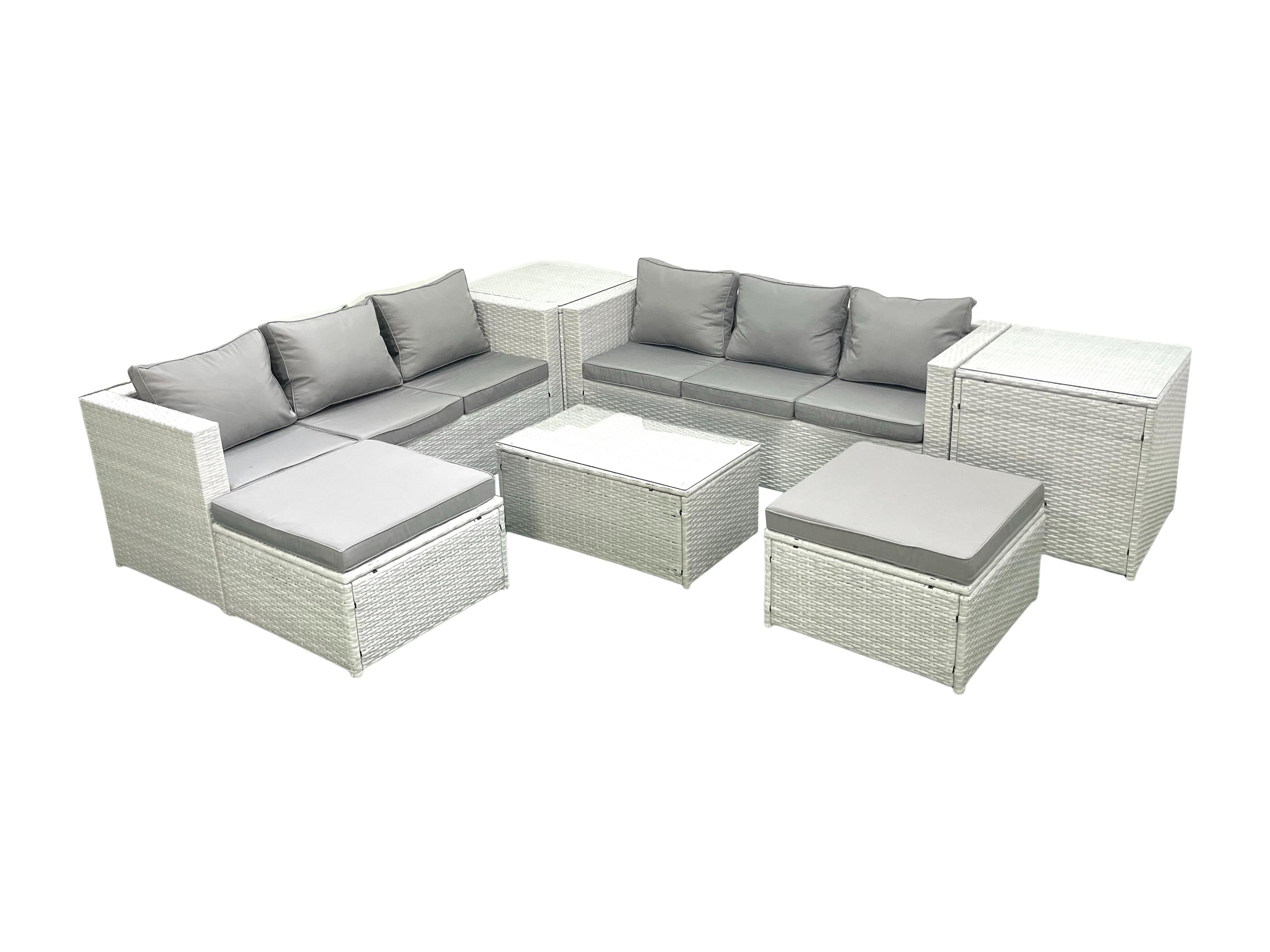 Garten Polyrattanmöbel Set 8-Sitzer Rattan Garten Sofa Set mit 2 hohen Hockern 2 Beistelltischen Hellgrau gemischt