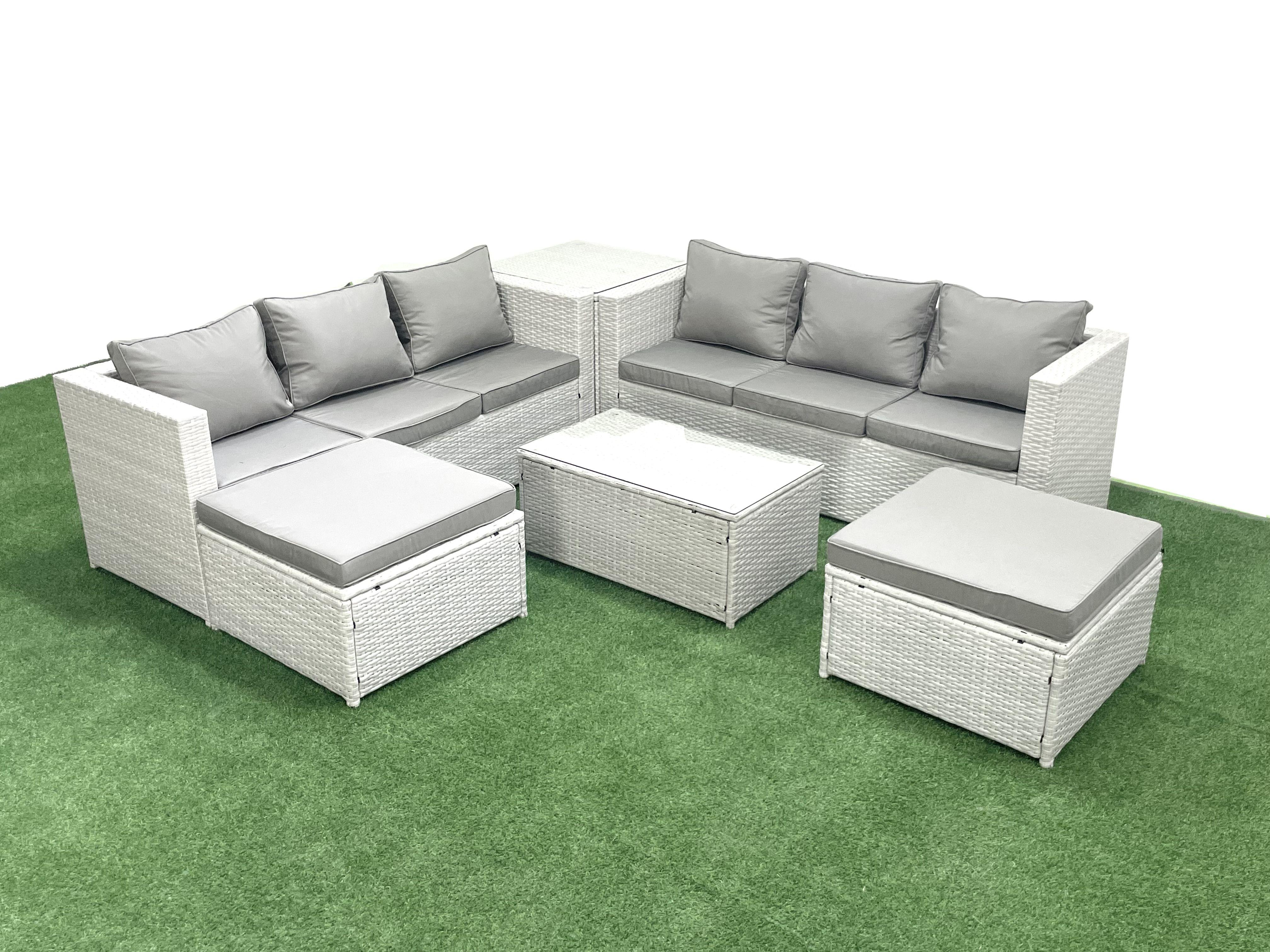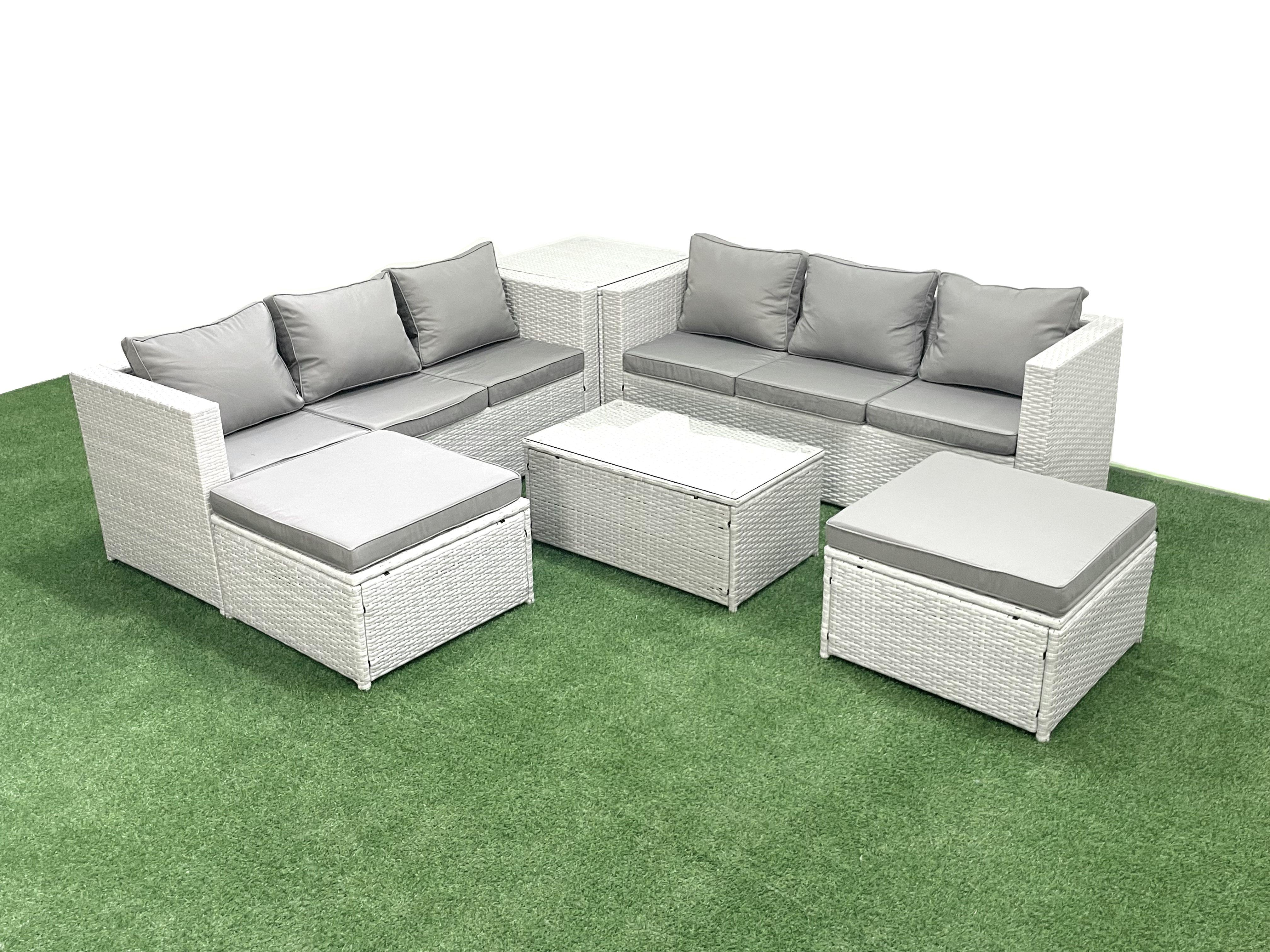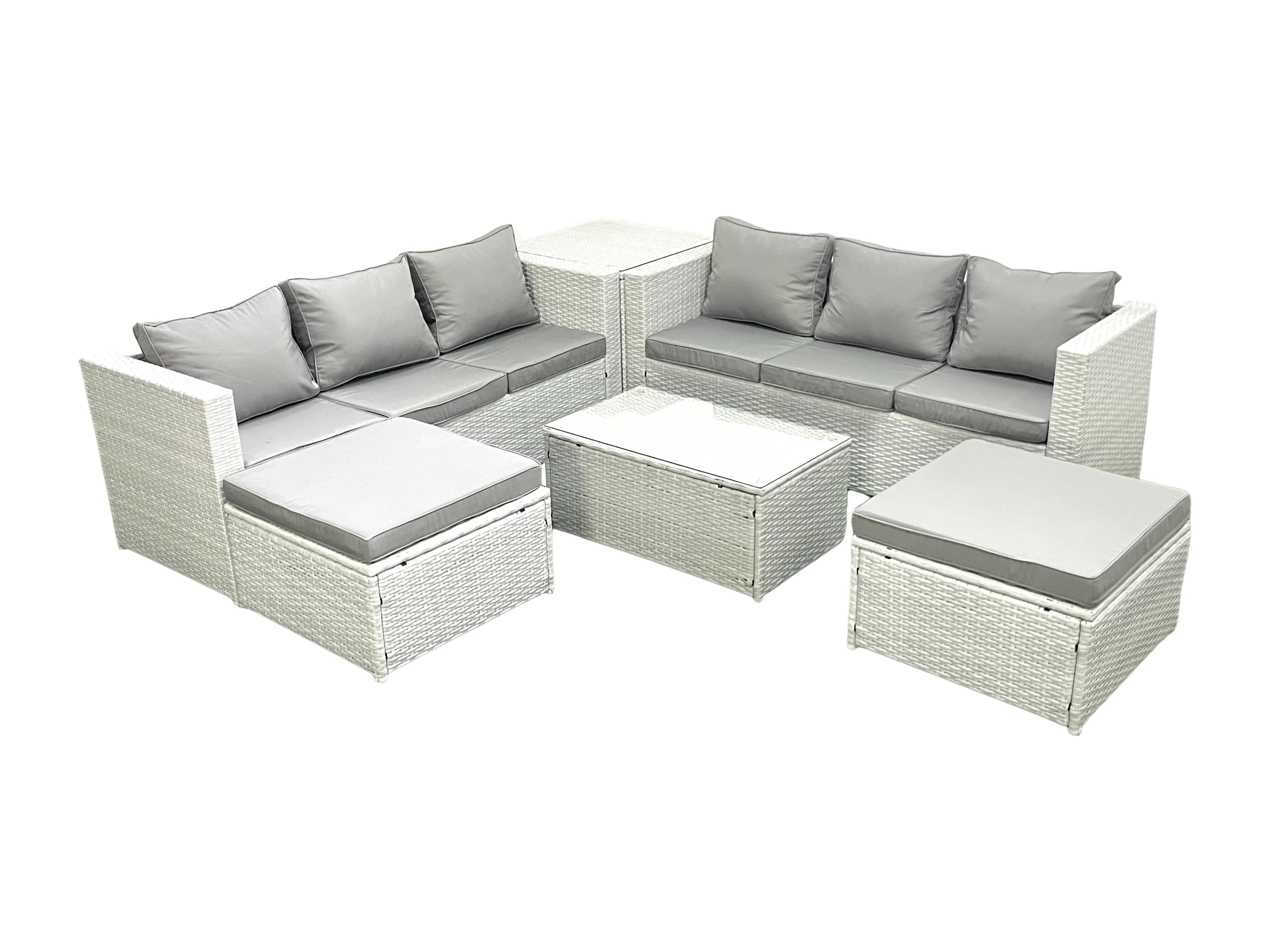 Garten Polyrattanmöbel Set 8-Sitzer Rattan Garten Sofa Set mit 2 hohen Hockern Beistelltisch Hellgrau gemischt