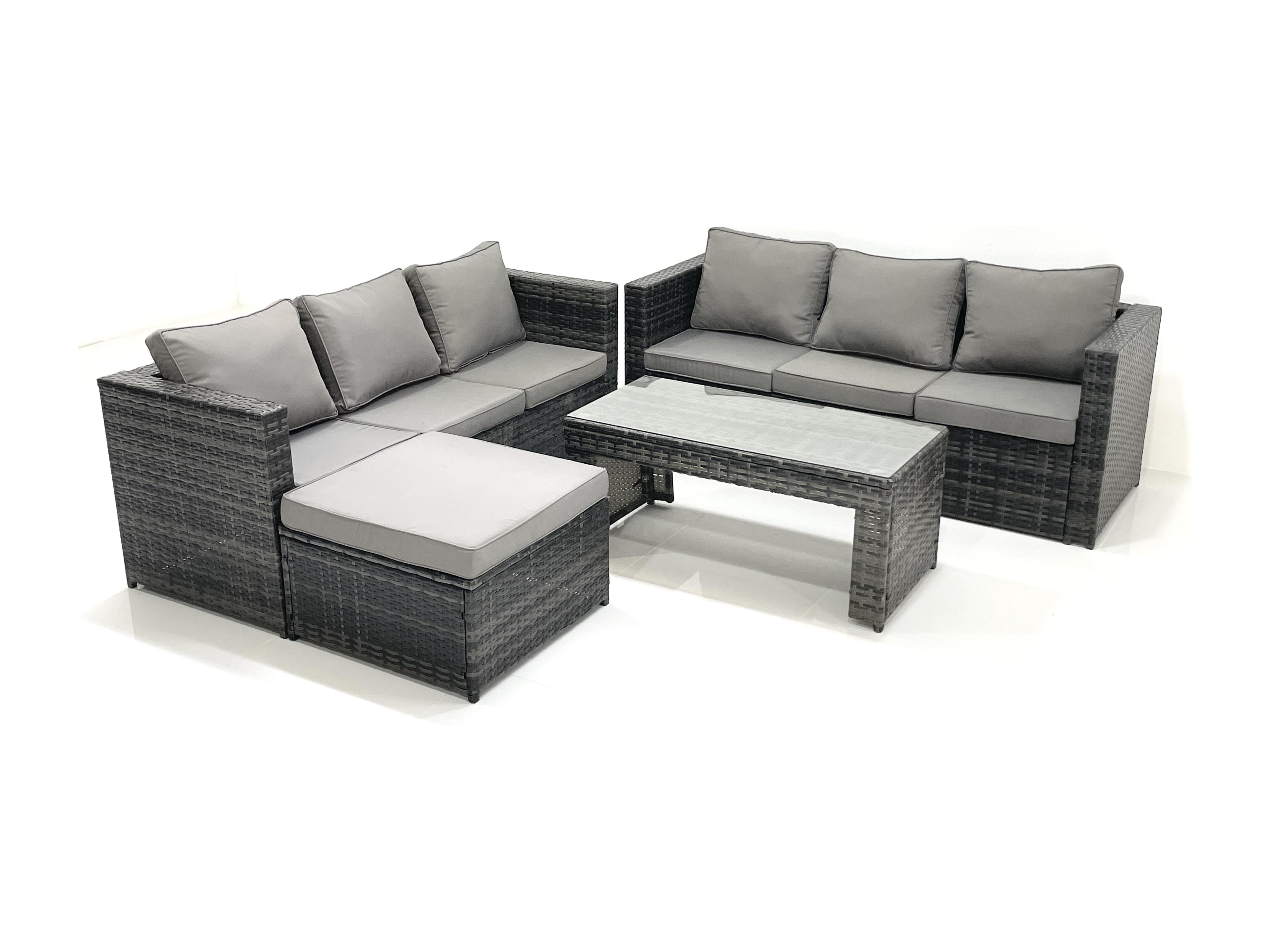 Garten Rattanmöbel Set mit Sofa Couchtisch 2 Großer Hockern Dunkelgrau Gemischt