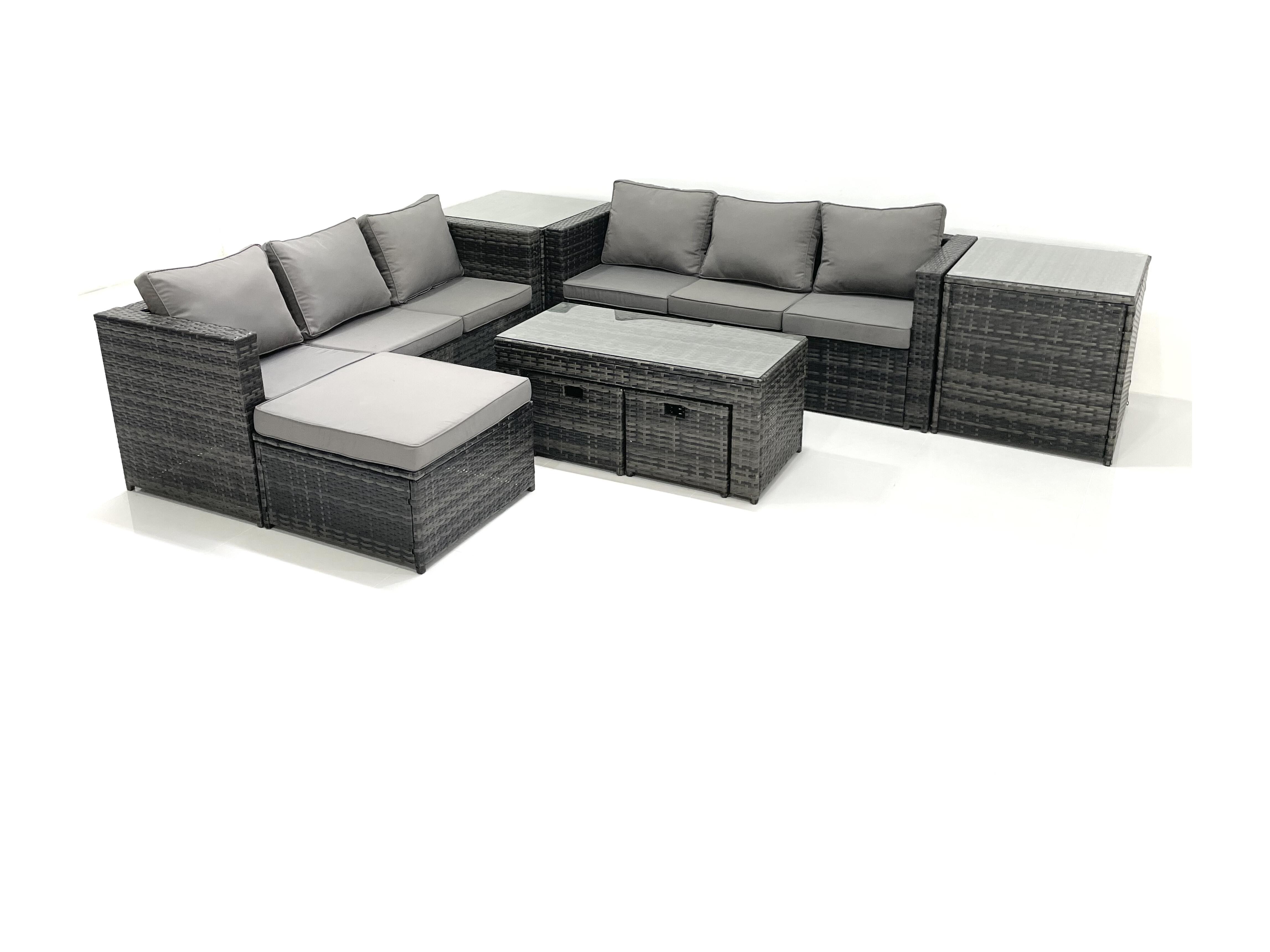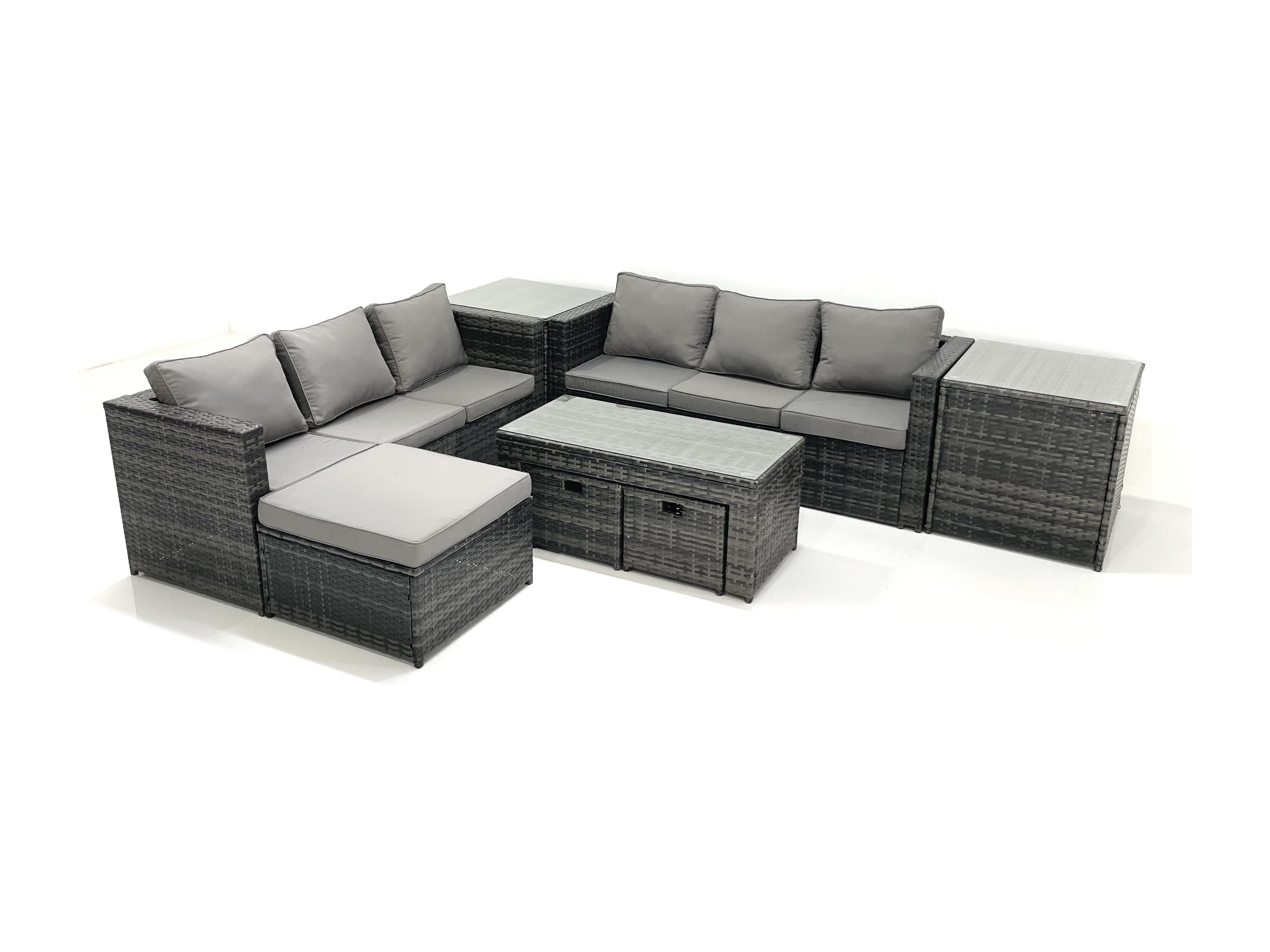 Garten Rattanmöbel Set mit Sofa Couchtisch 3 Hockern 2 Beistelltischen Dunkelgrau Gemischt