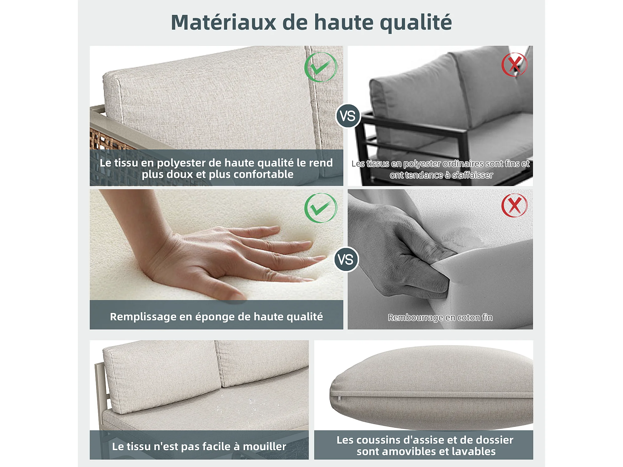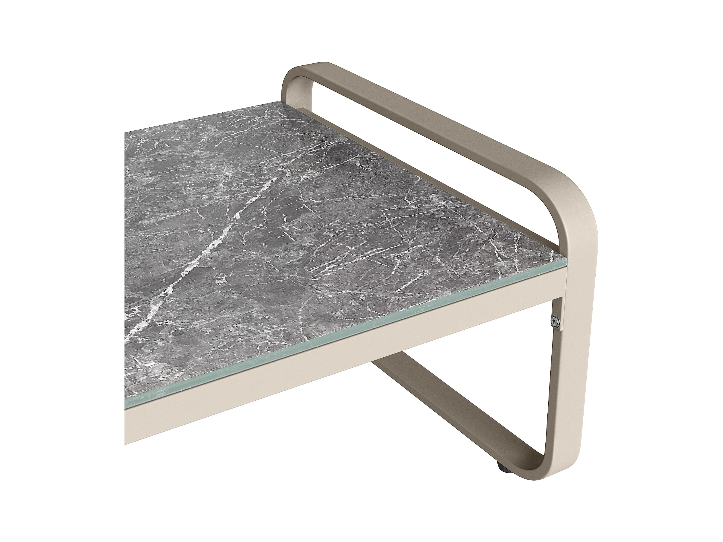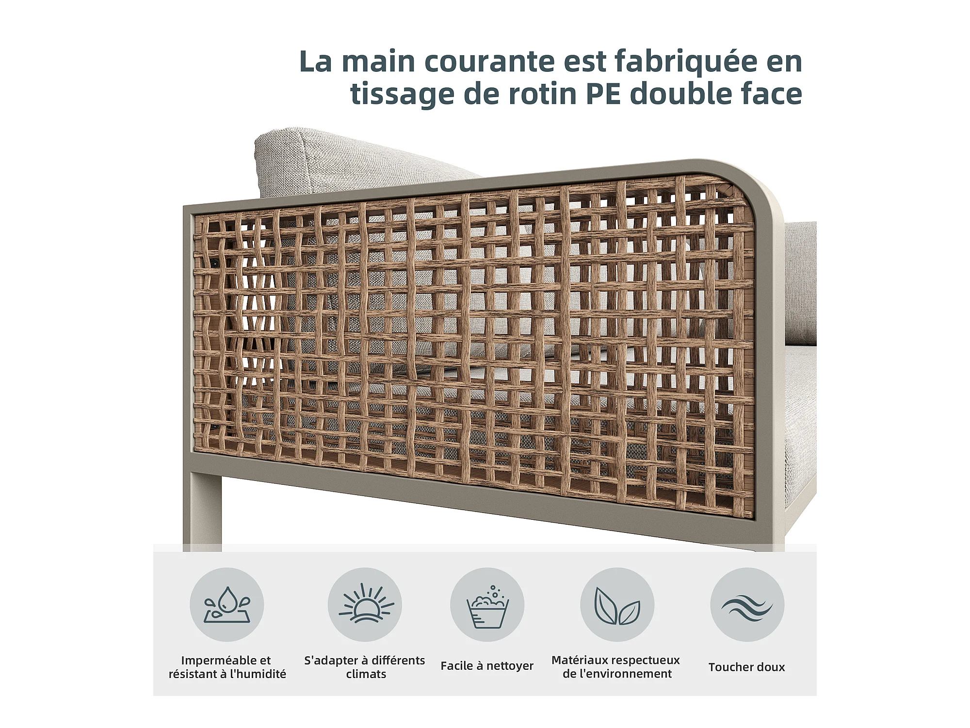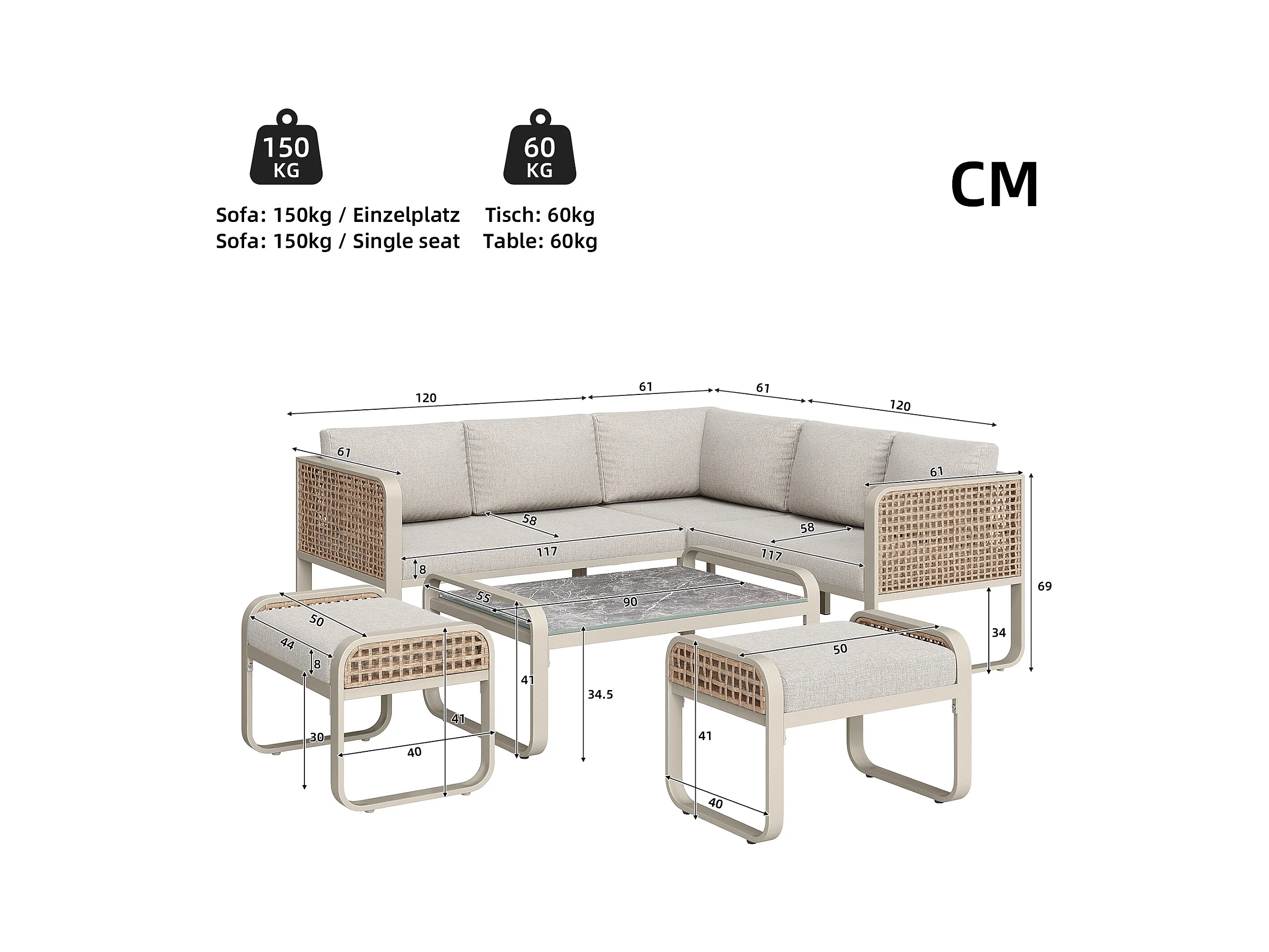Gartenmöbel-Set, Rattanmöbelgruppe für 6-7 Personen, Eckcouch - aus verzinktem Eisen, höhenverstellbare Füße, Beige