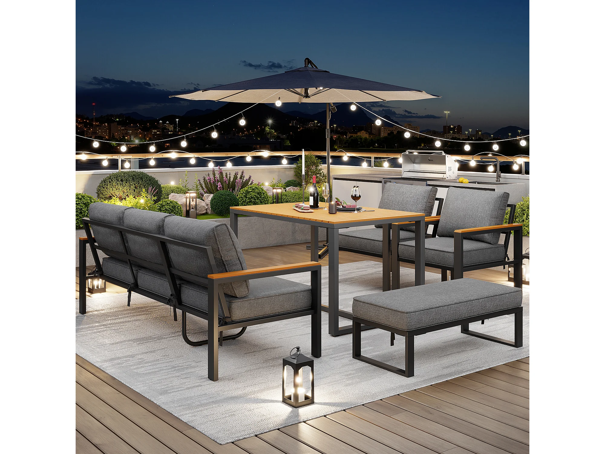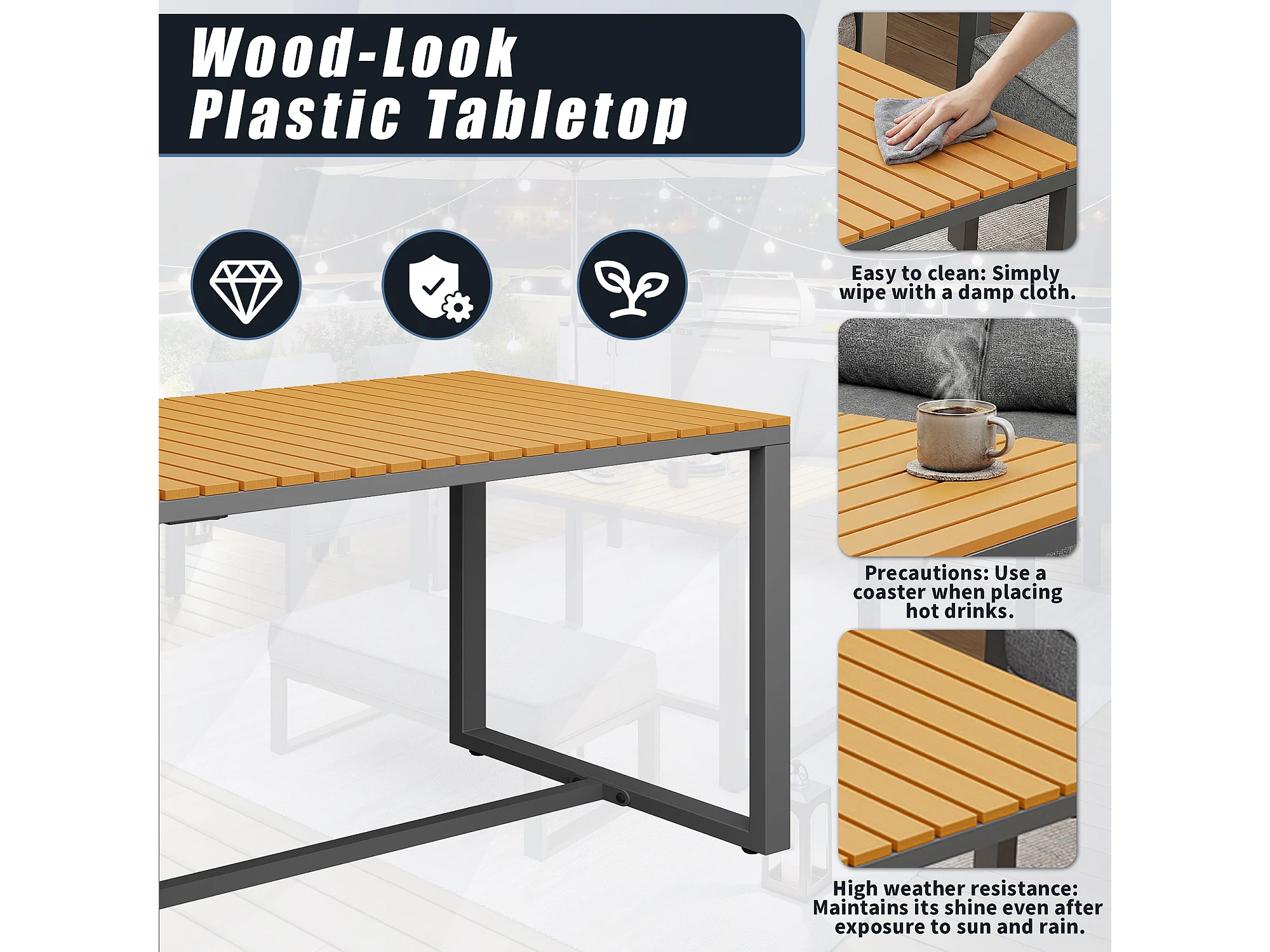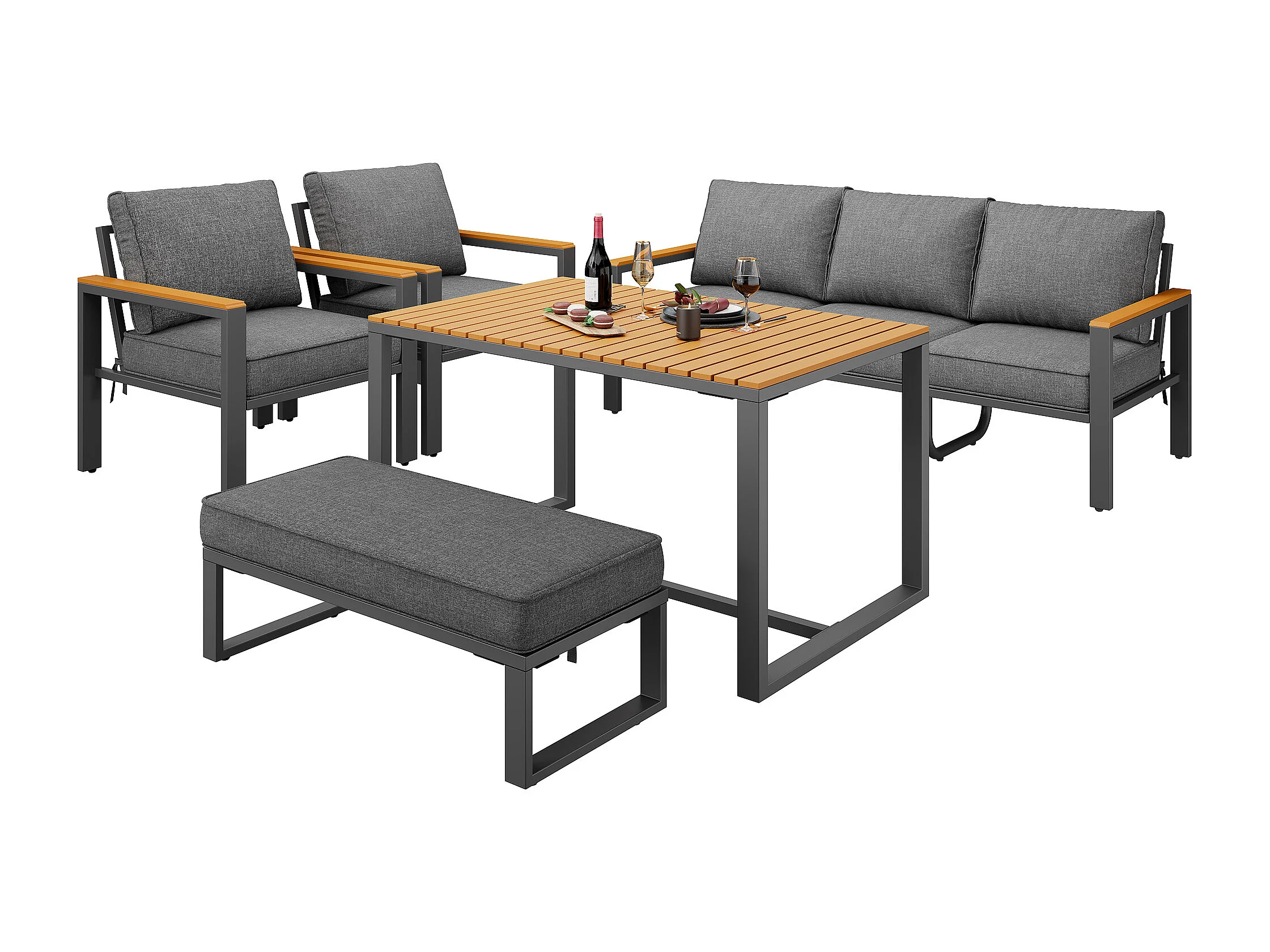 Garten-Salon, Möbelset aus Kunstholz für 6-7 Personen - 3-Personen-Sofa - aus verzinktem Eisen - Tische - 2 Sessel - Bank, Grau