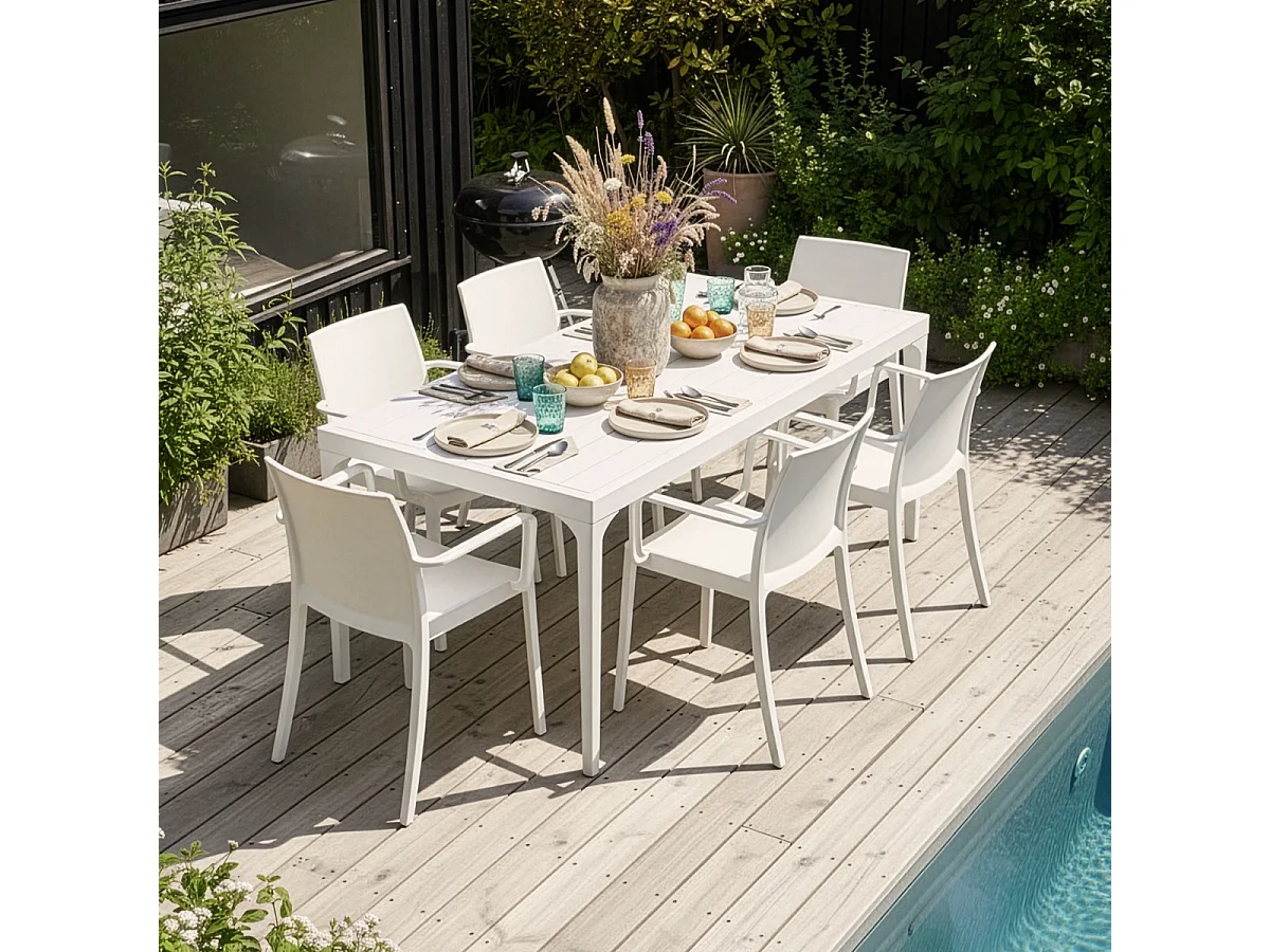 Garten-Set 6 Stühle Outdoor-Tisch 150x90cm weiß Sunrise Light