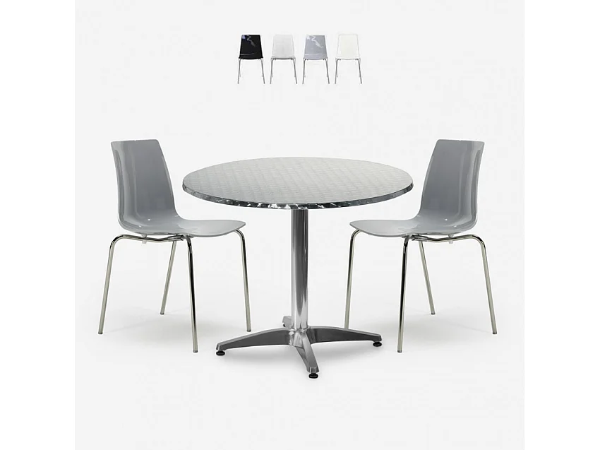 Garten-Set mit 2 modernen Stühlen und rundem Tisch 70cm aus Stahl Remos - Grau
