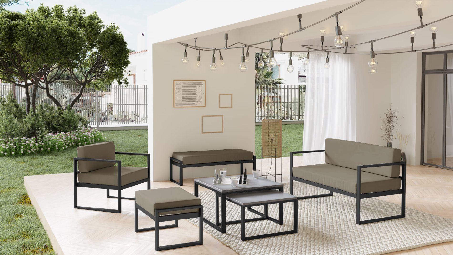 Garten-Sofa 2-Sitzer - wasserabweisend - hellbraun/schwarz - DYWILLY