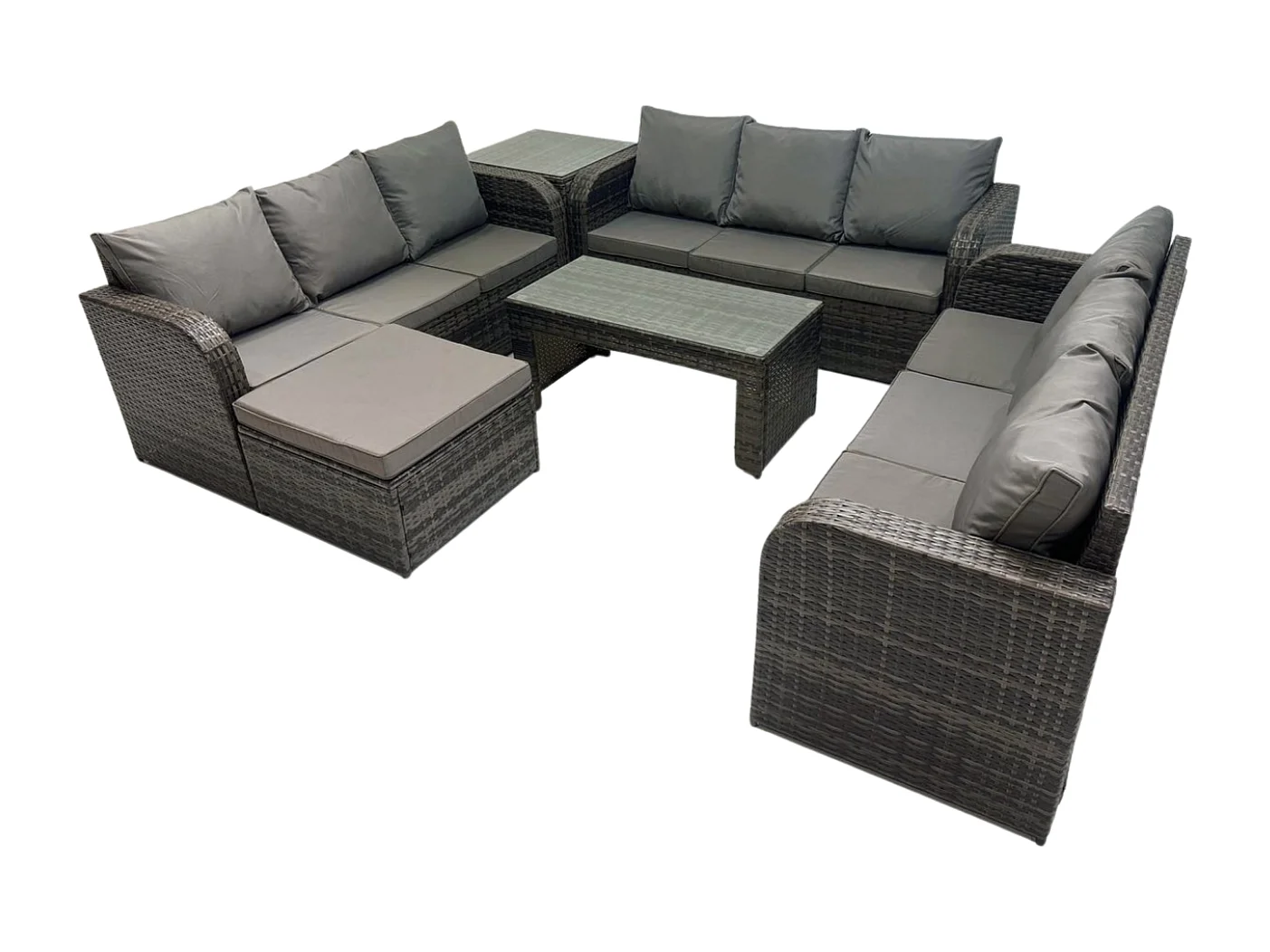 Garten Sofa im Freien Set 10-Sitzer Polyrattan Gartenmöbel Set mit Rechteckiger Couchtisch Beistelltisch 2 Großer Hockern 3-Sitzer Sofa Dunkelgrau Gemischt