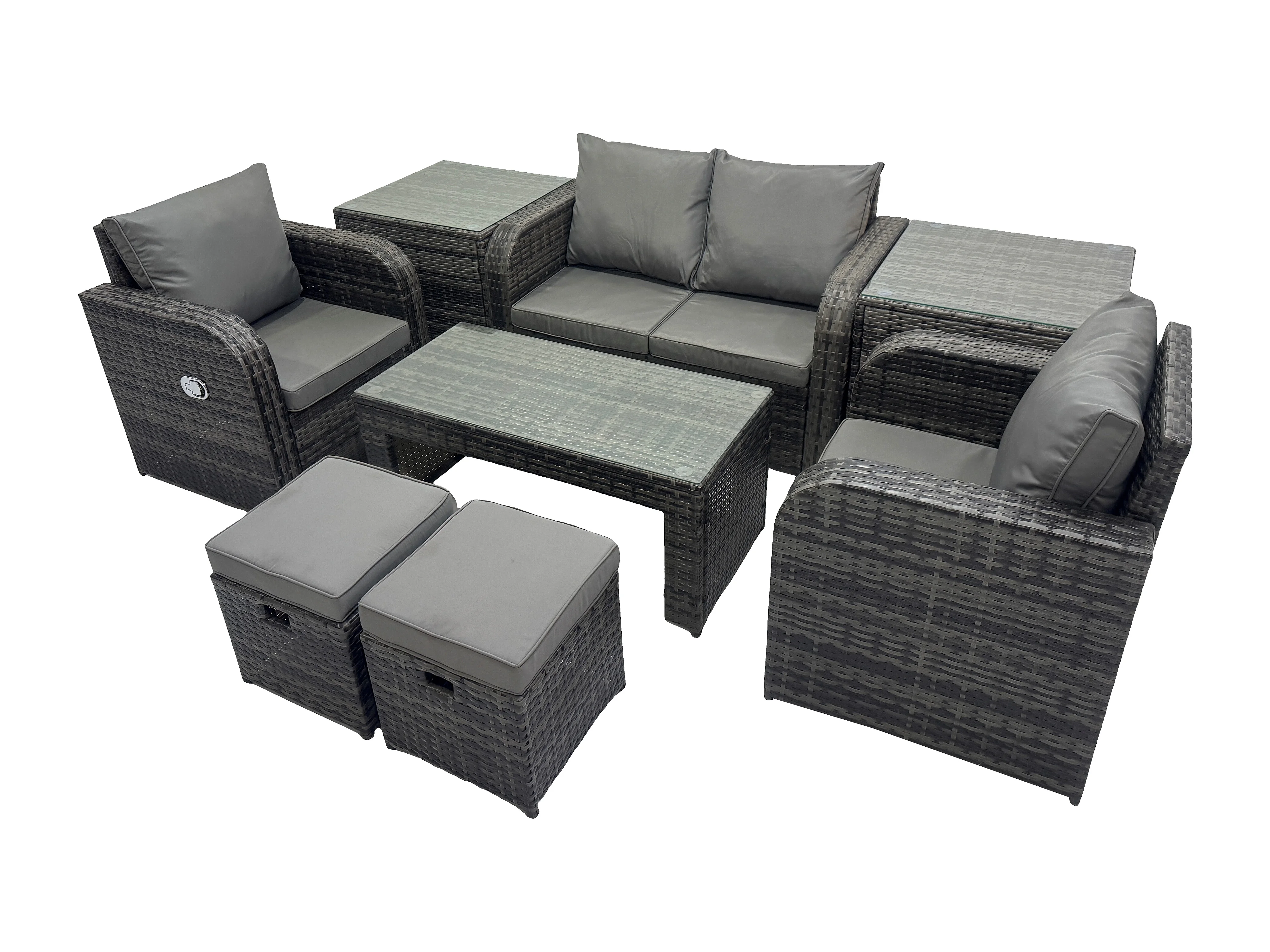Garten Sofa im Freien Set Polyrattan Gartenmöbel Set mit Liegestühle Couchtisch 2 Beistelltischen 2 kleine Fußhockern Dunkelgrau Gemischt