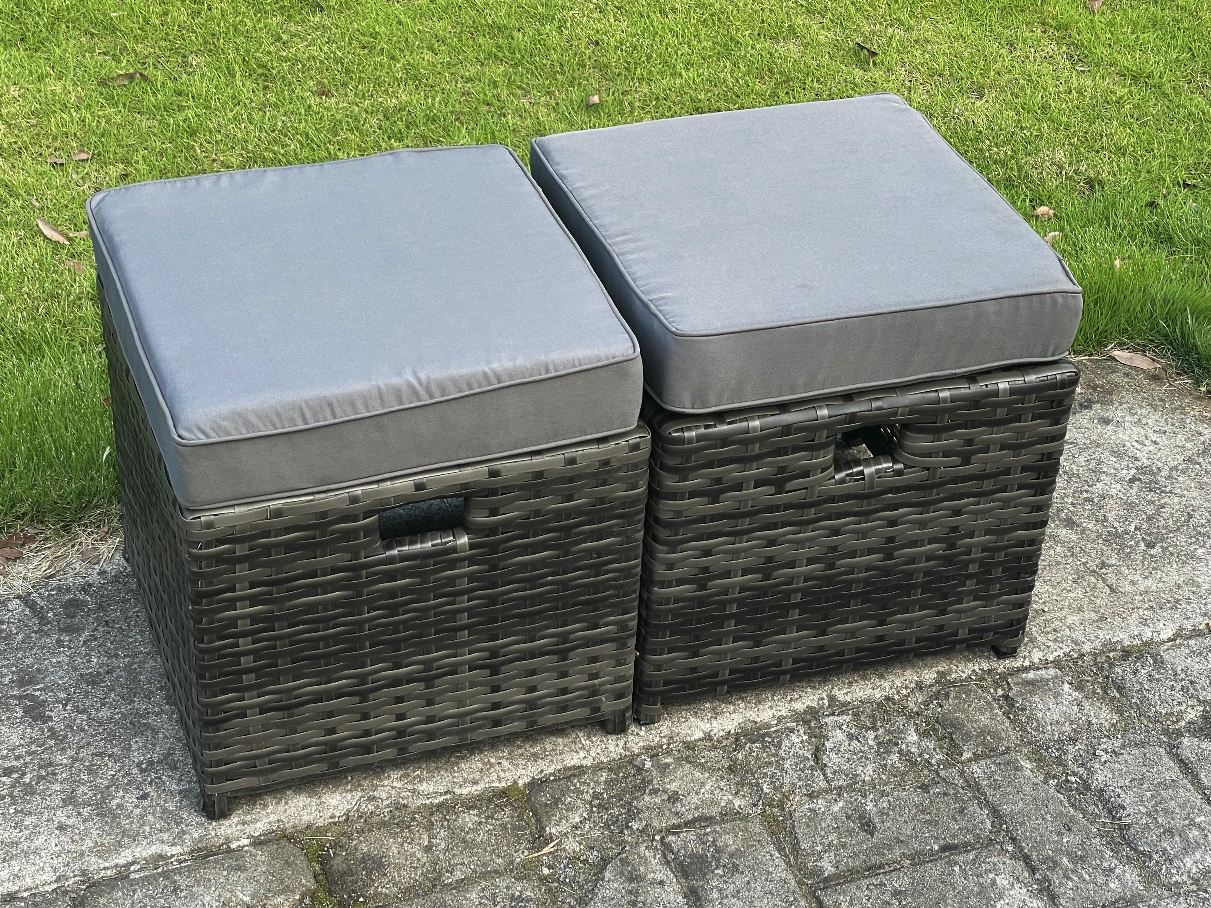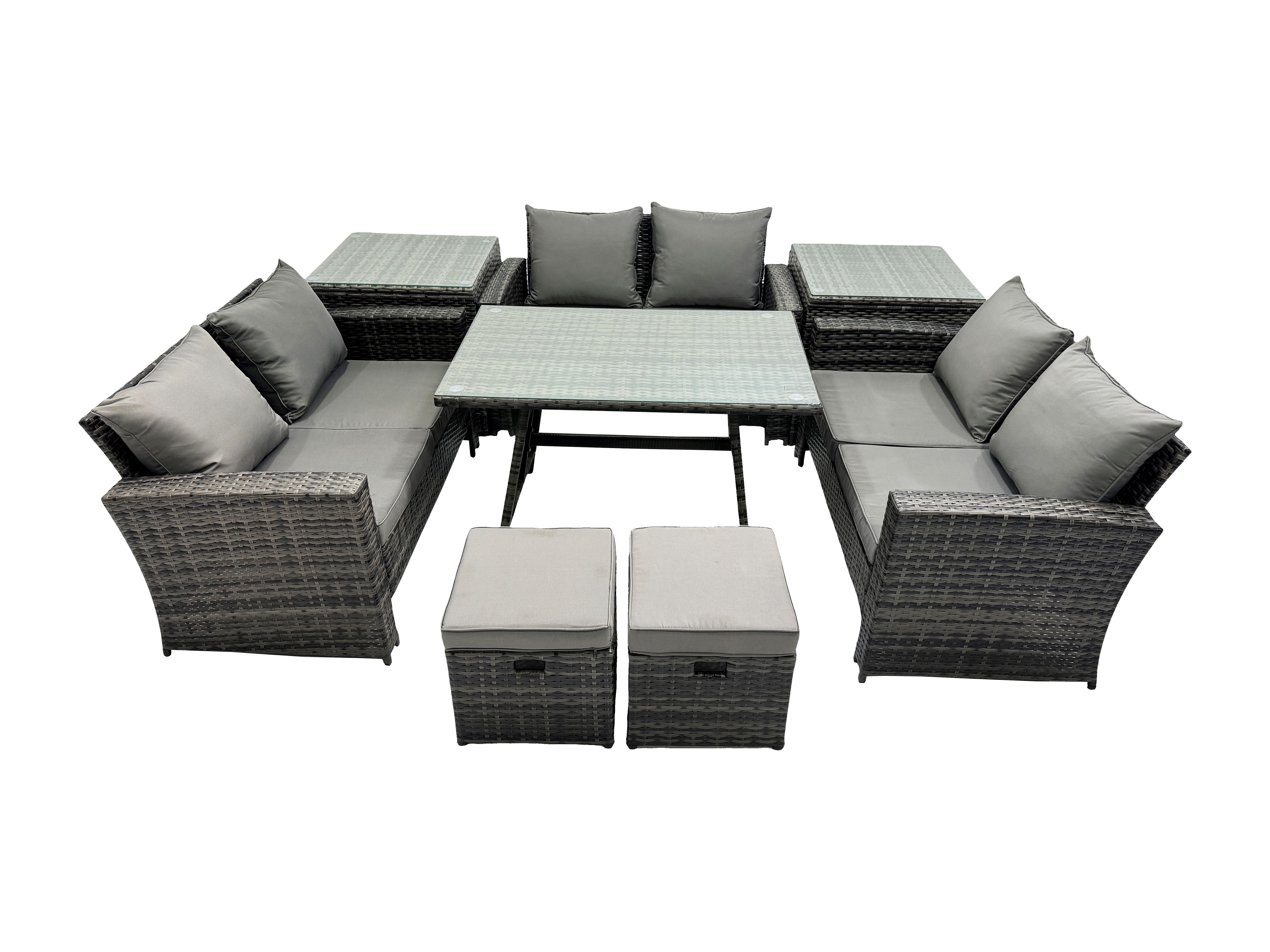 Garten Sofa im Freien Set Polyrattan Gartenmöbel Set mit Rechteckiger Esstisch 2 Seat Sofa 2 kleine Fußhockern 2 Beistelltischen Dunkelgrau Gemischt