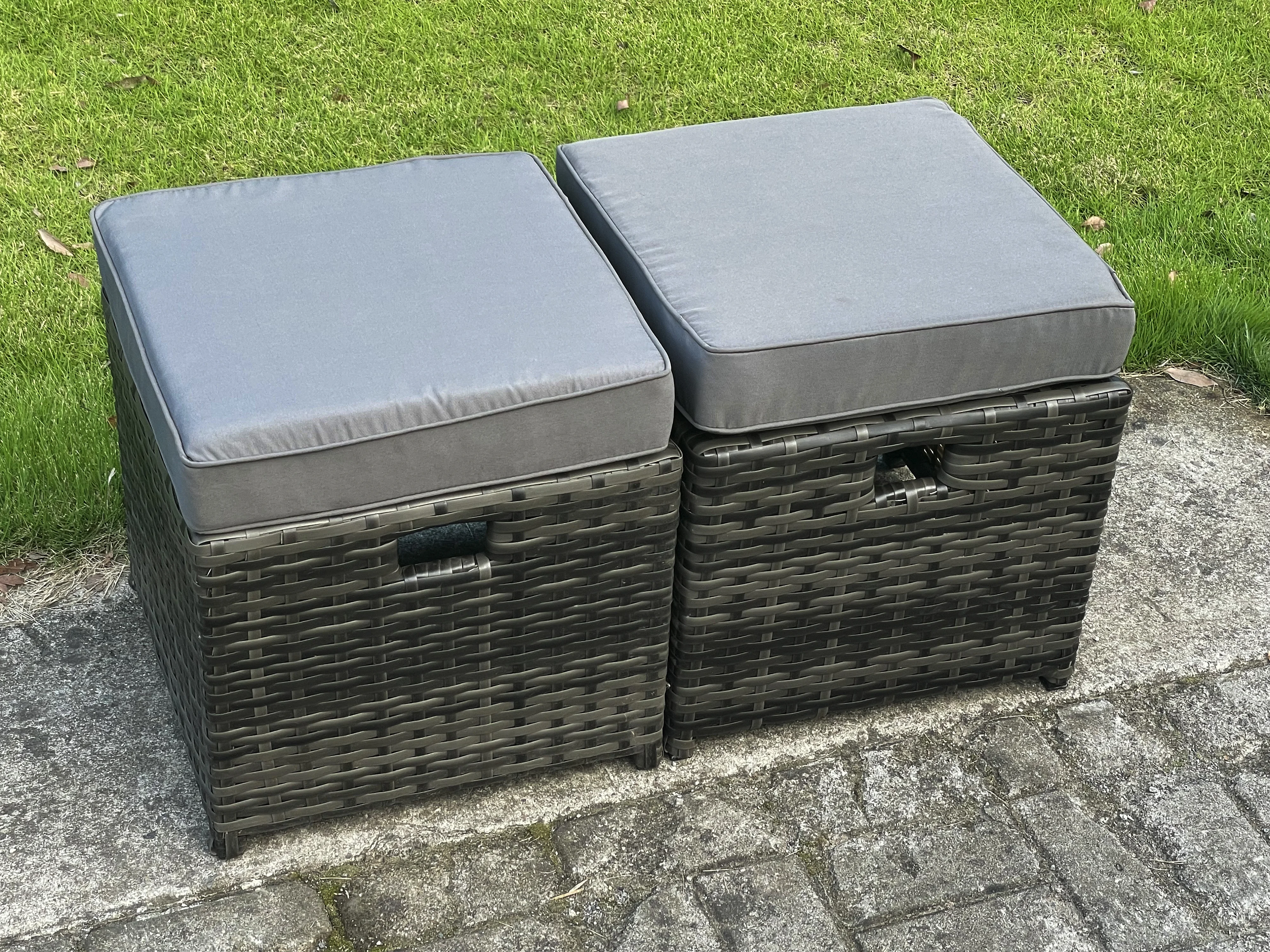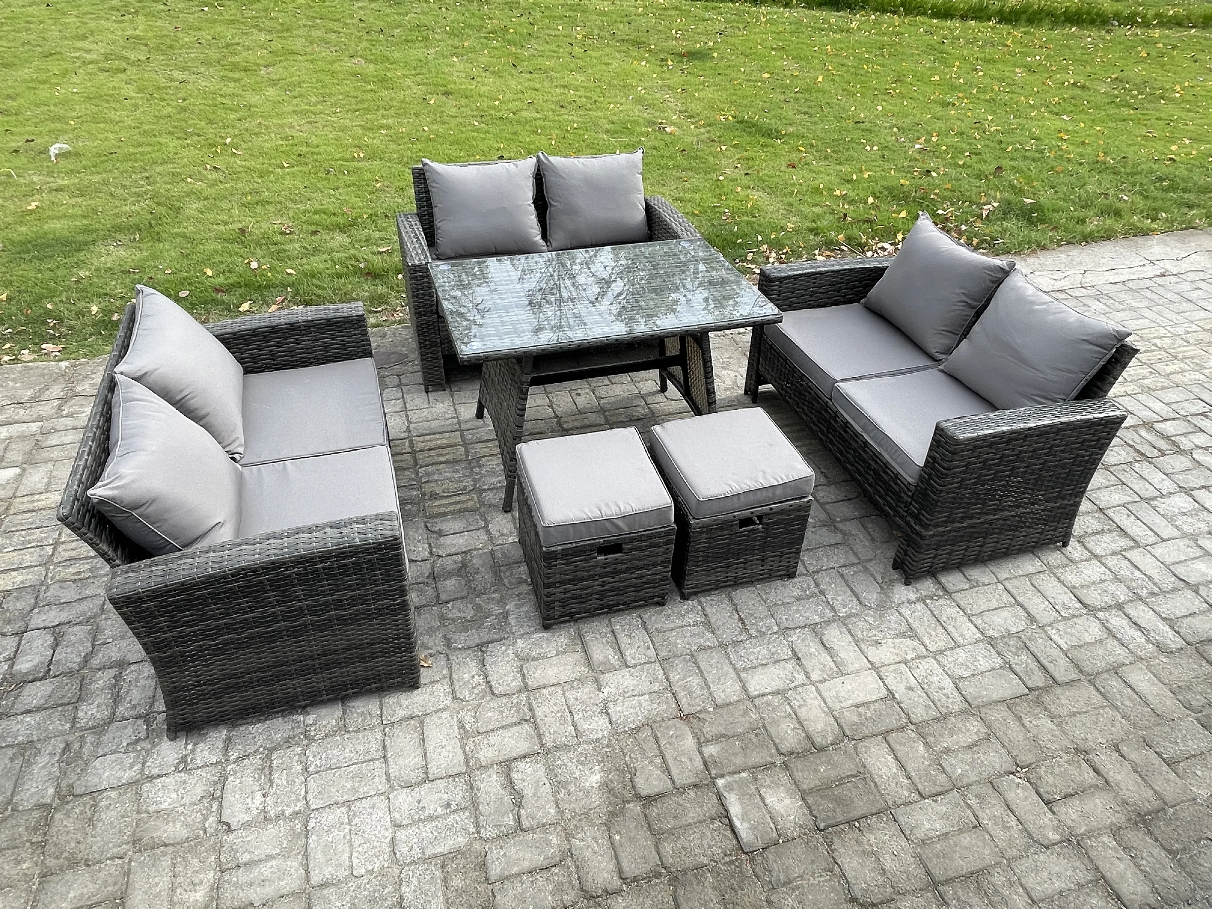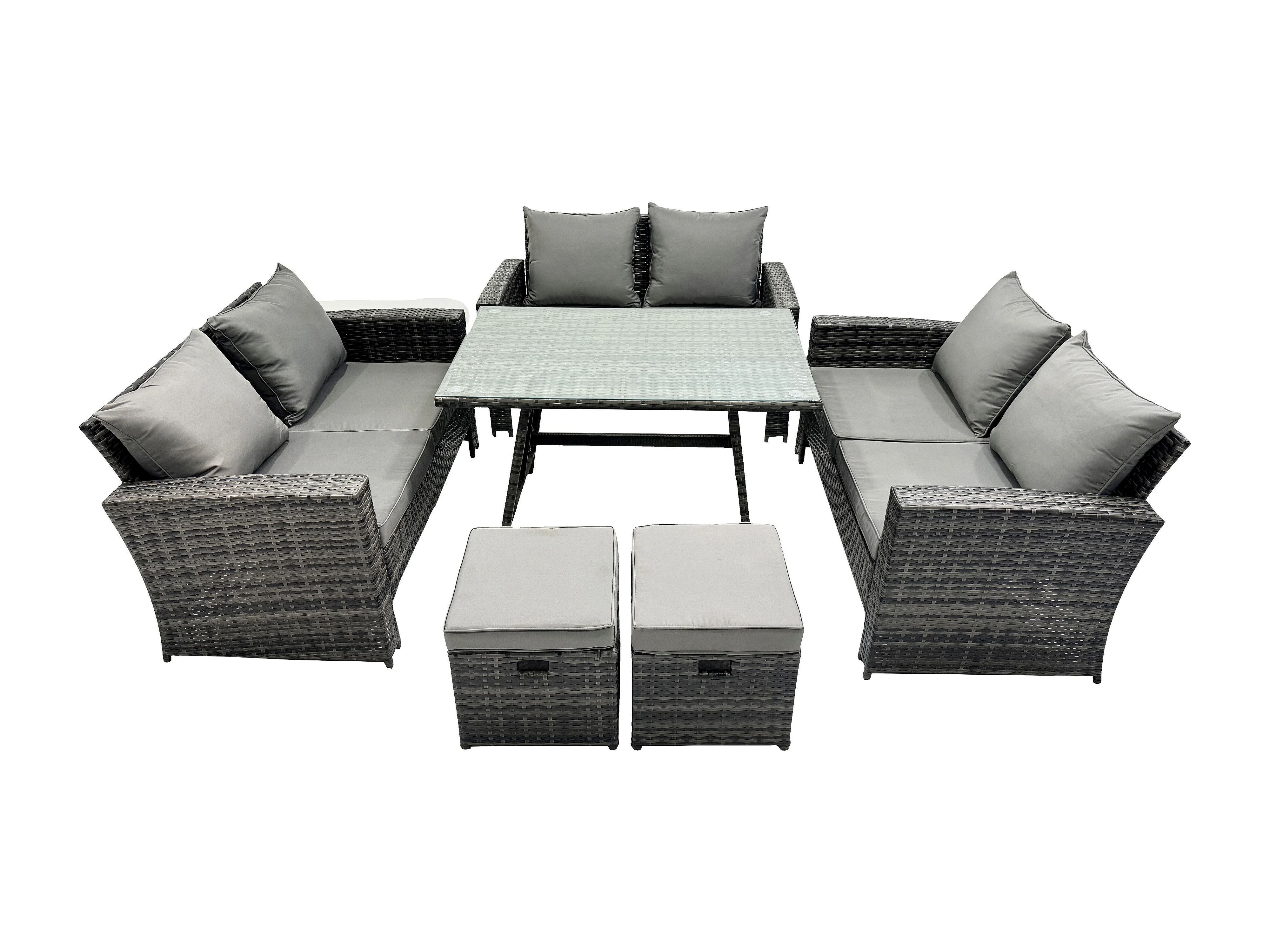Garten Sofa im Freien Set Polyrattan Gartenmöbel Set mit Rechteckiger Esstisch 2 Seat Sofa 2 kleine Fußhockern Dunkelgrau Gemischt