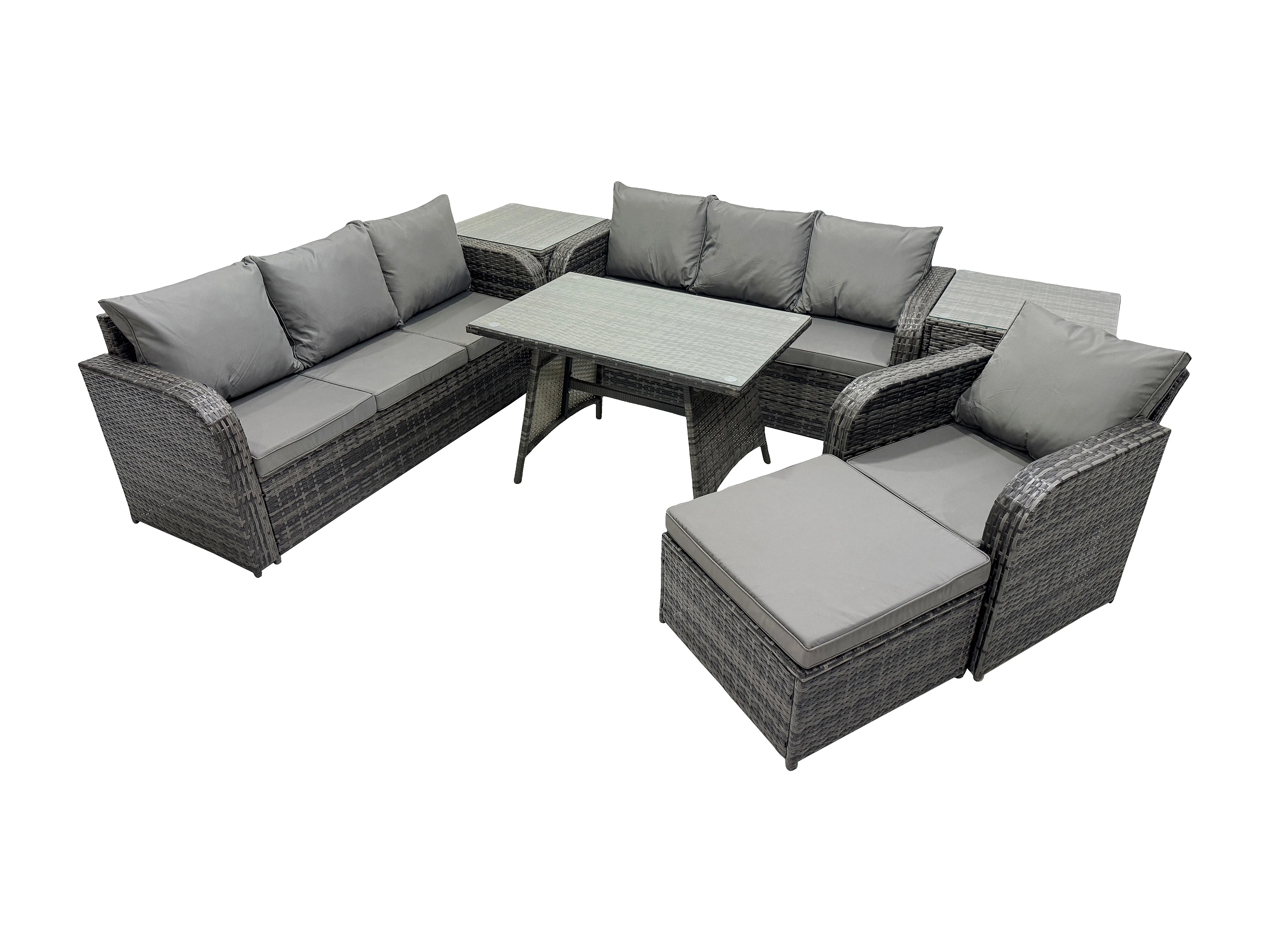 Garten Sofa im Freien Set Polyrattan Gartenmöbel Set mit Rechteckiger Esstisch Liegestühle 2 Beistelltischen 2 Großer Hockern Dunkelgrau Gemischt