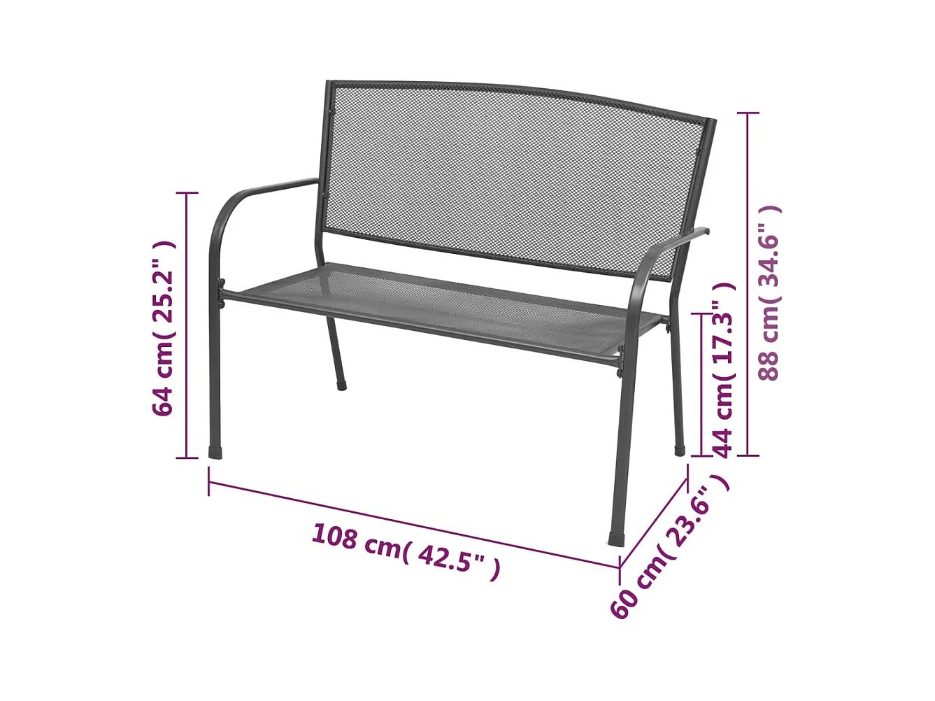 Gartenbank 108 cm Stahl und Drahtgitter Anthrazit