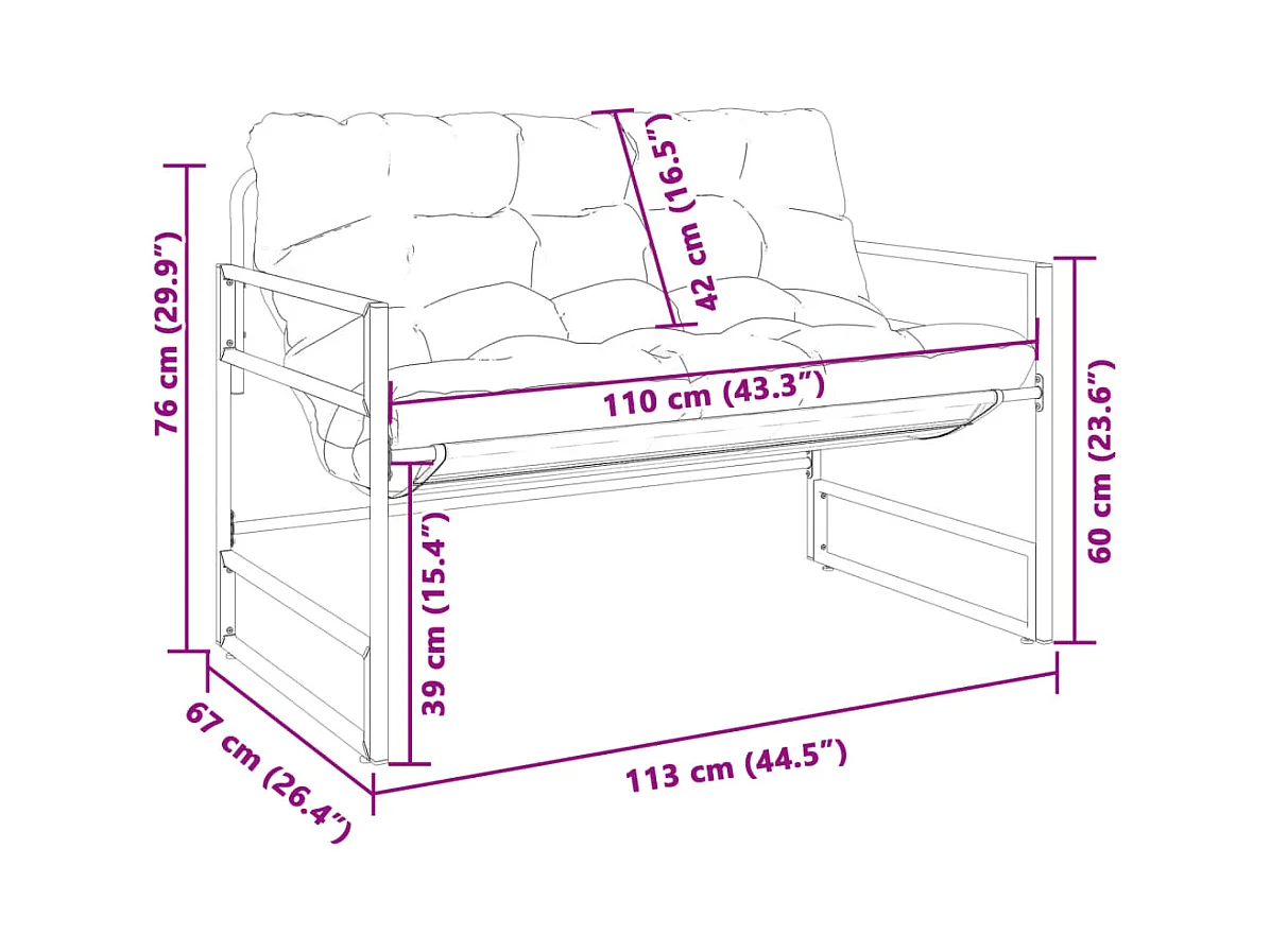 Gartenbank mit Kissen Anthrazit 113 cm Stahl