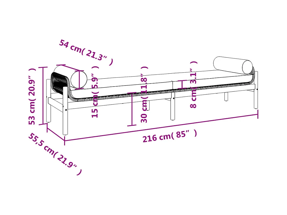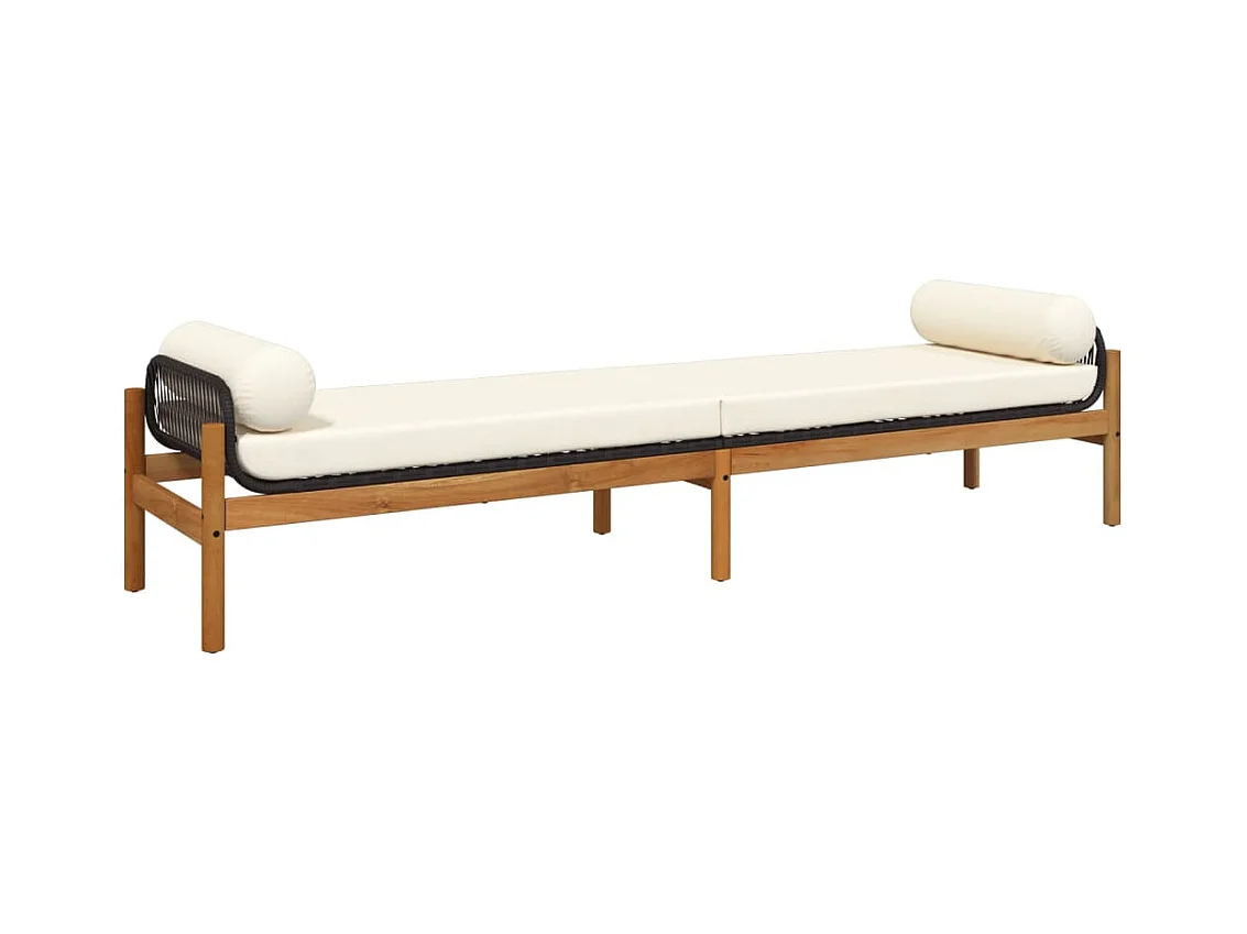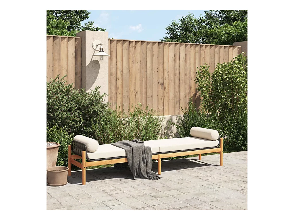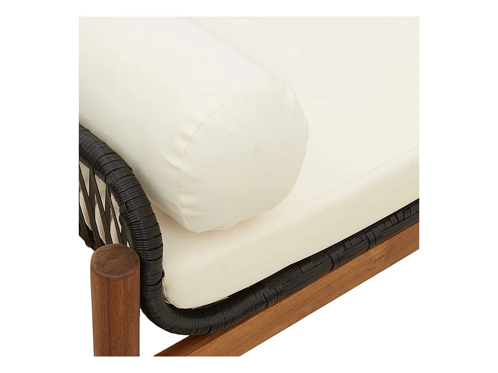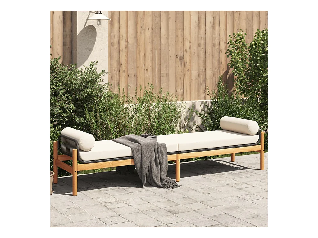 Gartenbank mit Kissen aus schwarzem Akazienharzgeflecht