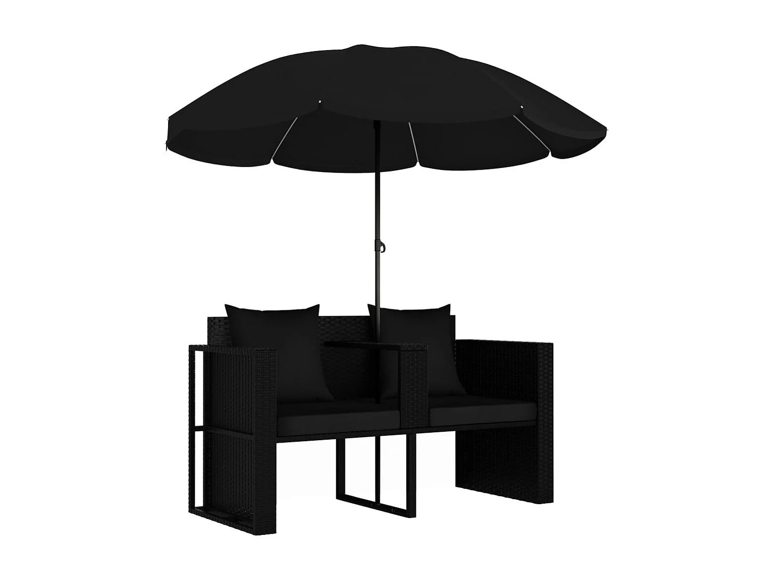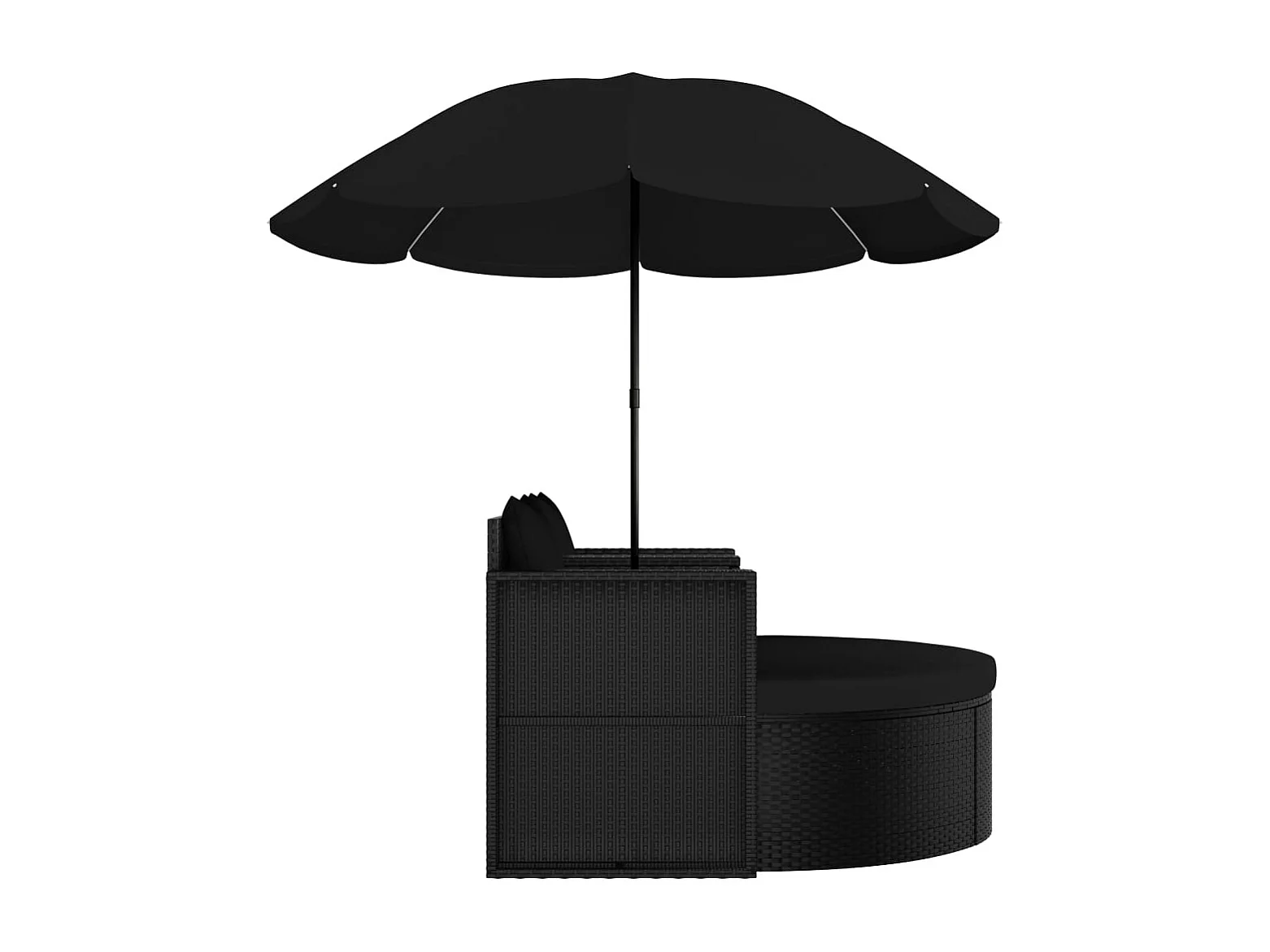 Gartenbett mit Sonnenschirm Poly Rattan Schwarz