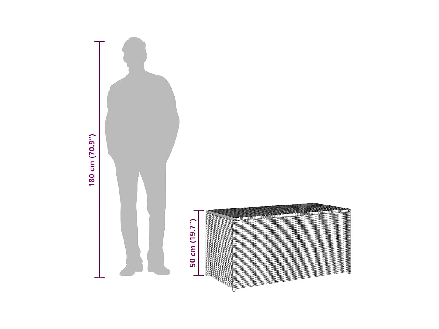 Gartenbox Poly Rattan 100x50x50 cm Grau