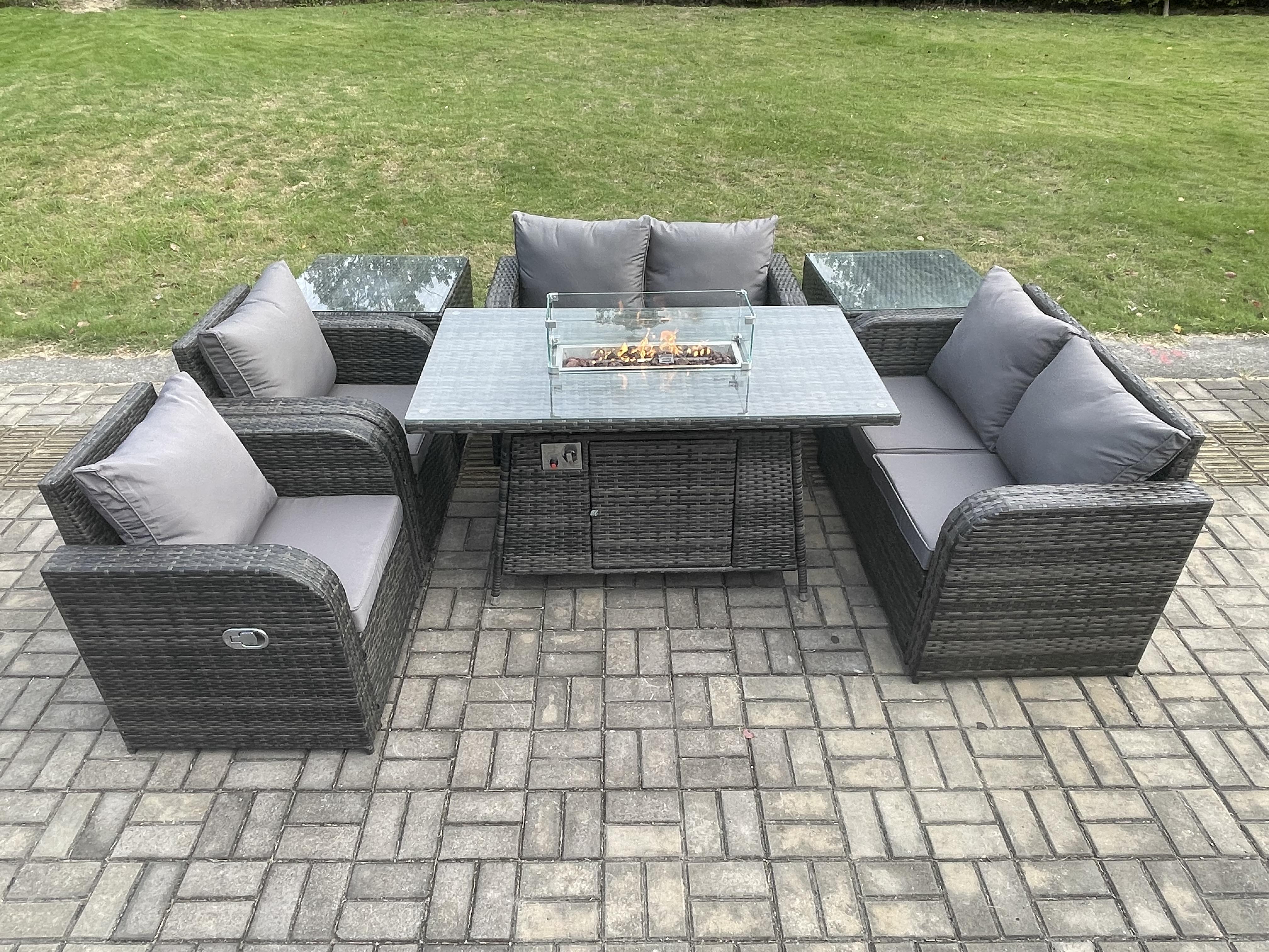 Gartengarnitur Polyrattan mit Gas Feuerstelle 6-Sitzer