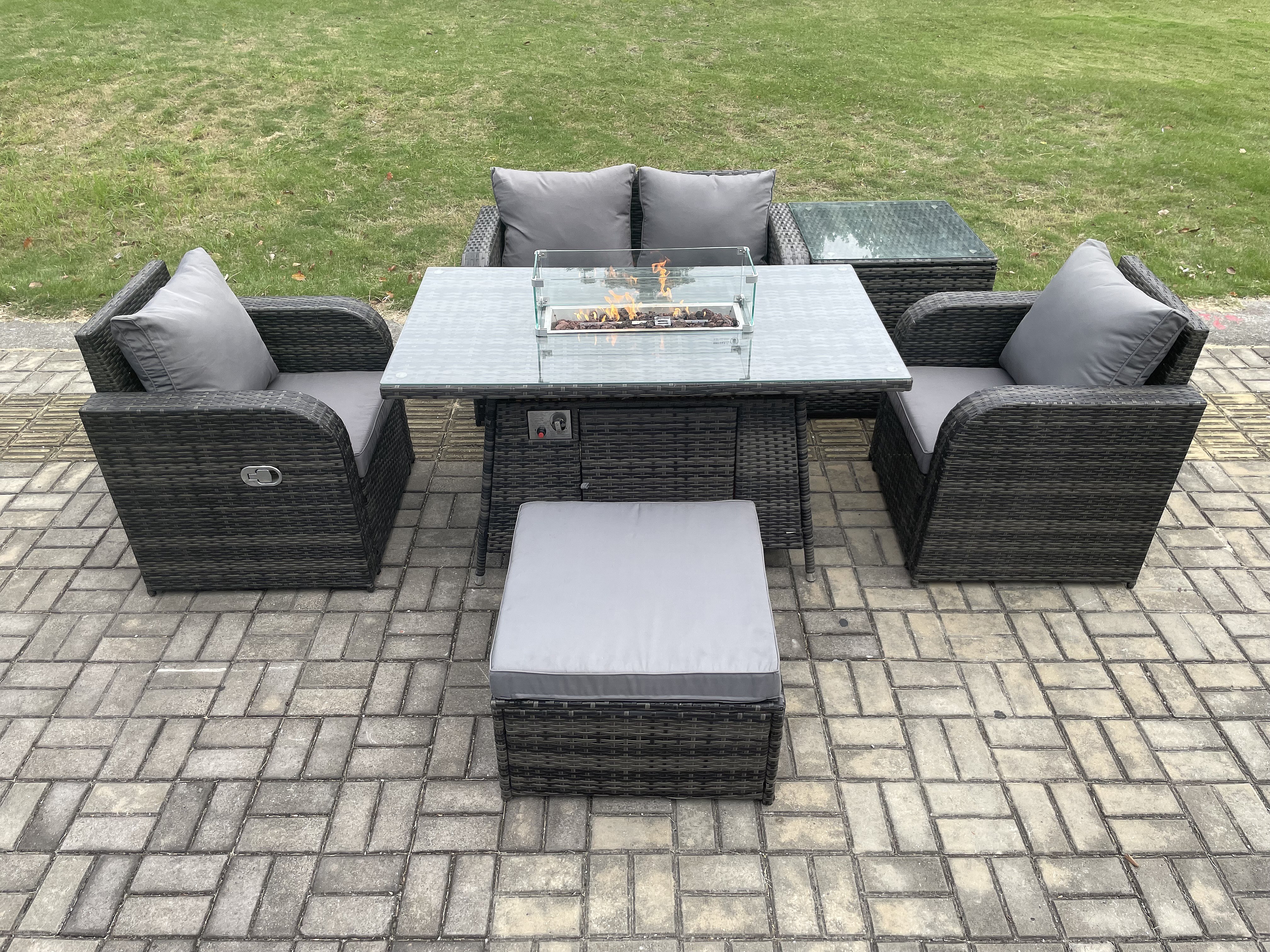 Gartengarnitur Polyrattan mit Gas Feuertisch 5-Sitzer