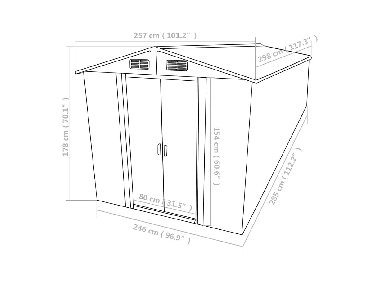 Gartenhaus 257x298x178 cm Metall Grau