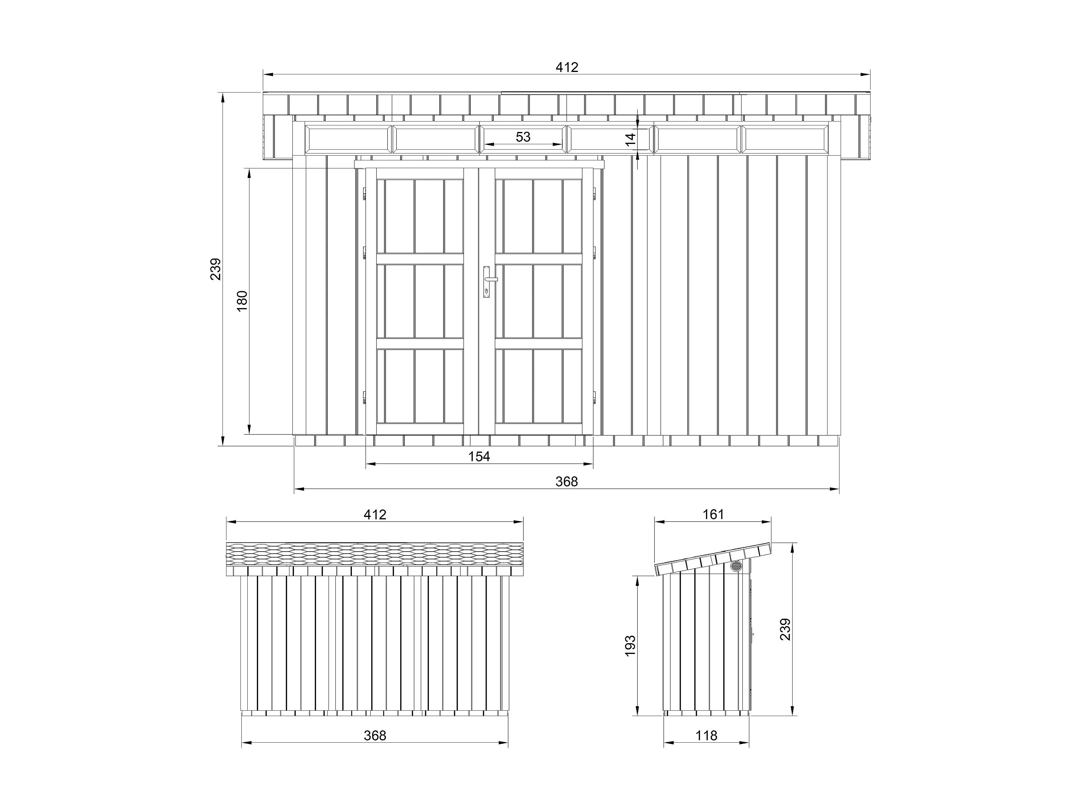 Gartenhaus premium qualität mit boden und bitumenfliesen - 4.3m² / B161xL411xH239 cm - M902A-TUNDRA GREY