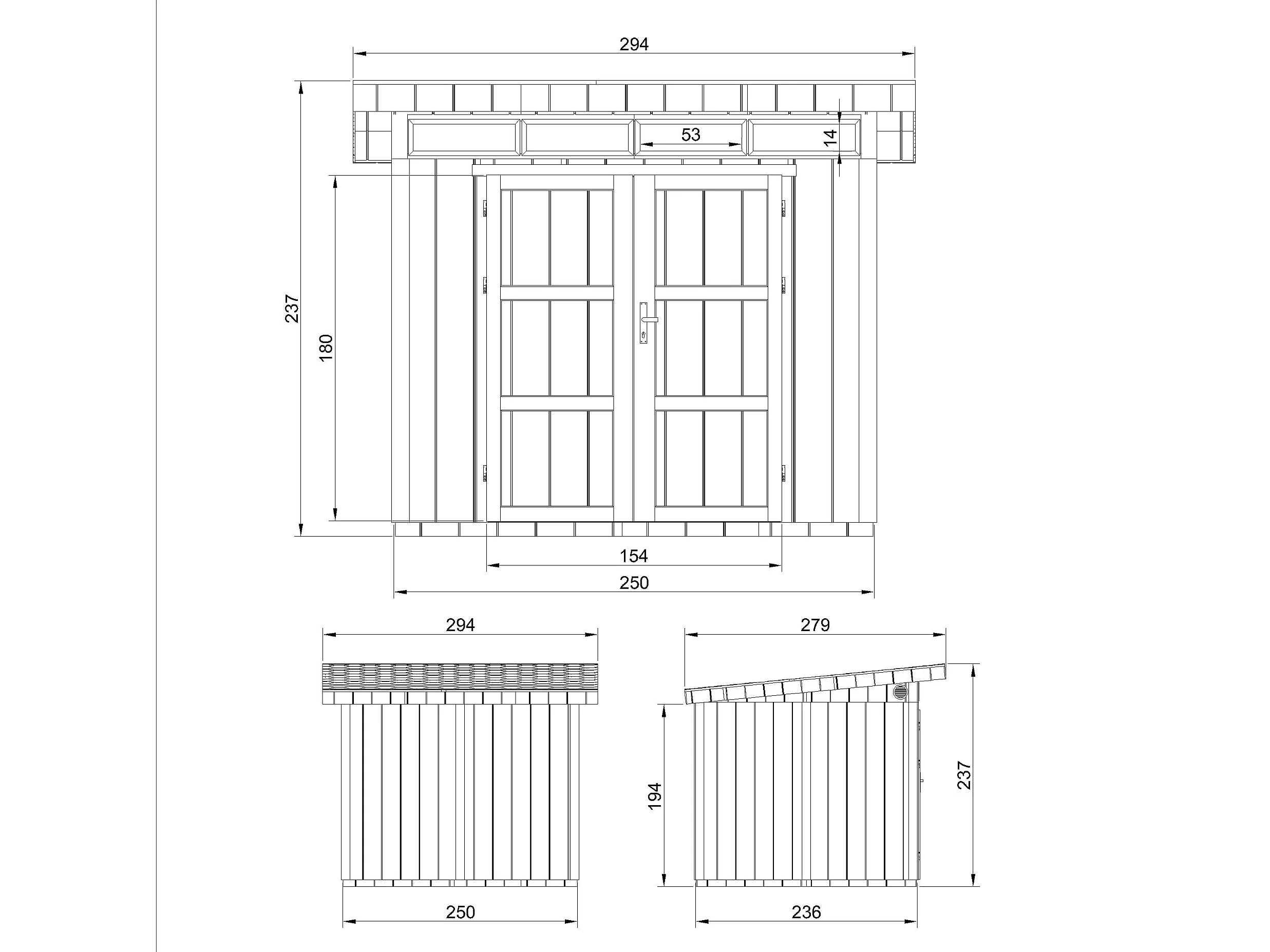 Gartenhaus premium qualität mit boden und bitumenfliesen - 5.9m² / B279xL293xH239 cm - M903A