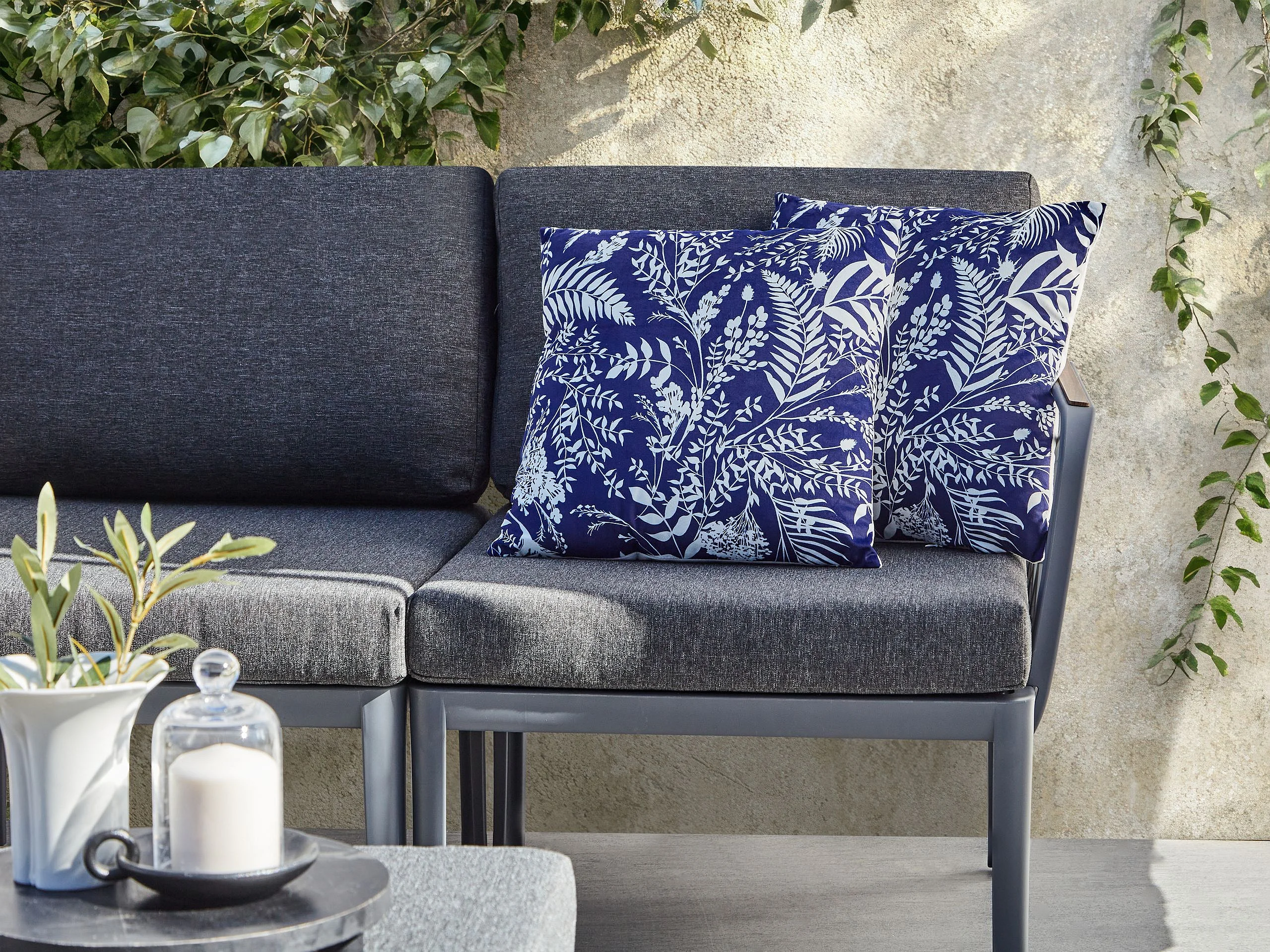 Gartenkissen 2er Set GLIMMER Pflanzenmuster 45 x 45 cm Blau