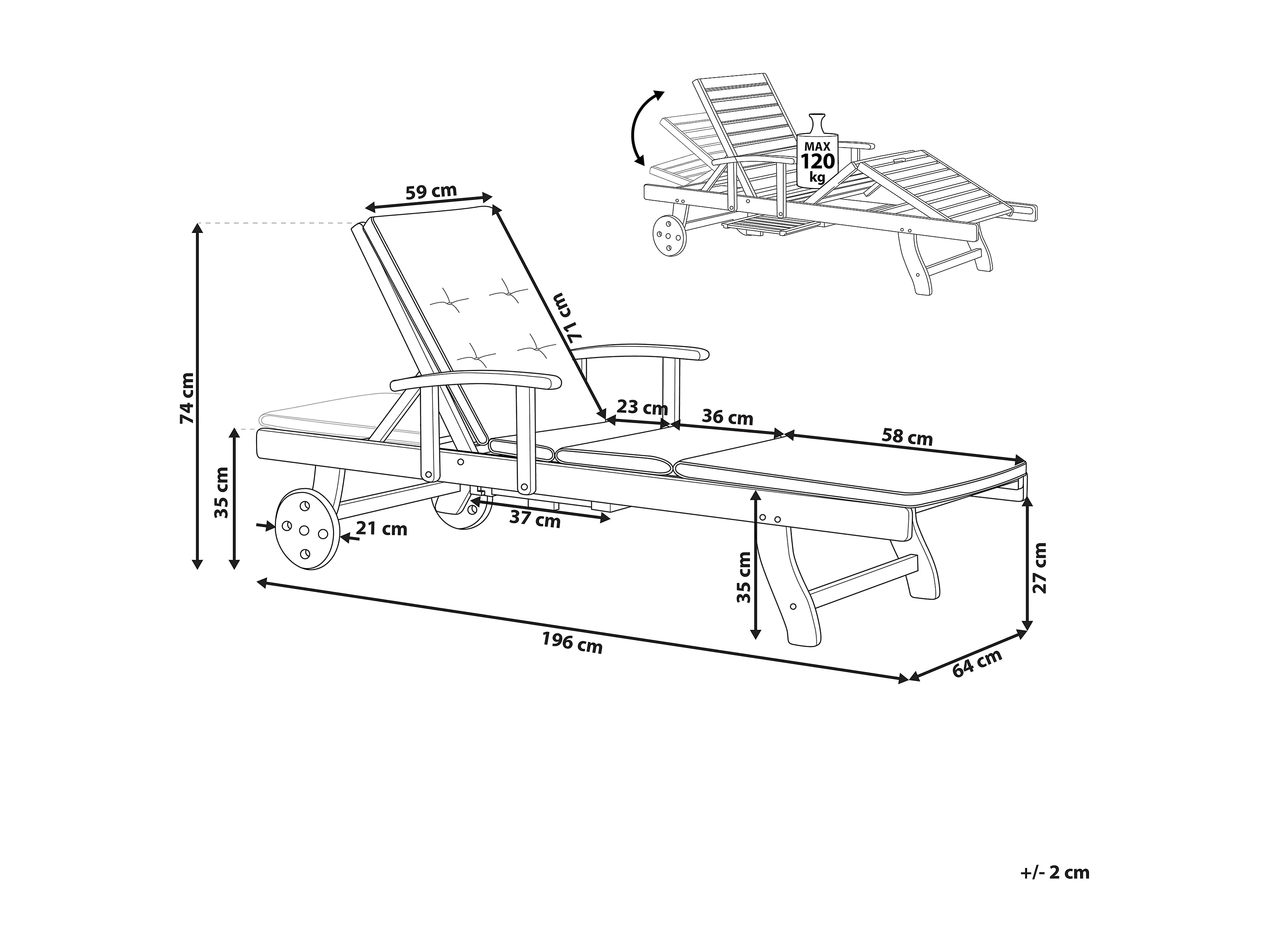 Gartenliege Rollenliege Sonnenliege Akazienholz Auflage in Terracotta Toscana