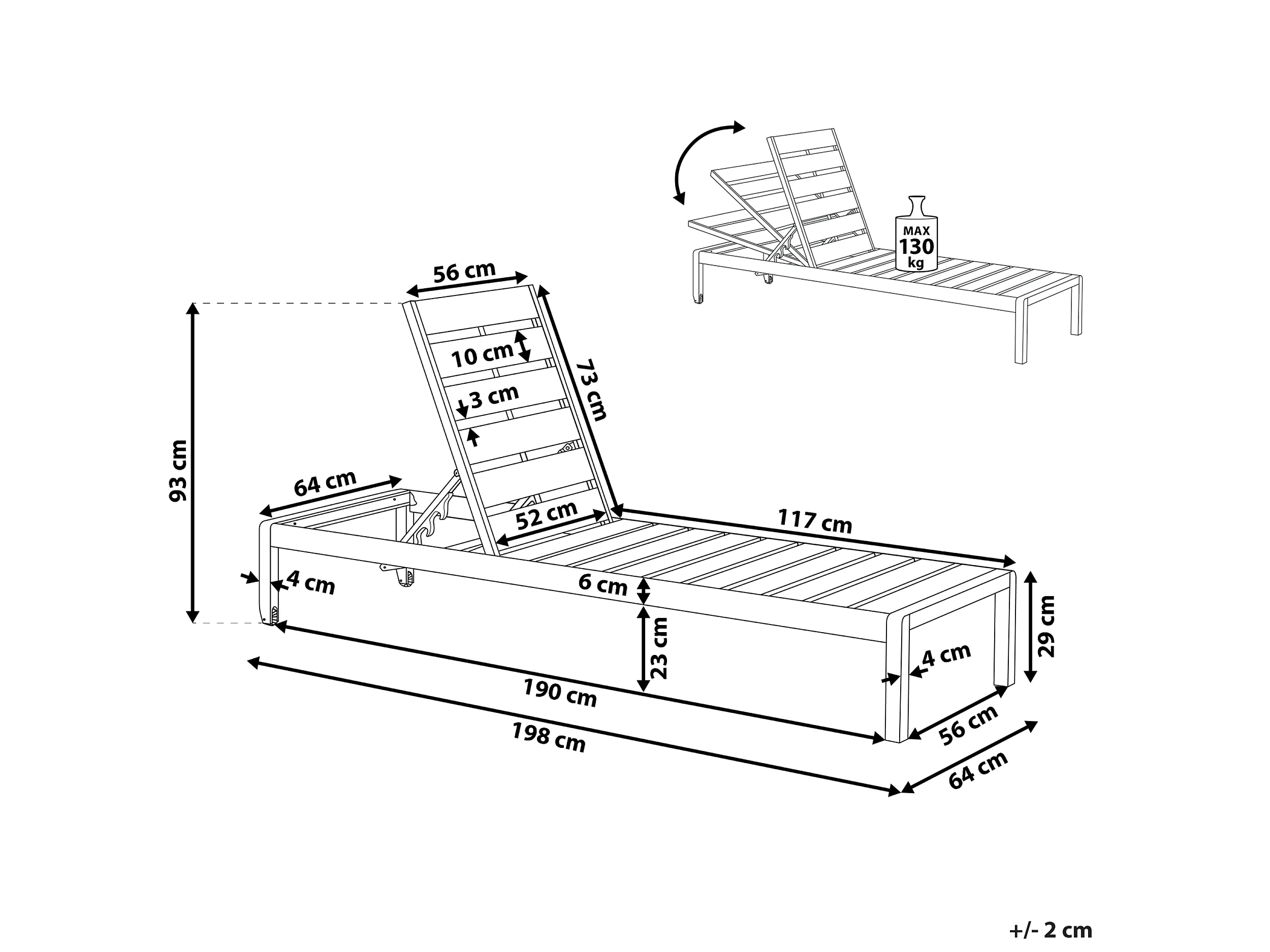 Gartenliege Sonnenliege Relaxliege Kunstholz verstellbare Rückenlehne Weiß