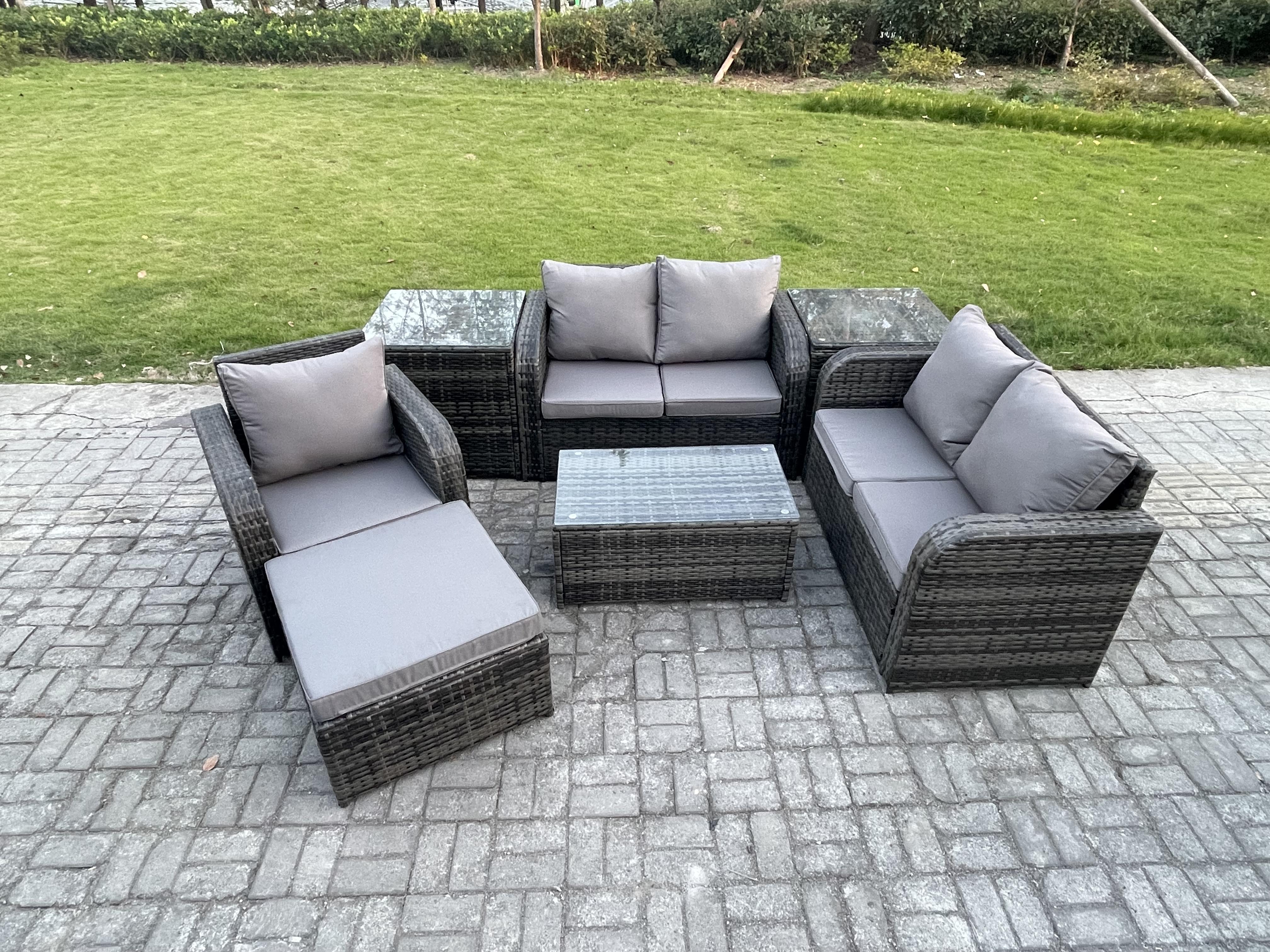 Gartenmöbel 7er-Set Sitzgruppe Terrasse Polyrattan Dunkelgrau
