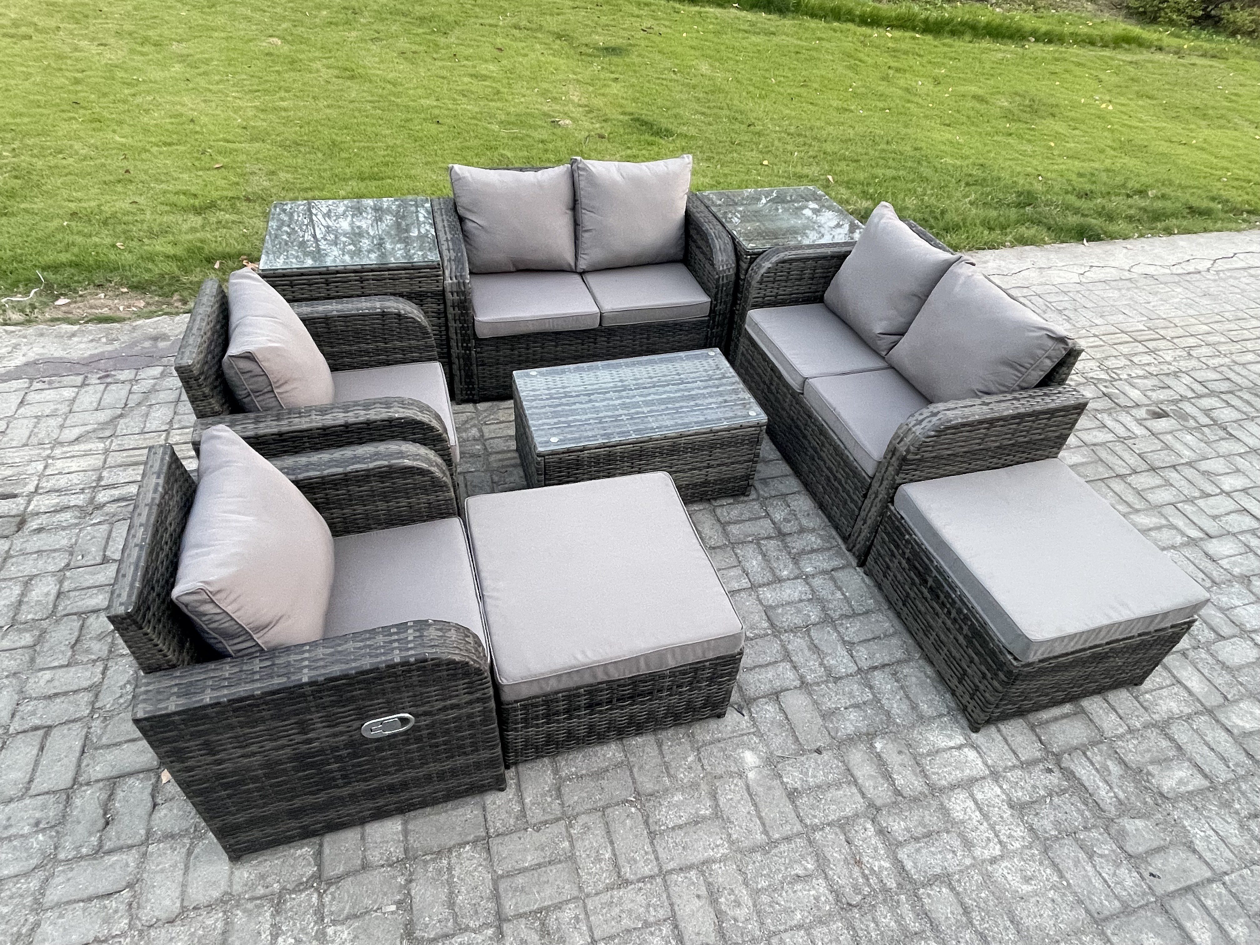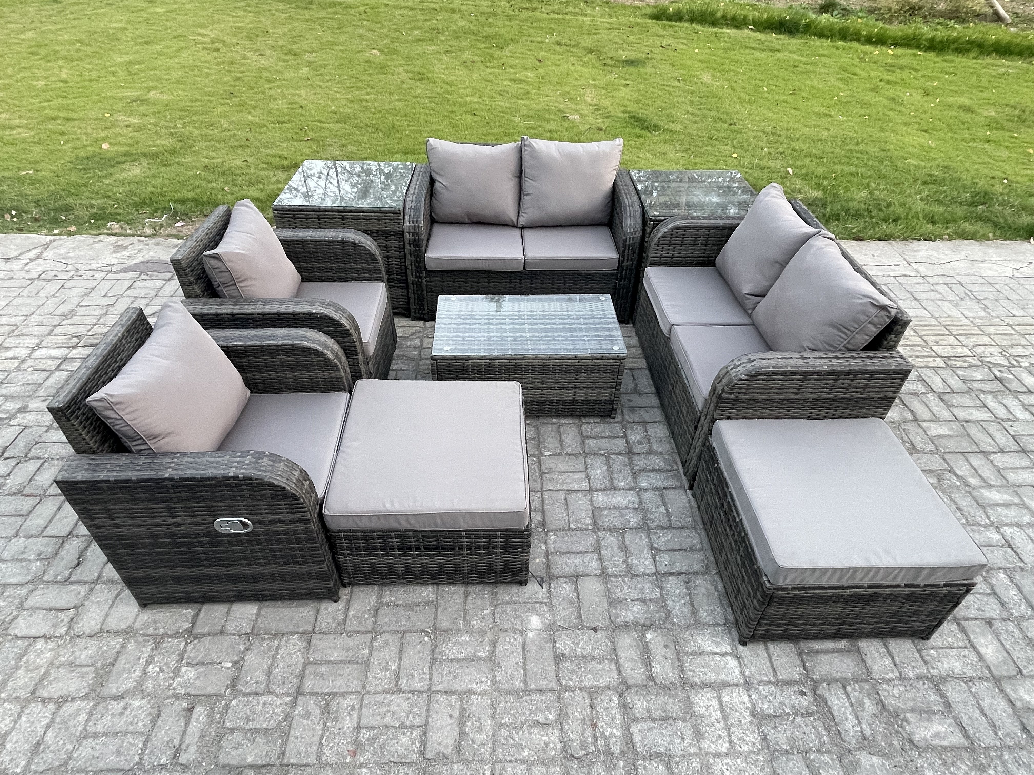 Gartenmöbel 9er-Set Sitzgruppe Terrasse Polyrattan Dunkelgrau