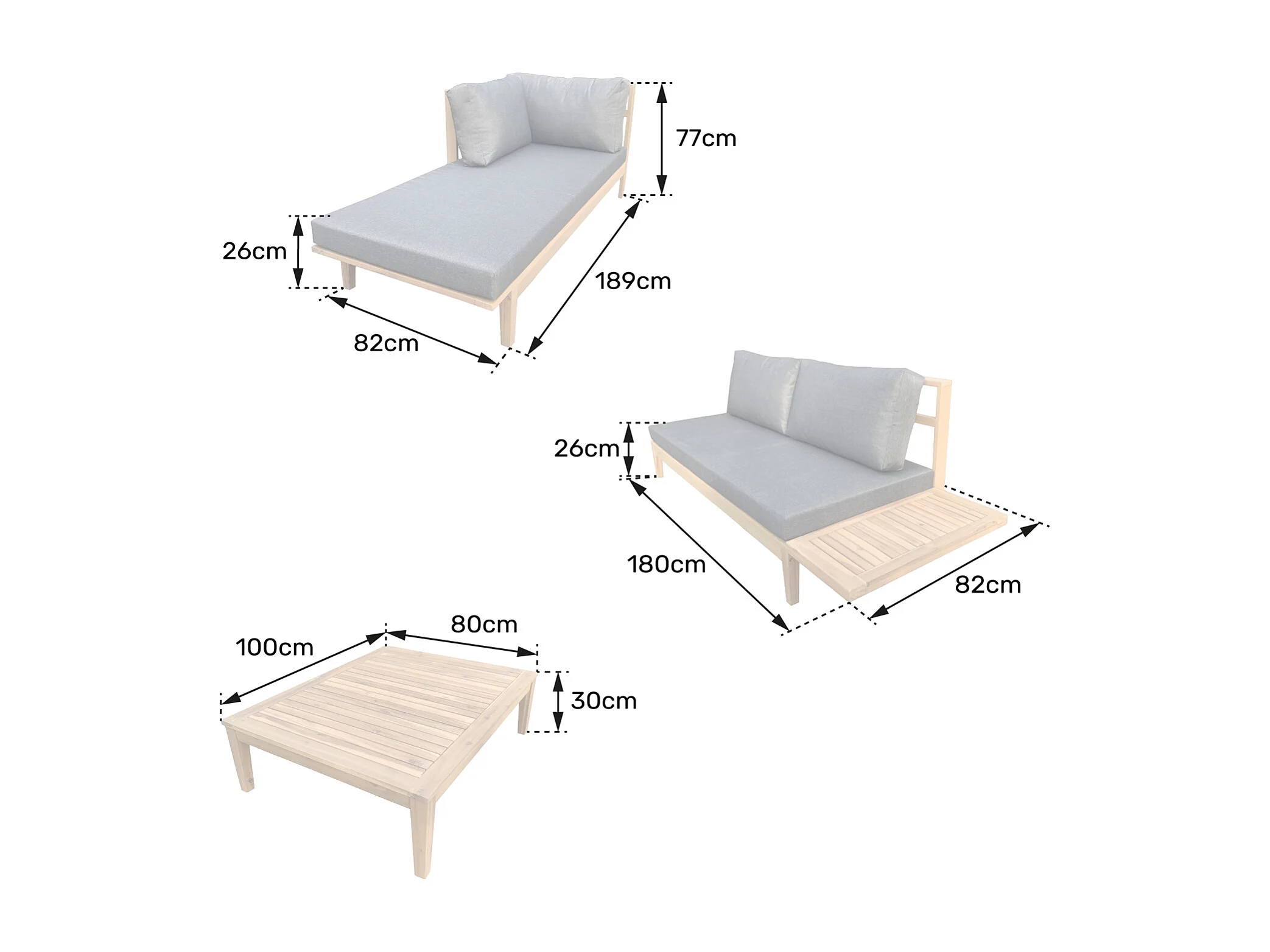 Gartenmöbel aus Akazienholz 4-Sitzer PANGKOR - graue Kissen