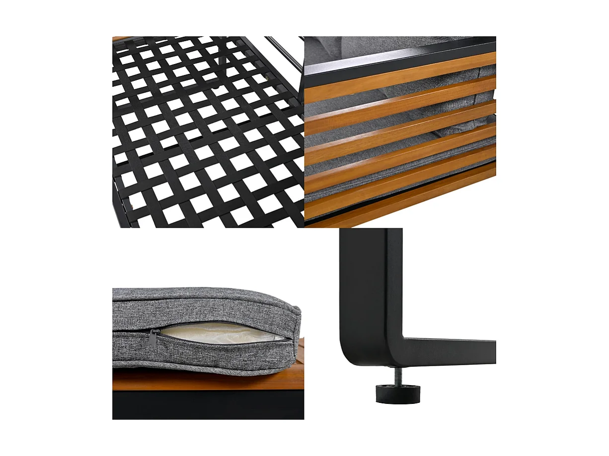 Gartenmöbel aus Eisen für 4 Personen – 1 Sofa, 2 Sessel und 1 Couchtisch – dekoriert mit Akazienholz – Grau
