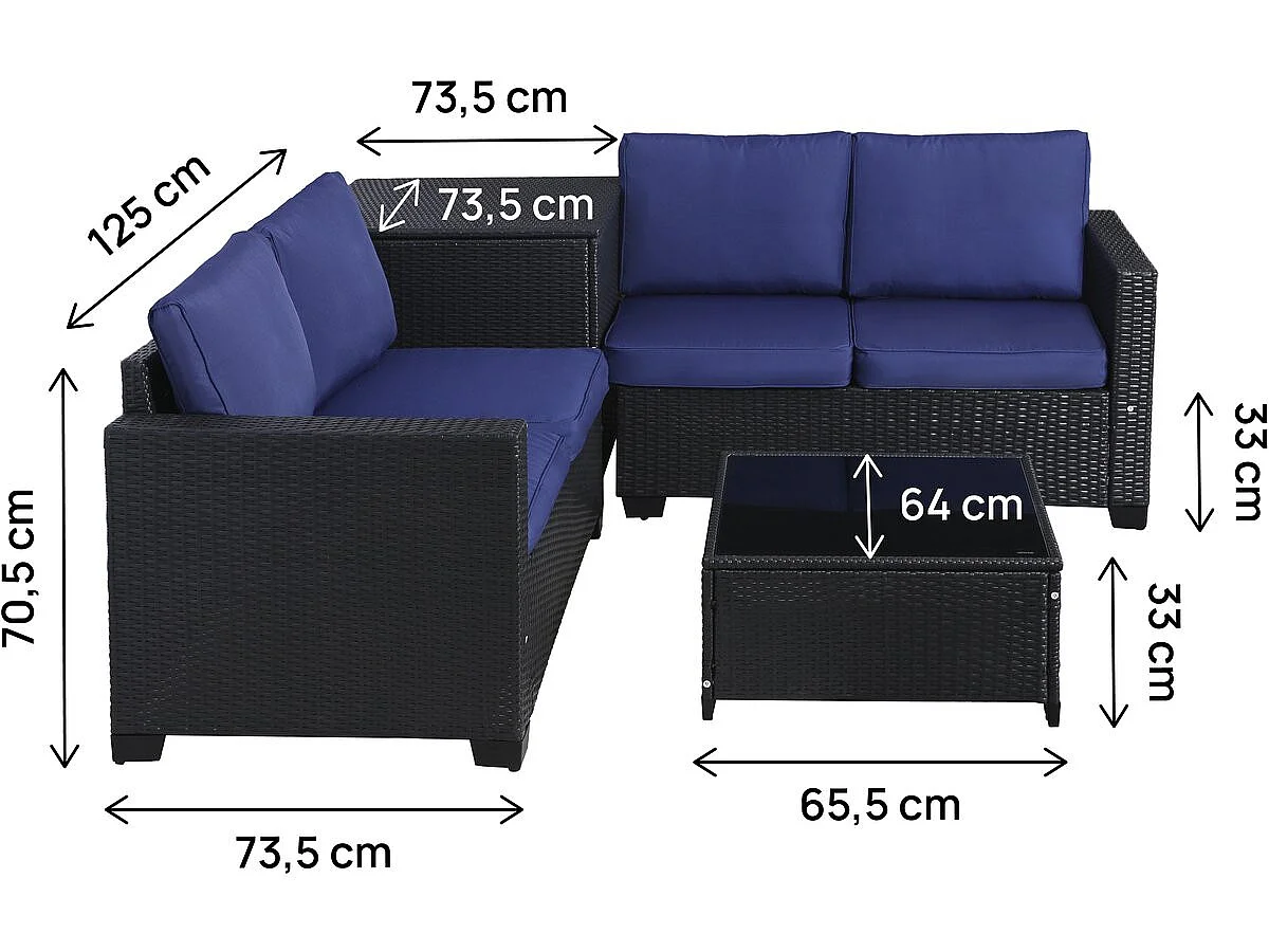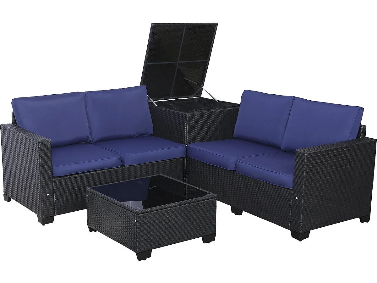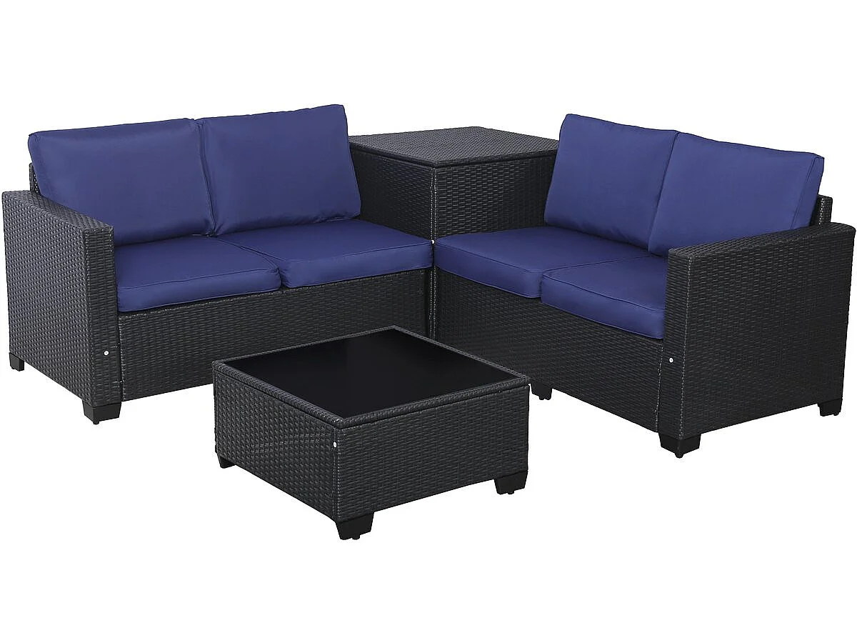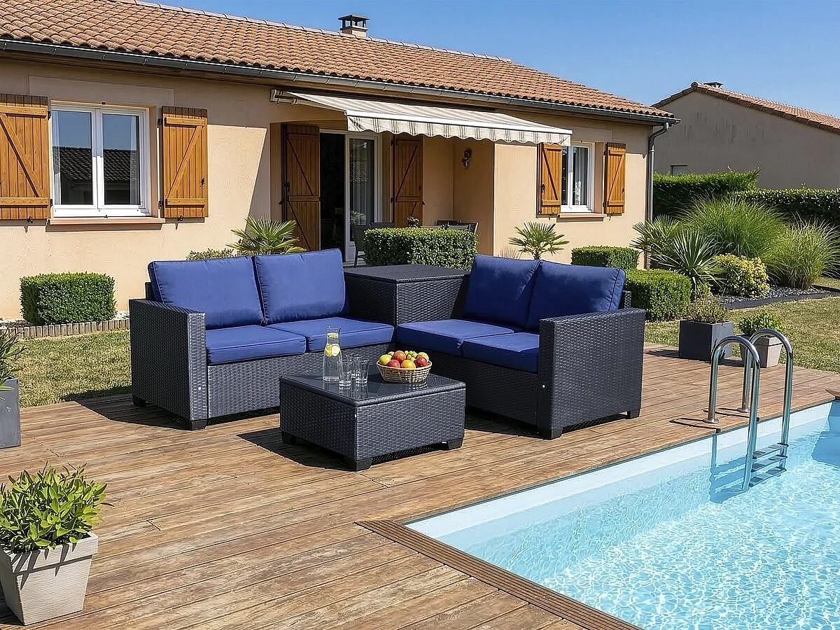 Gartenmöbel aus geflochtenem Harz mit Aufbewahrungsbox "Riley" - 4 Sitzplätze - Dunkelblau