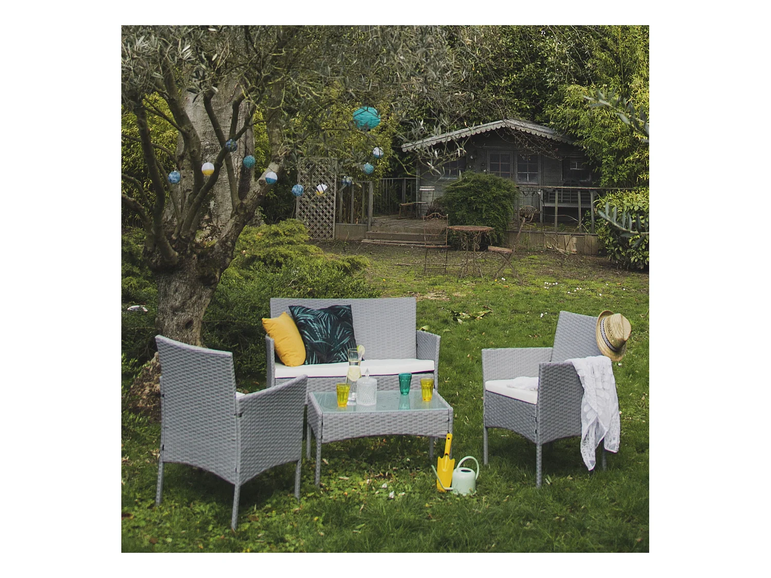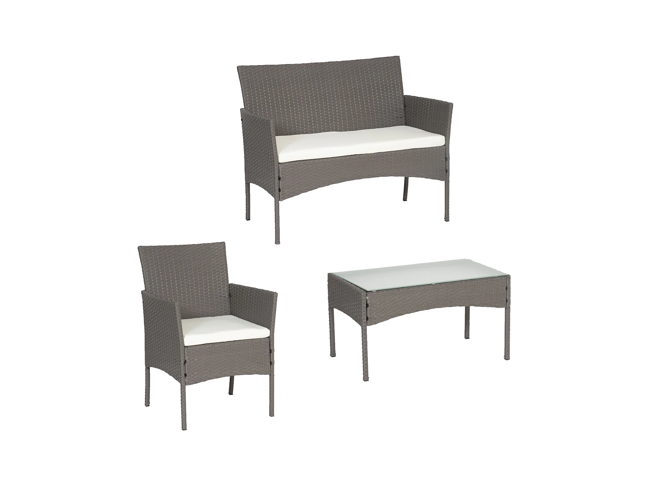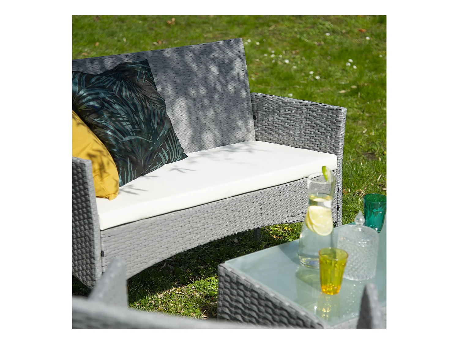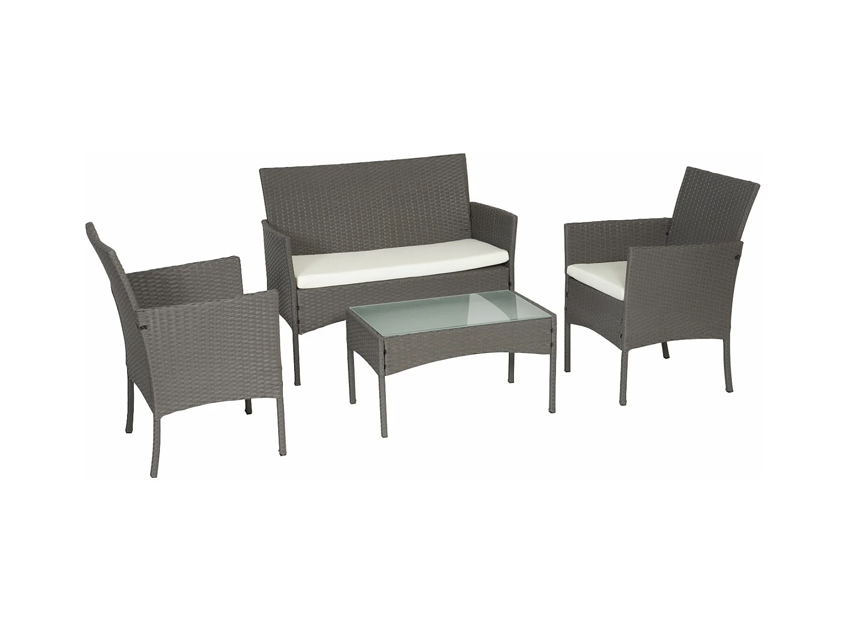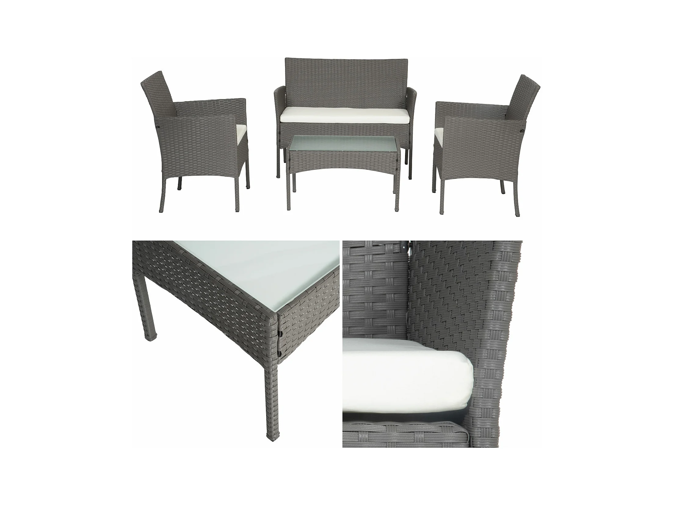Gartenmöbel CORDOUE aus grauem Harzgeflecht, 4 Sitzplätze - elfenbeinfarbene Kissen