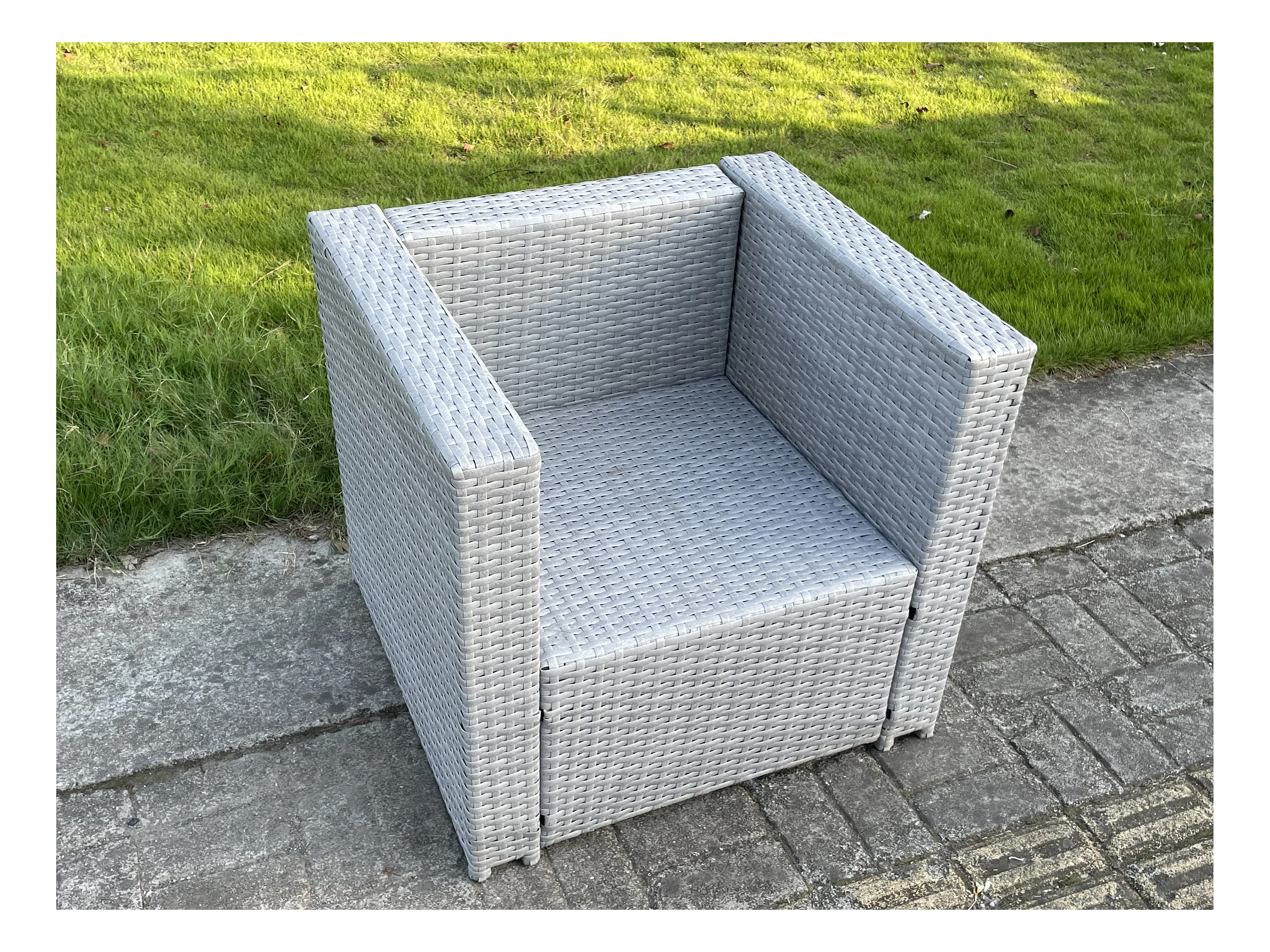 Gartenmöbel im Freien Einzelner Sessel Helles Grau Sofa Polyrattan Stuhl