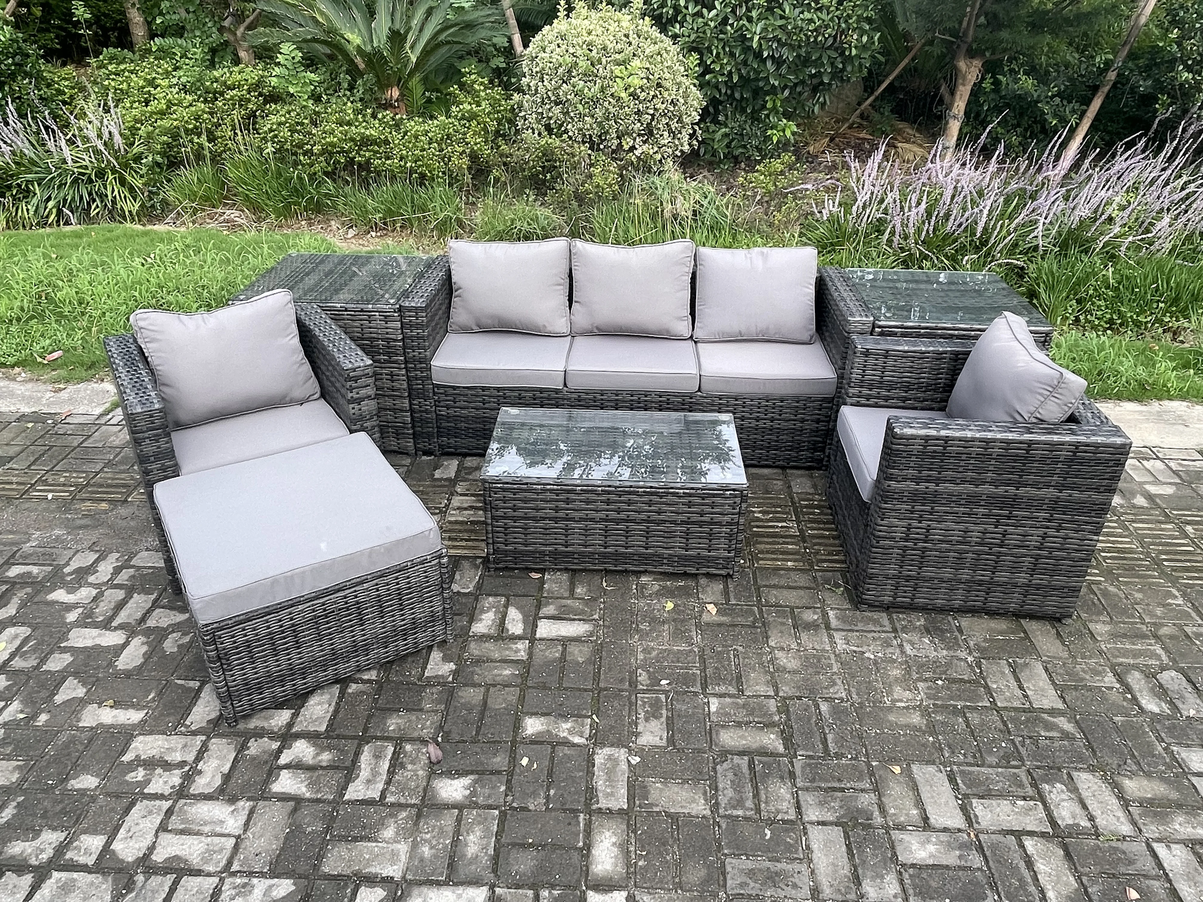 Gartenmöbel im Freien mit Couchtisch Polyrattan Dunkelgrau 6-Sitzer