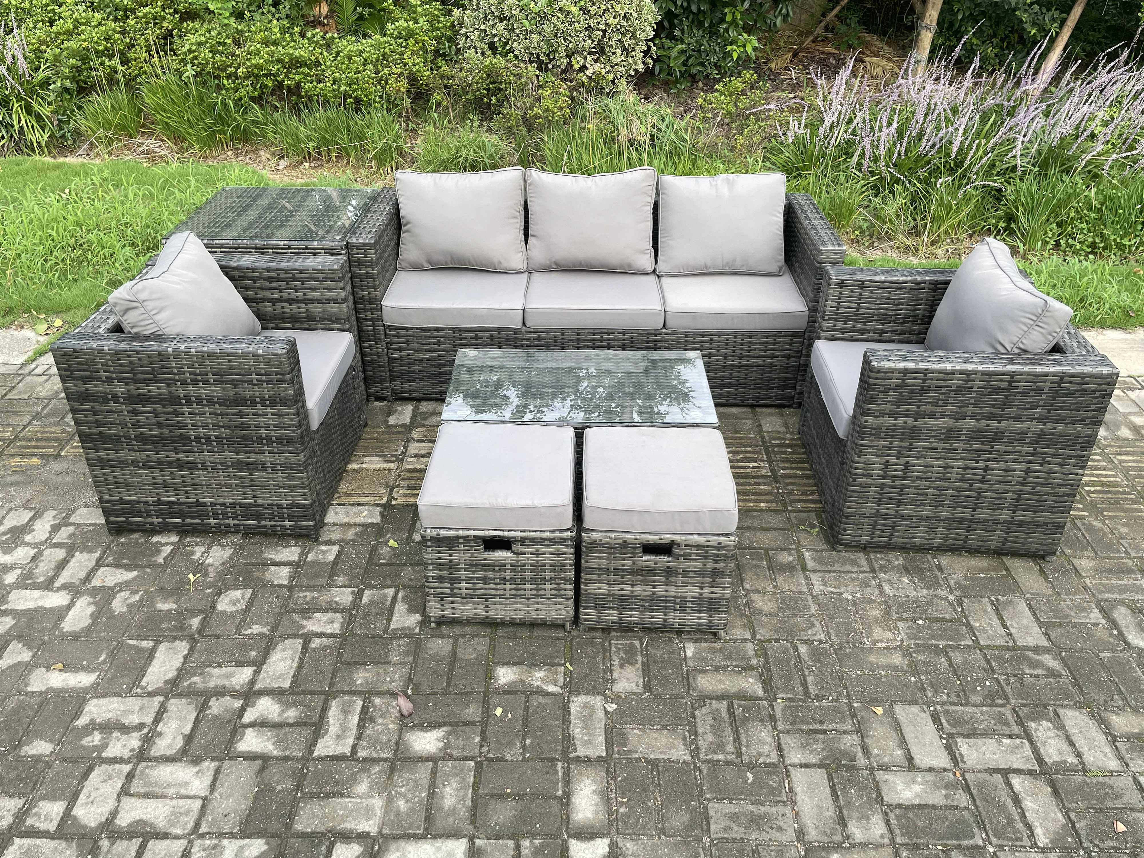 Gartenmöbel im Freien mit Couchtisch Polyrattan Dunkelgrau 7-Sitzer