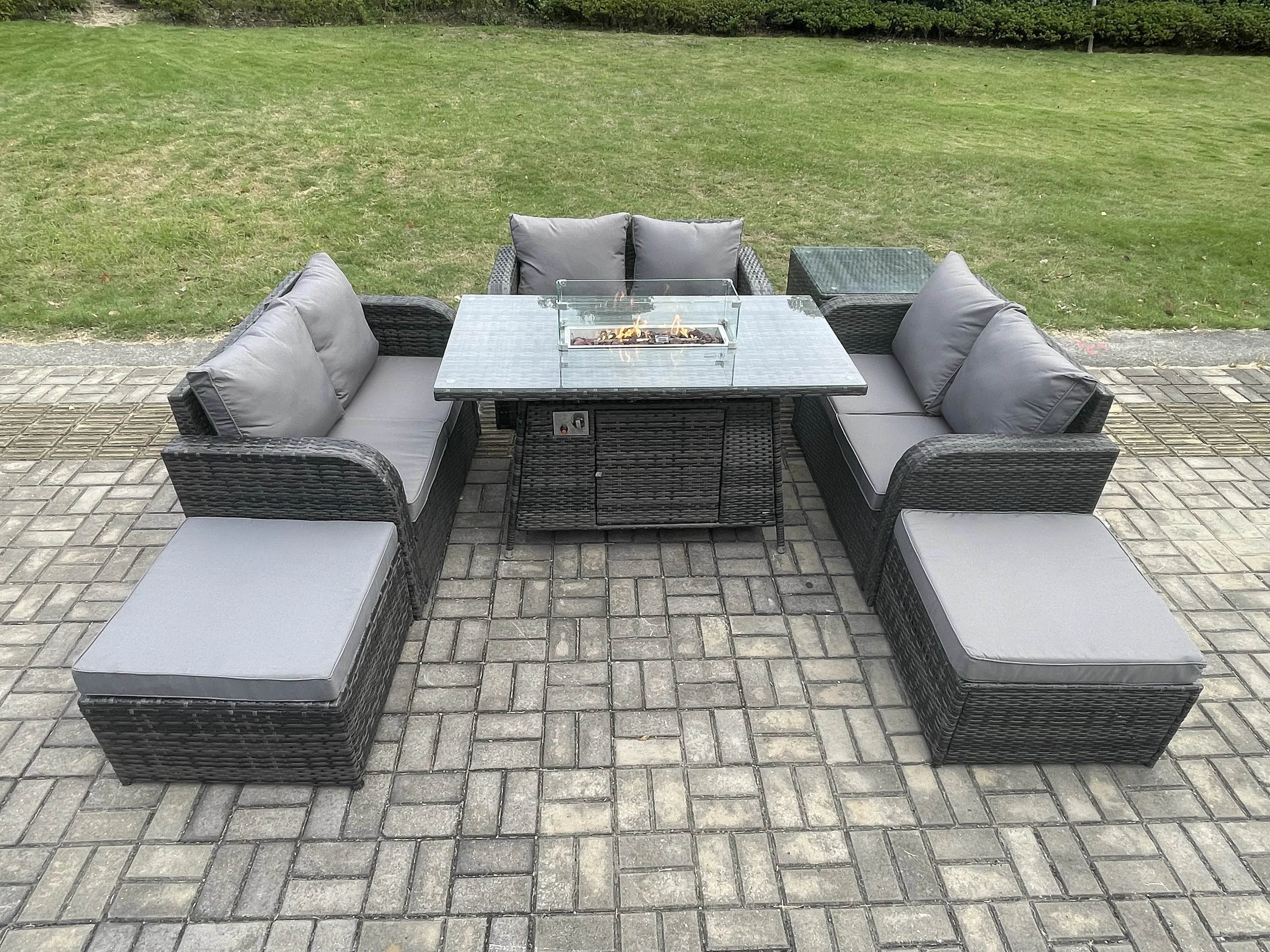 Gartenmöbel im Freien mit Hocker Polyrattan 8-Sitzer Dunkelgrau