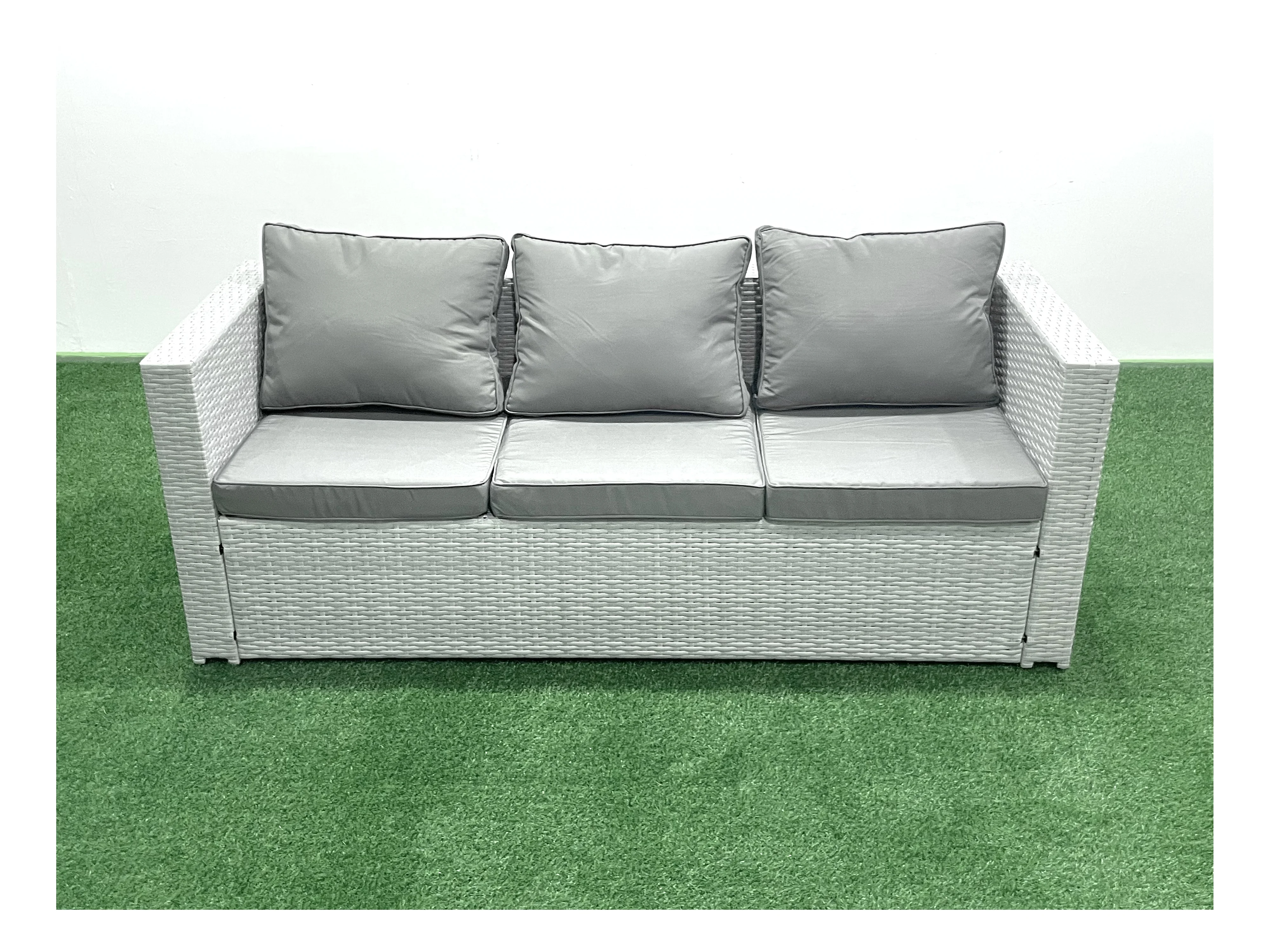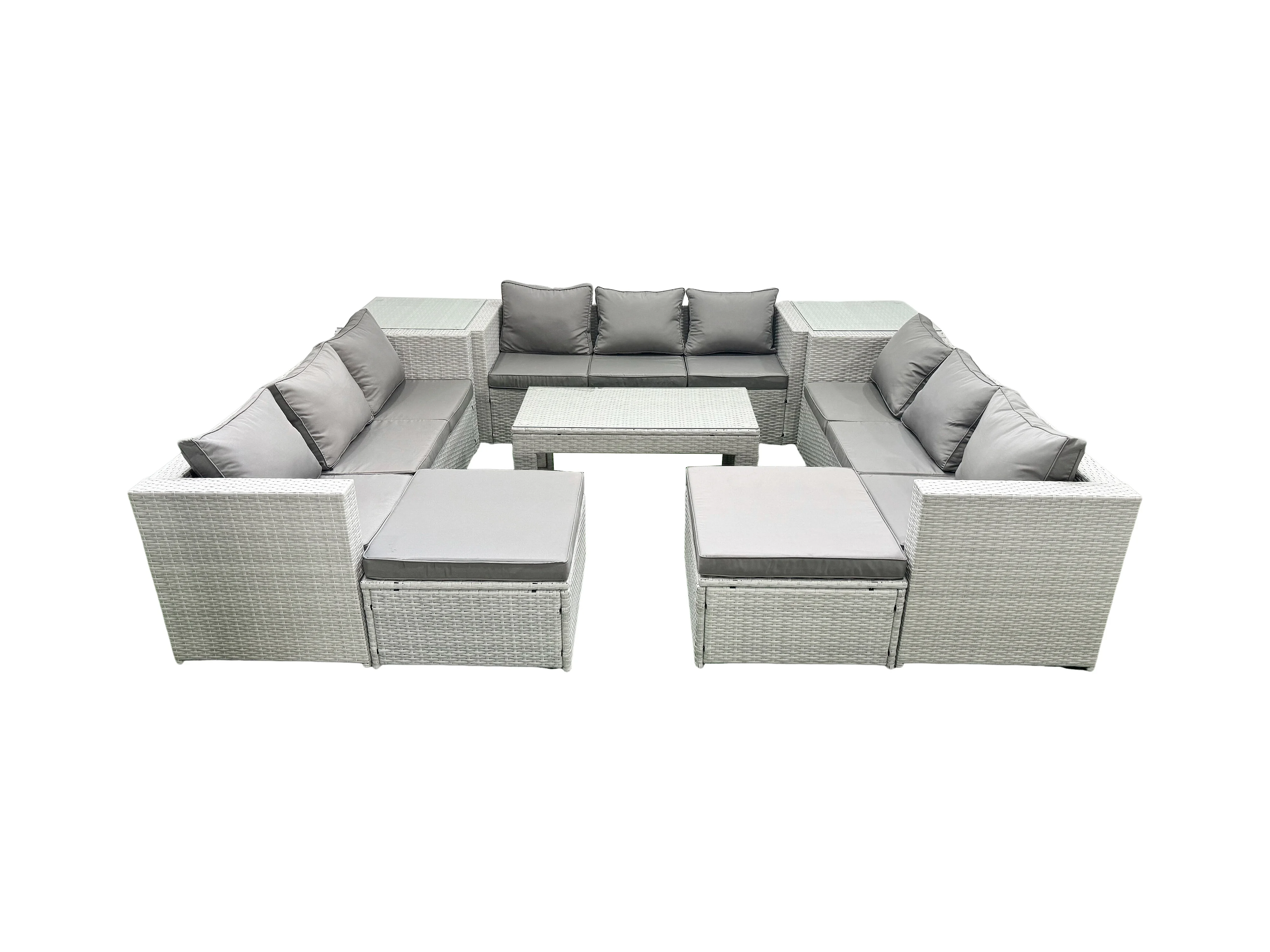 Gartenmöbel im Freien Polyrattan 11-Sitzer Garten Sofa Rechteckiger Couchtisch Set mit 2 hohen Hockern 2 Beistelltischen Hellgrau gemischt