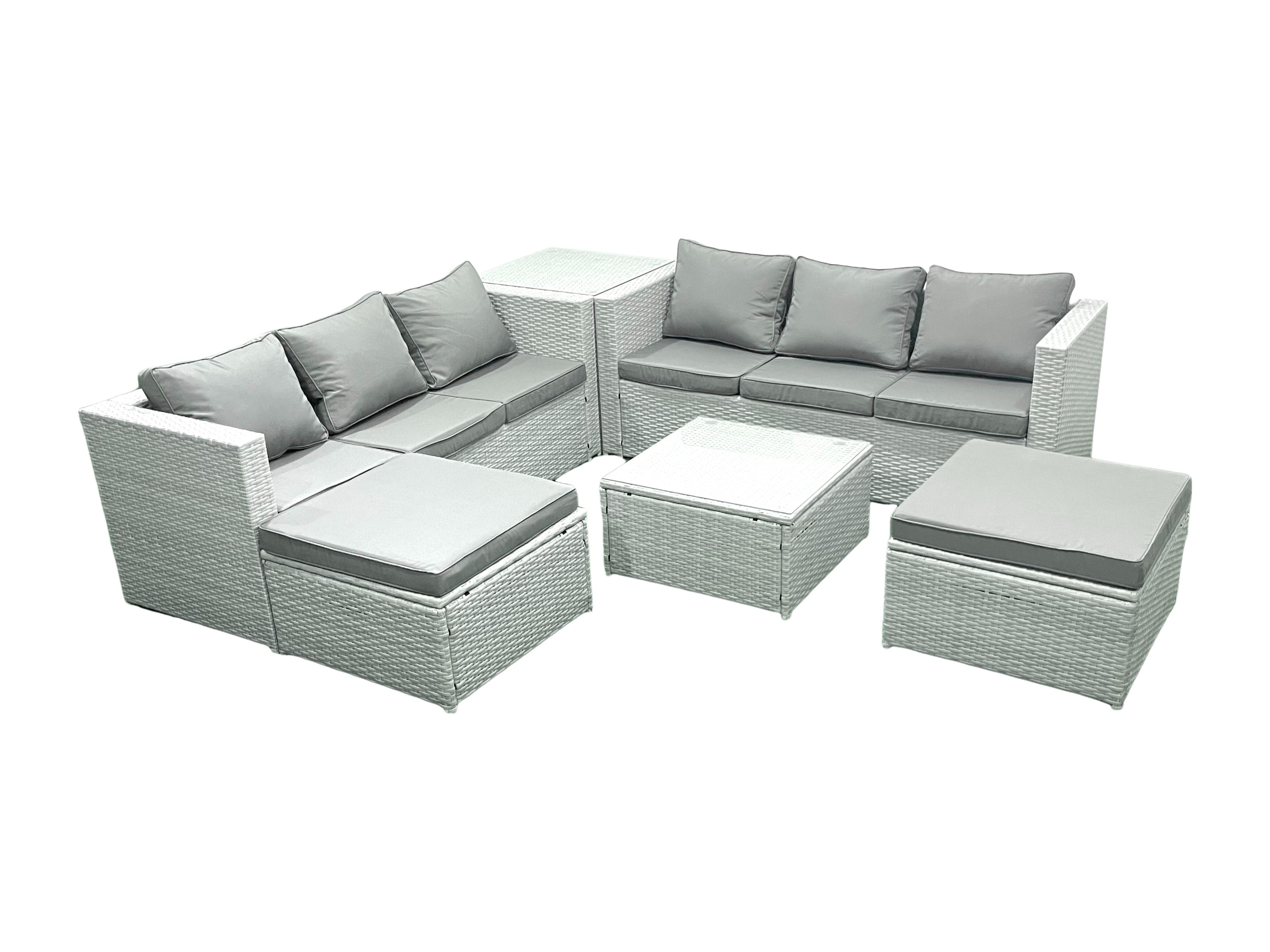 Gartenmöbel im Freien Polyrattan 8-Sitzer Rattan Garten Sofa Set mit 2 hohen Hockern Beistelltisch Hellgrau gemischt