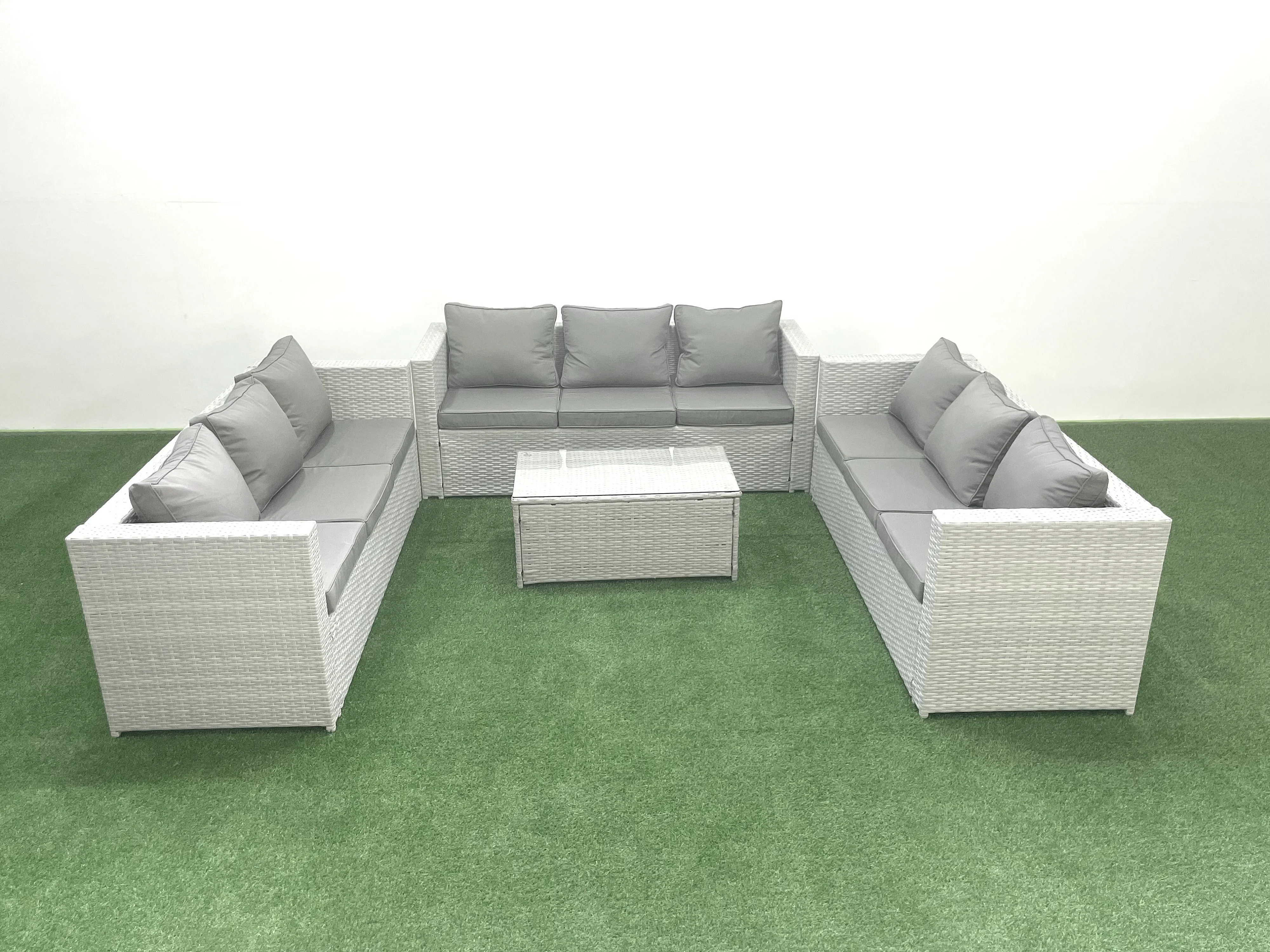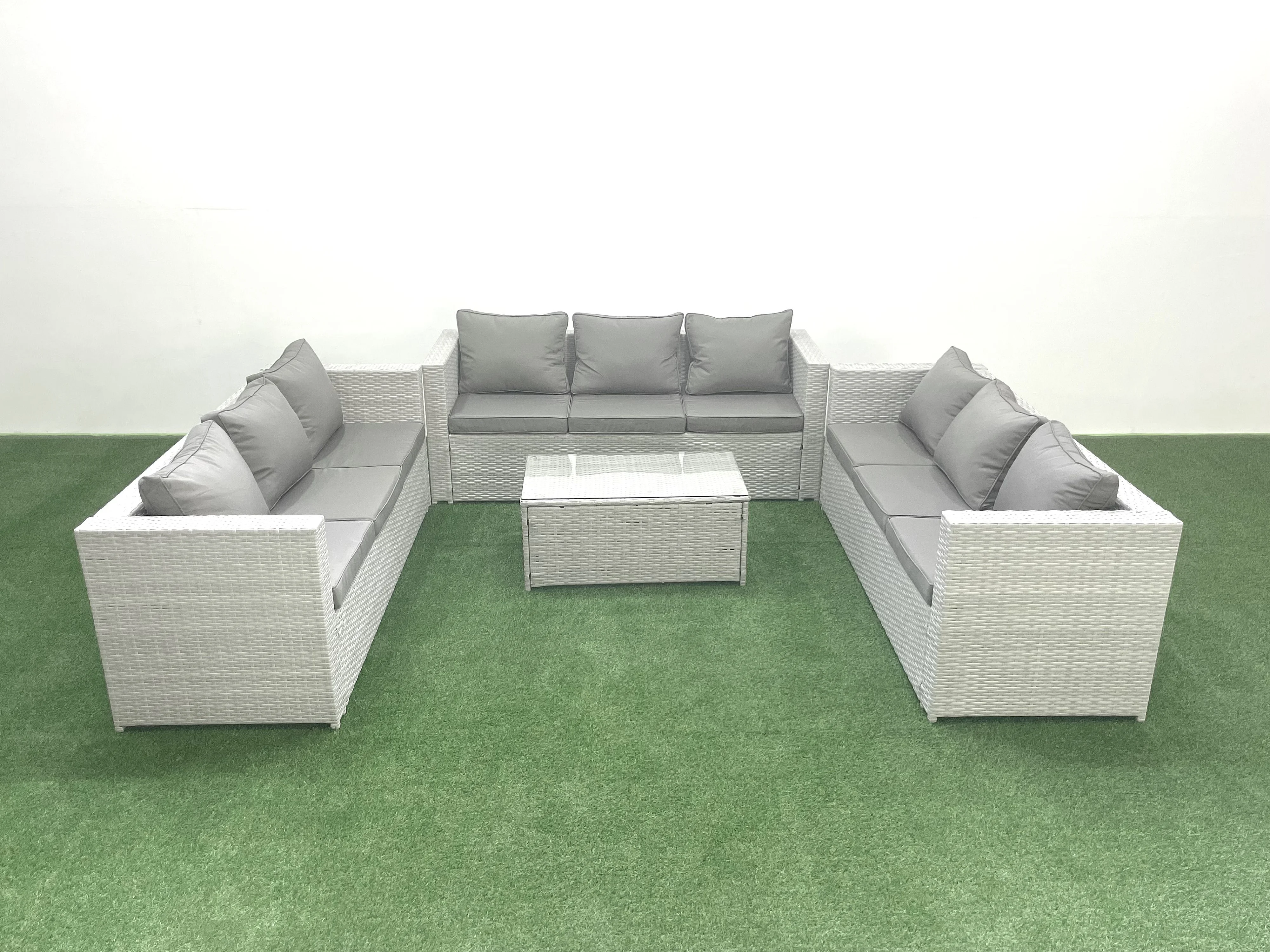 Gartenmöbel im Freien Polyrattan 9-Sitzer Garten Sofa Couchtisch Set Hellgrau gemischt