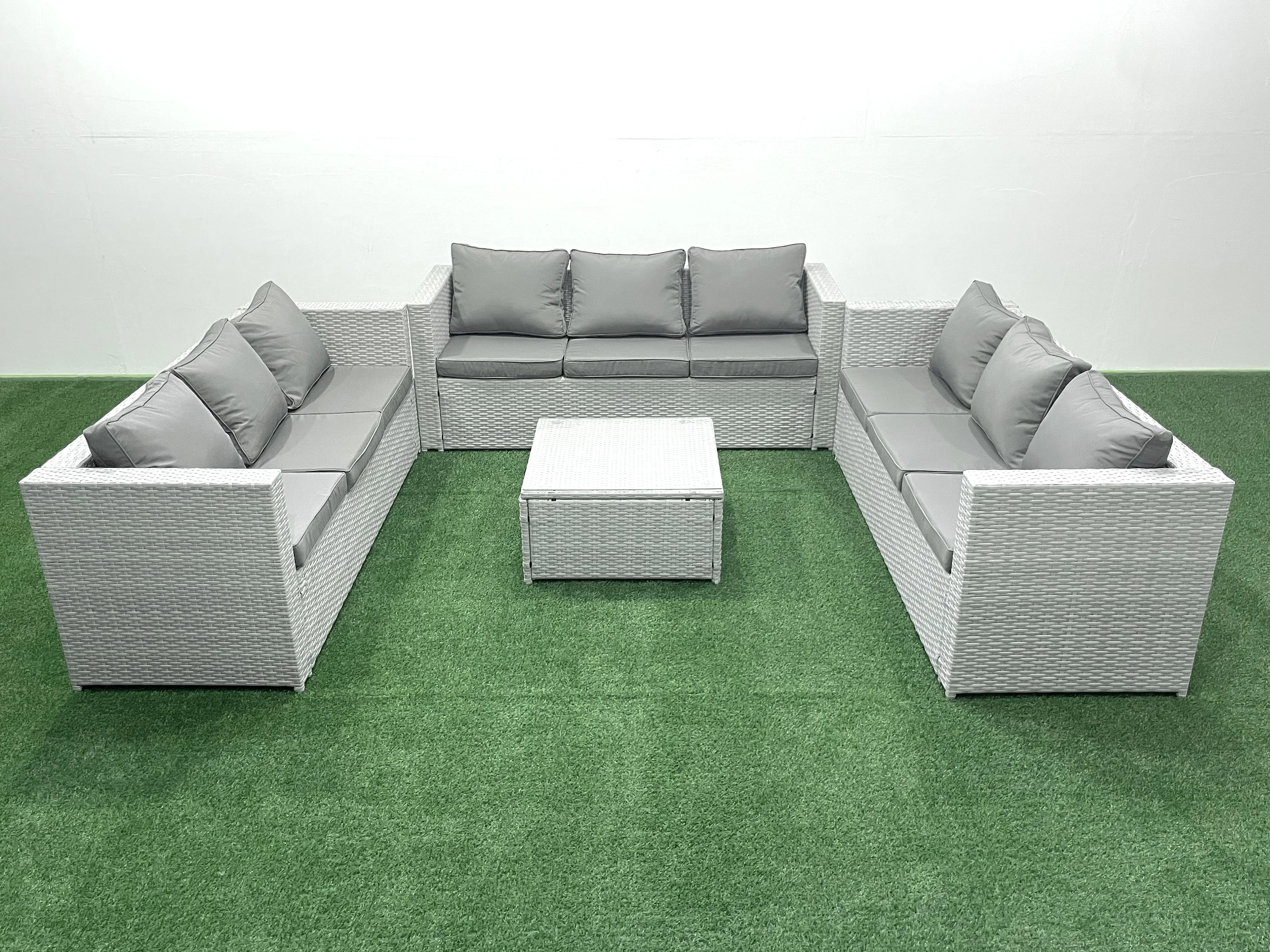 Gartenmöbel im Freien Polyrattan 9-Sitzer Rattan Garten Sofa Set Hellgrau gemischt