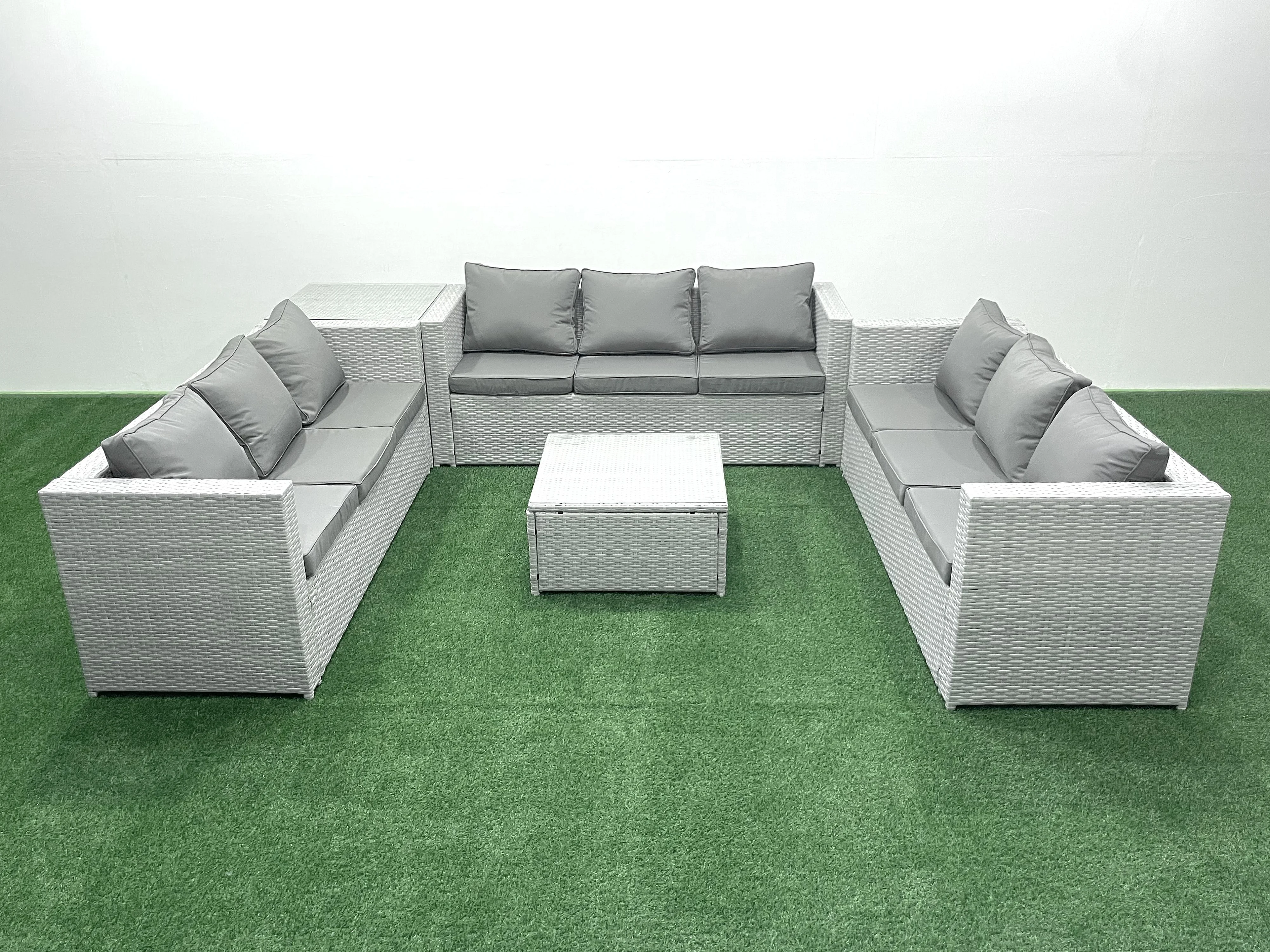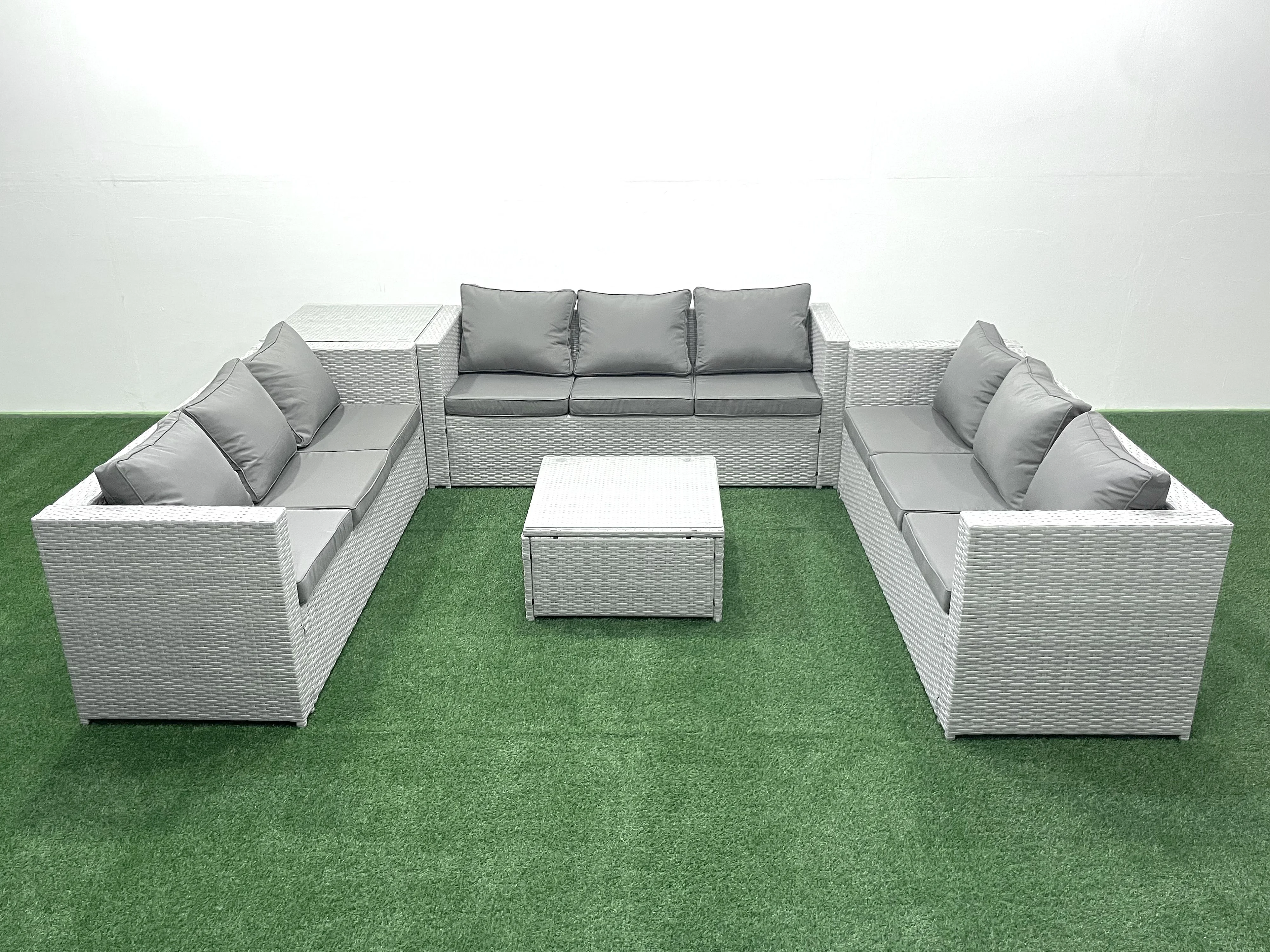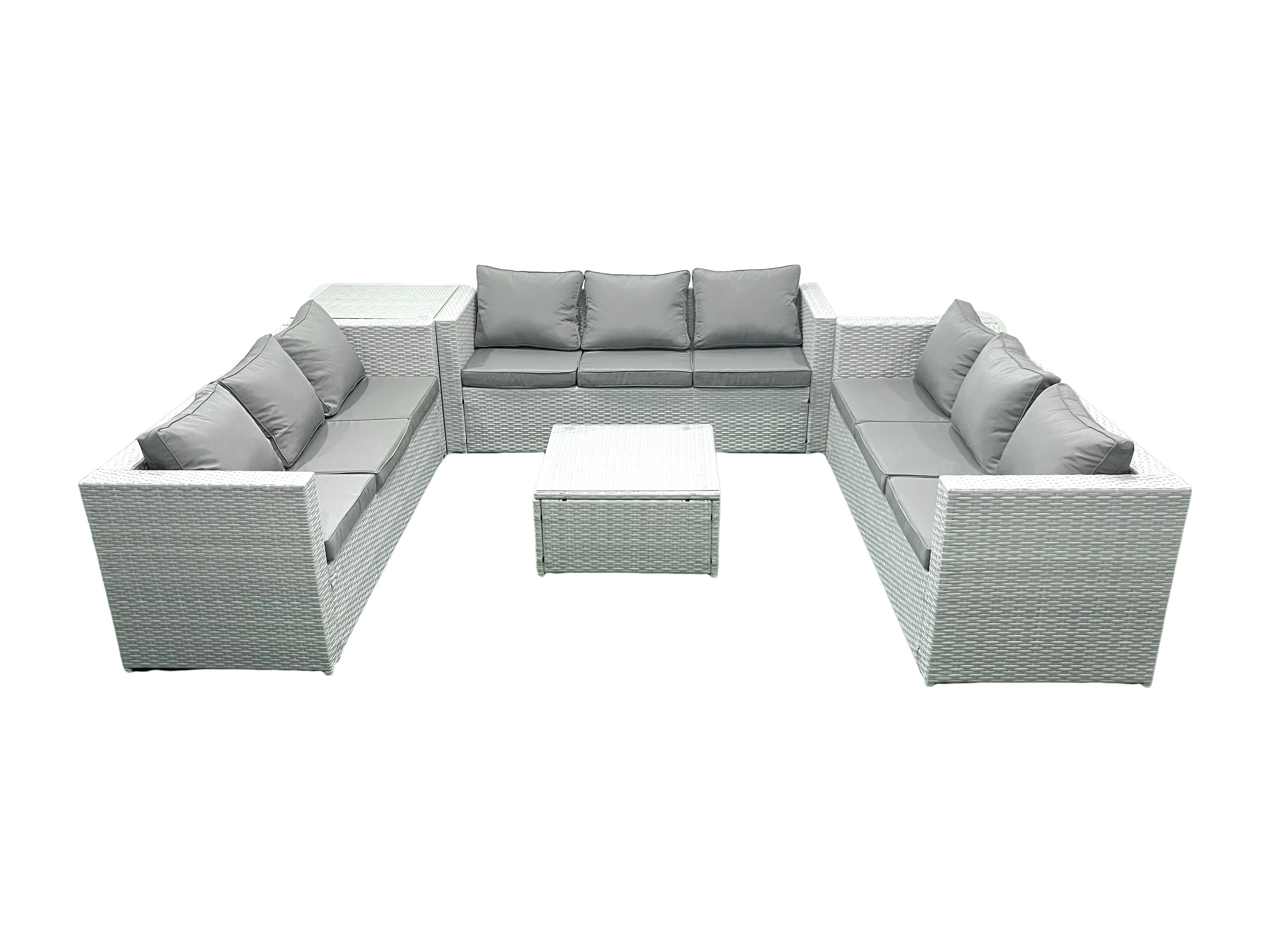 Gartenmöbel im Freien Polyrattan 9-Sitzer Rattan Garten Sofa Set mit Beistelltisch Hellgrau gemischt
