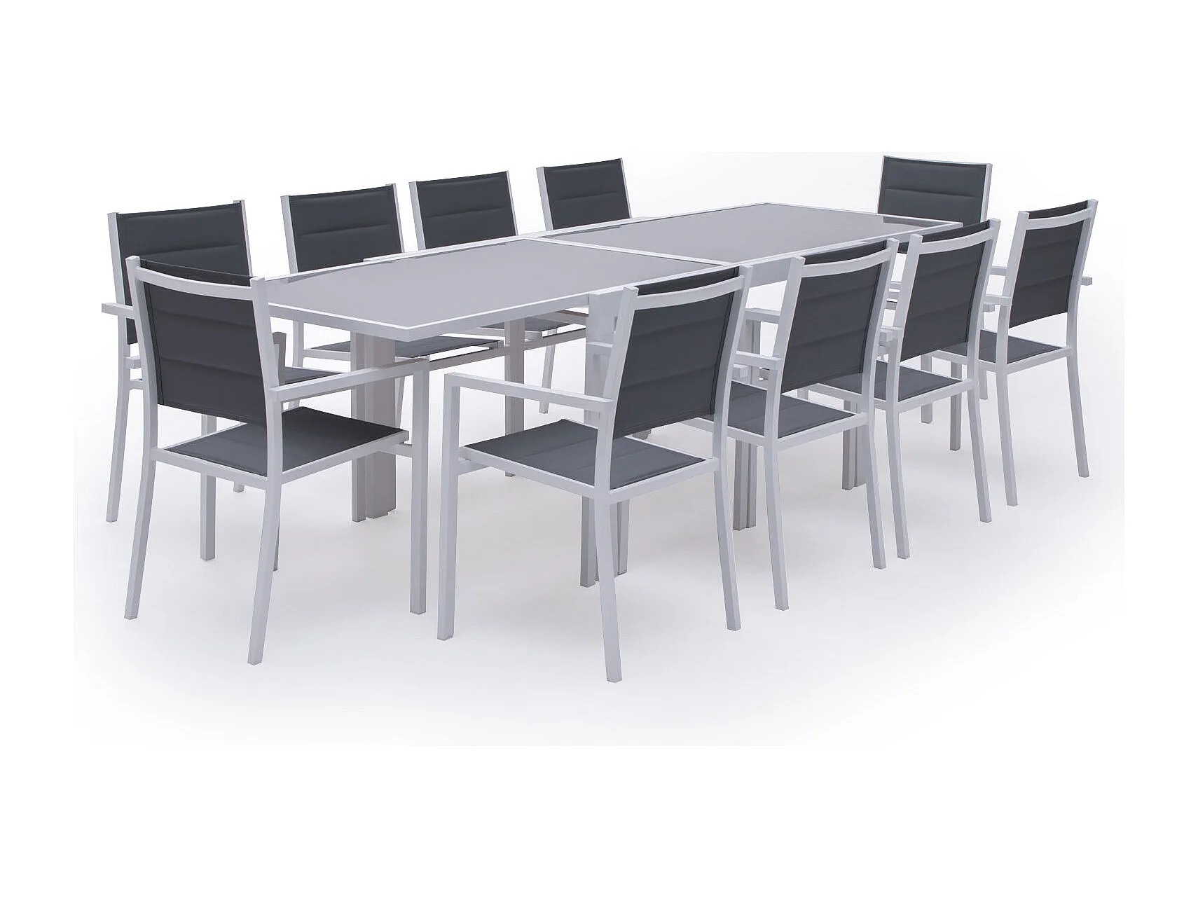 Gartenmöbel LAMPEDUSA ausziehbar aus grauem Textilene 10 Sitzplätze - Weißaluminium