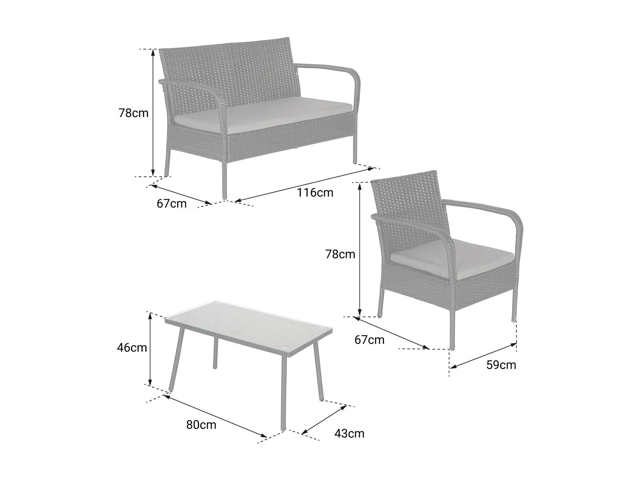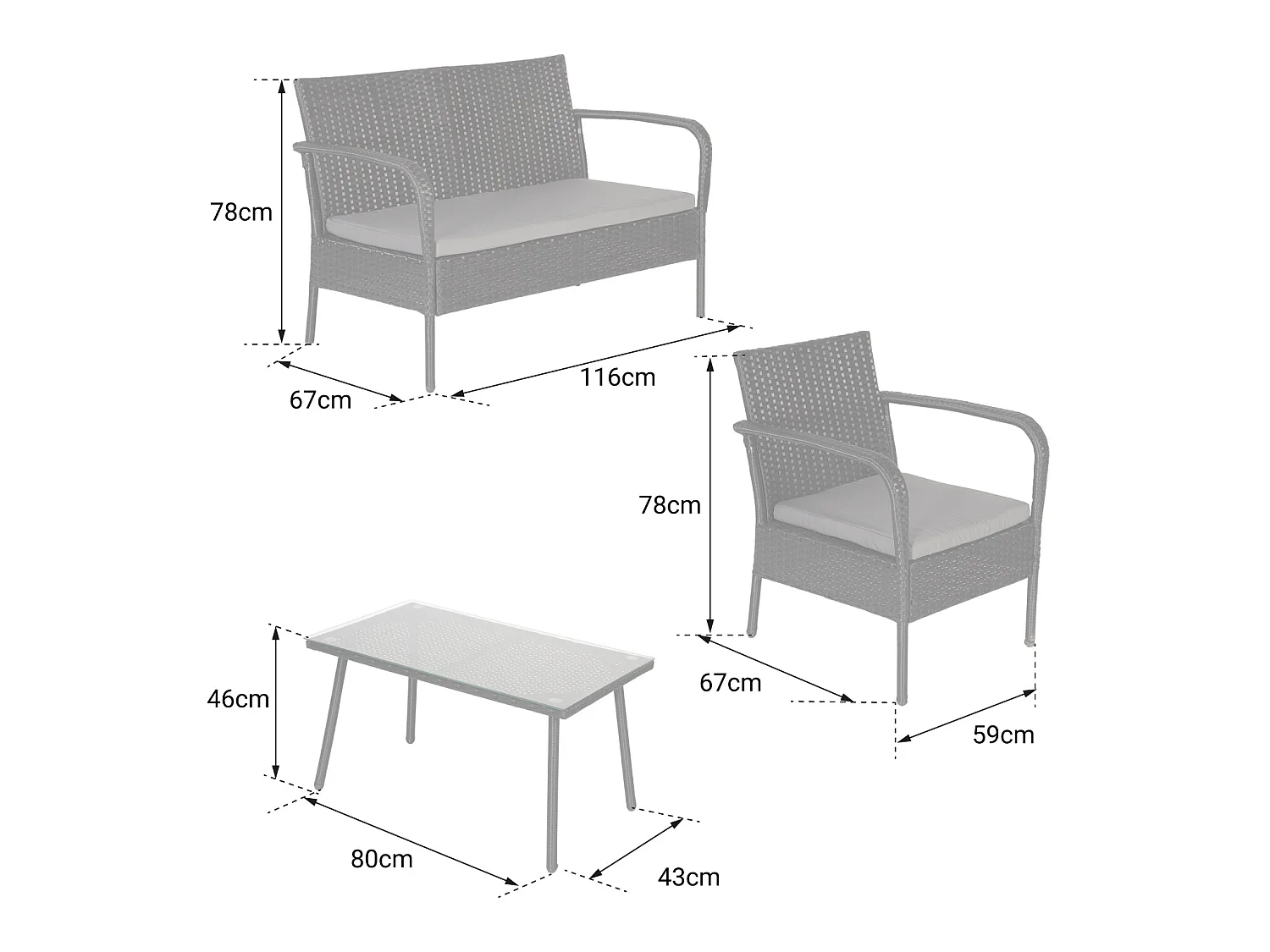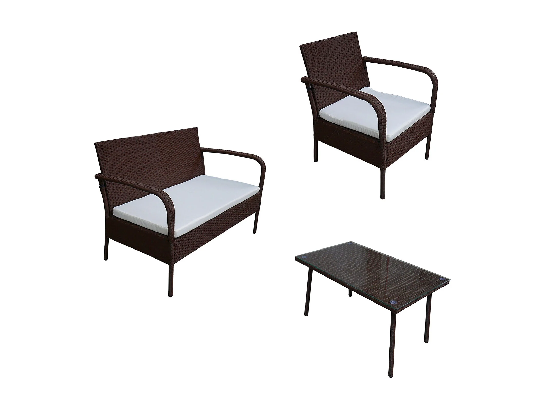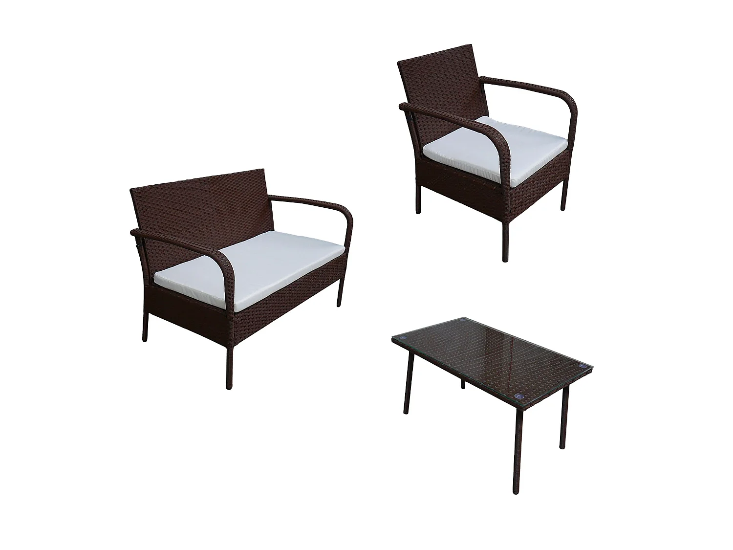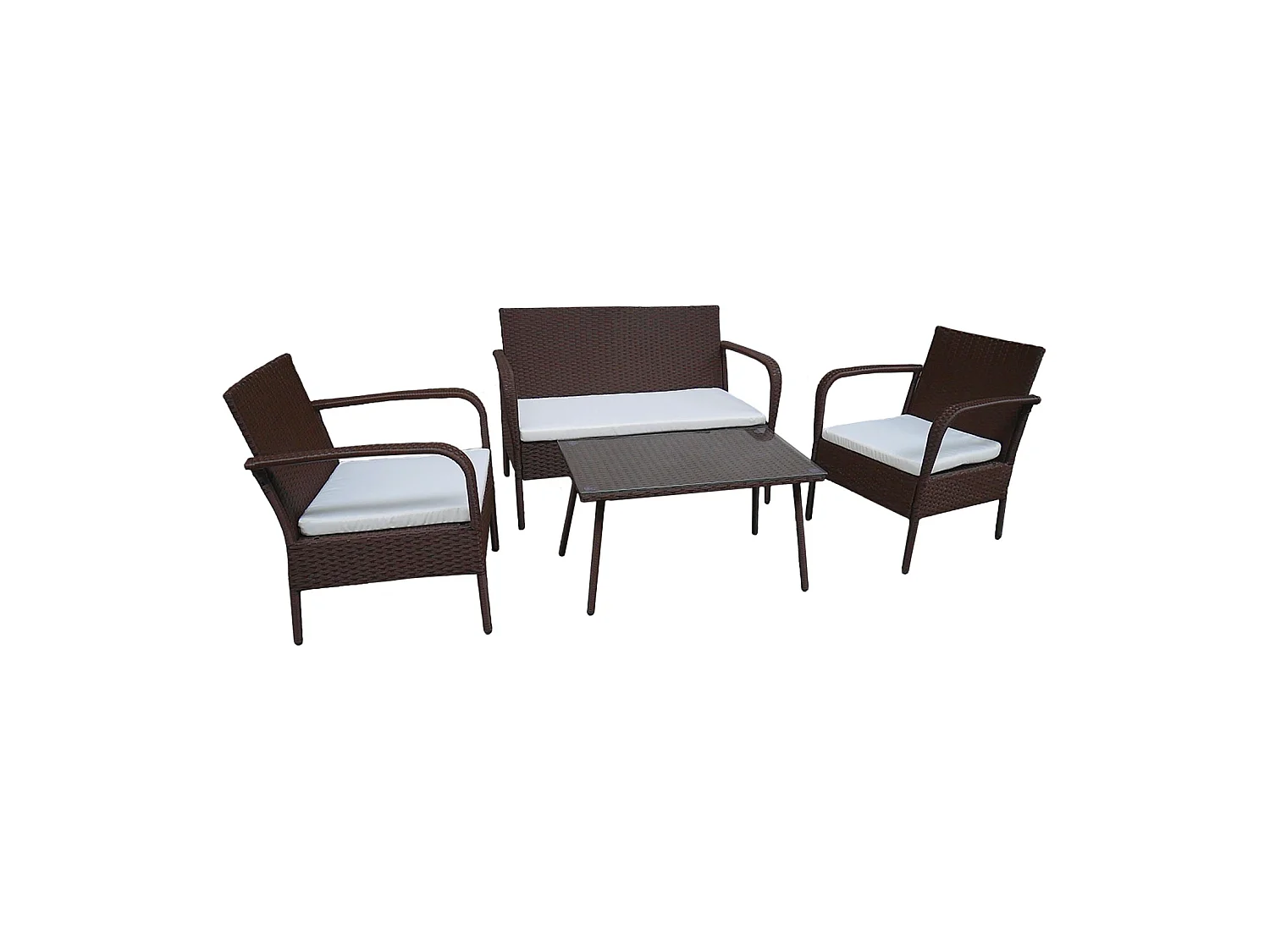 Gartenmöbel LIPARI aus braunem Harzgeflecht, 4 Sitzplätze - elfenbeinfarbene Kissen