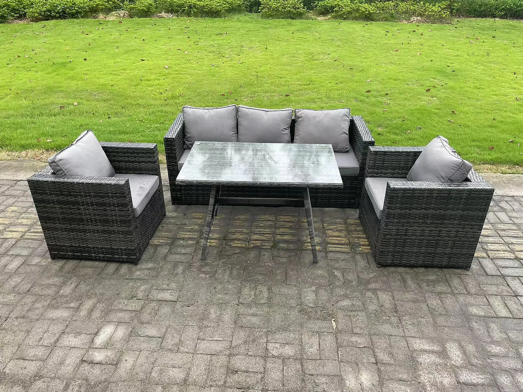 Gartenmöbel Lounge Sofa Set mit Lounge Sofa Rechteckiger Esstisch 2 Sesseln Dunkelgrau Gemischt