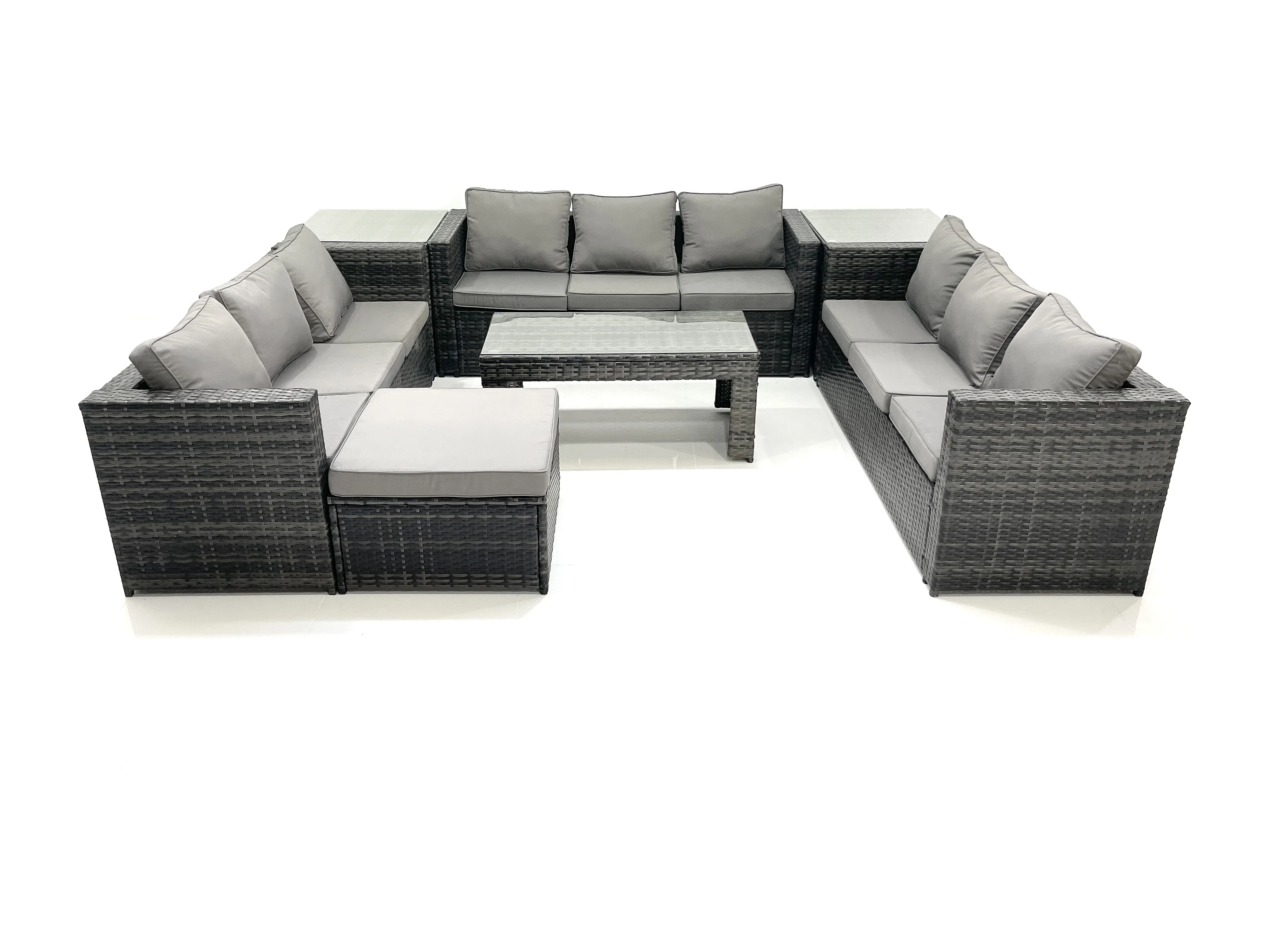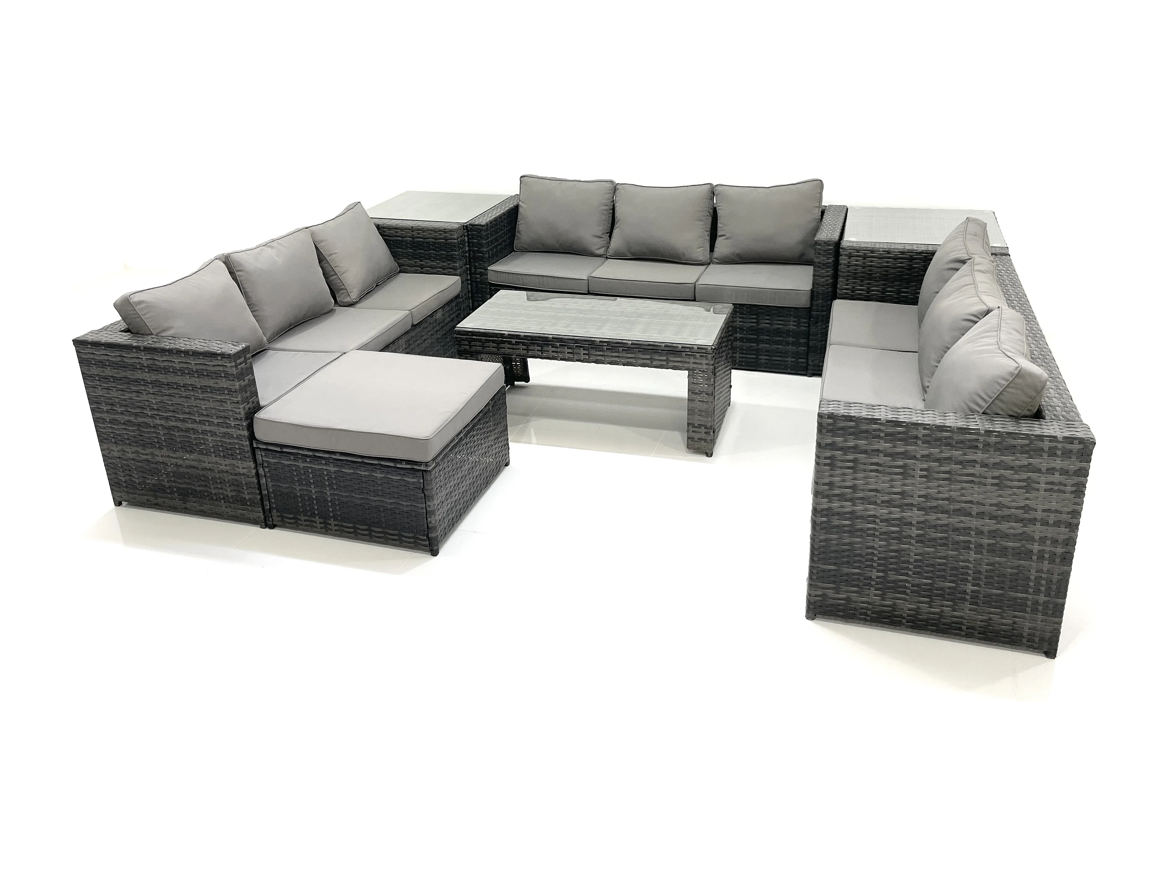 Gartenmöbel-Set 10-Sitzer Polyrattan Sofa Set mit Couchtisch 2 Großer Hockern 2 Beistelltischen Dunkelgrau Gemischt