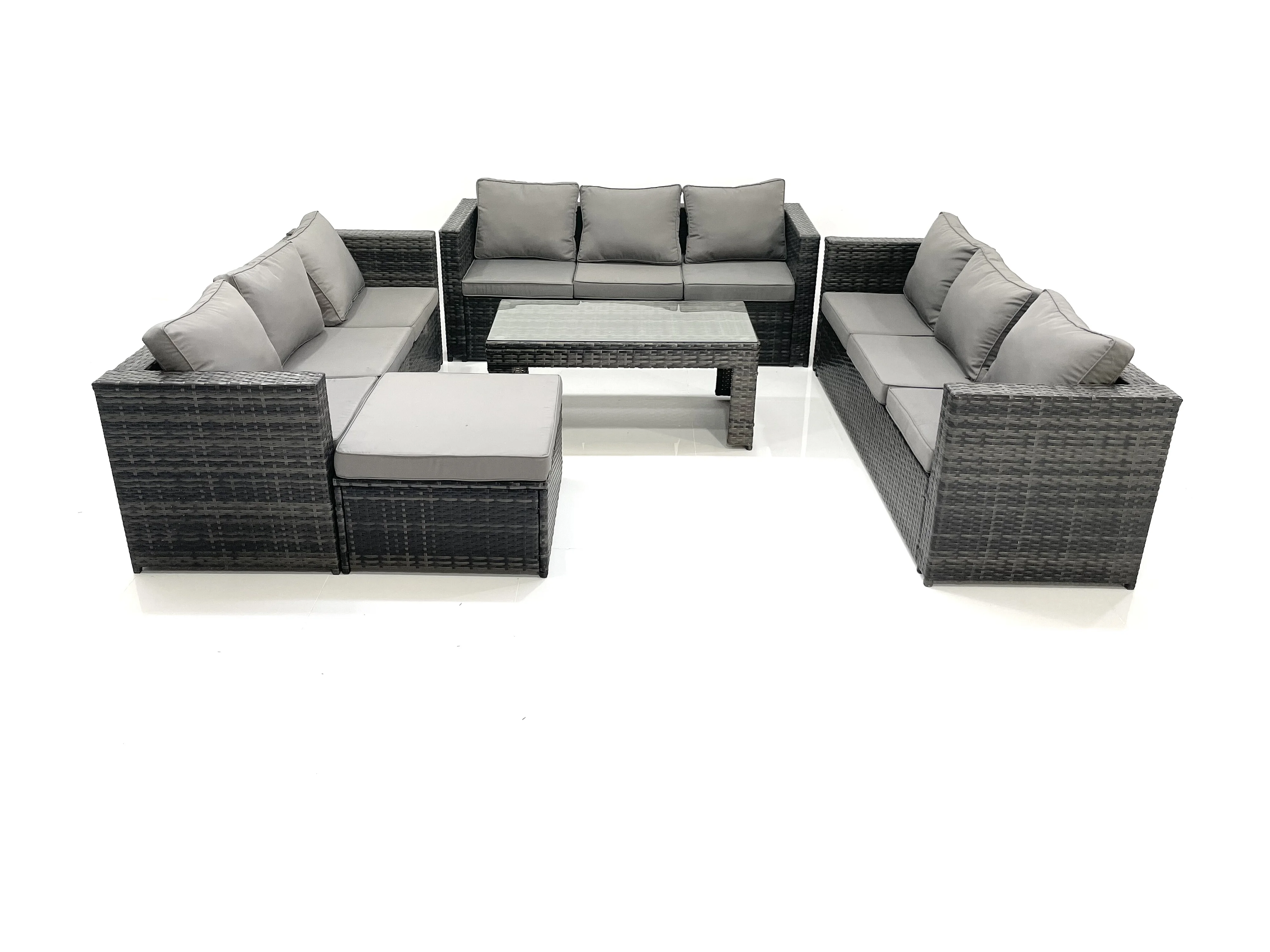 Gartenmöbel-Set 10-Sitzer Polyrattan Sofa Set mit Couchtisch 2 Großer Hockern Dunkelgrau Gemischt