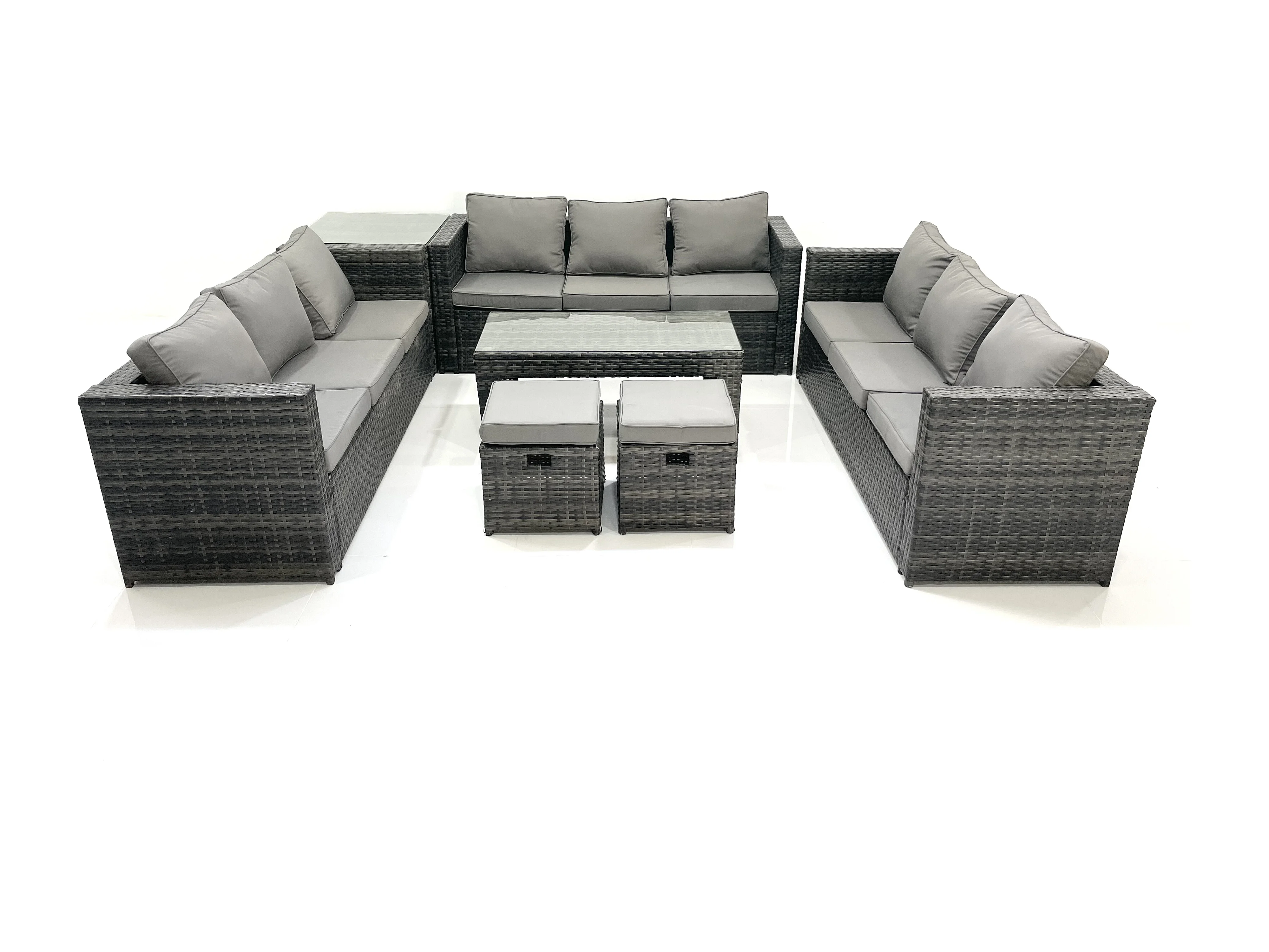 Gartenmöbel-Set 11-Sitzer Polyrattan Sofa Set mit Couchtisch 2 kleine Fußhockern Beistelltisch Dunkelgrau Gemischt