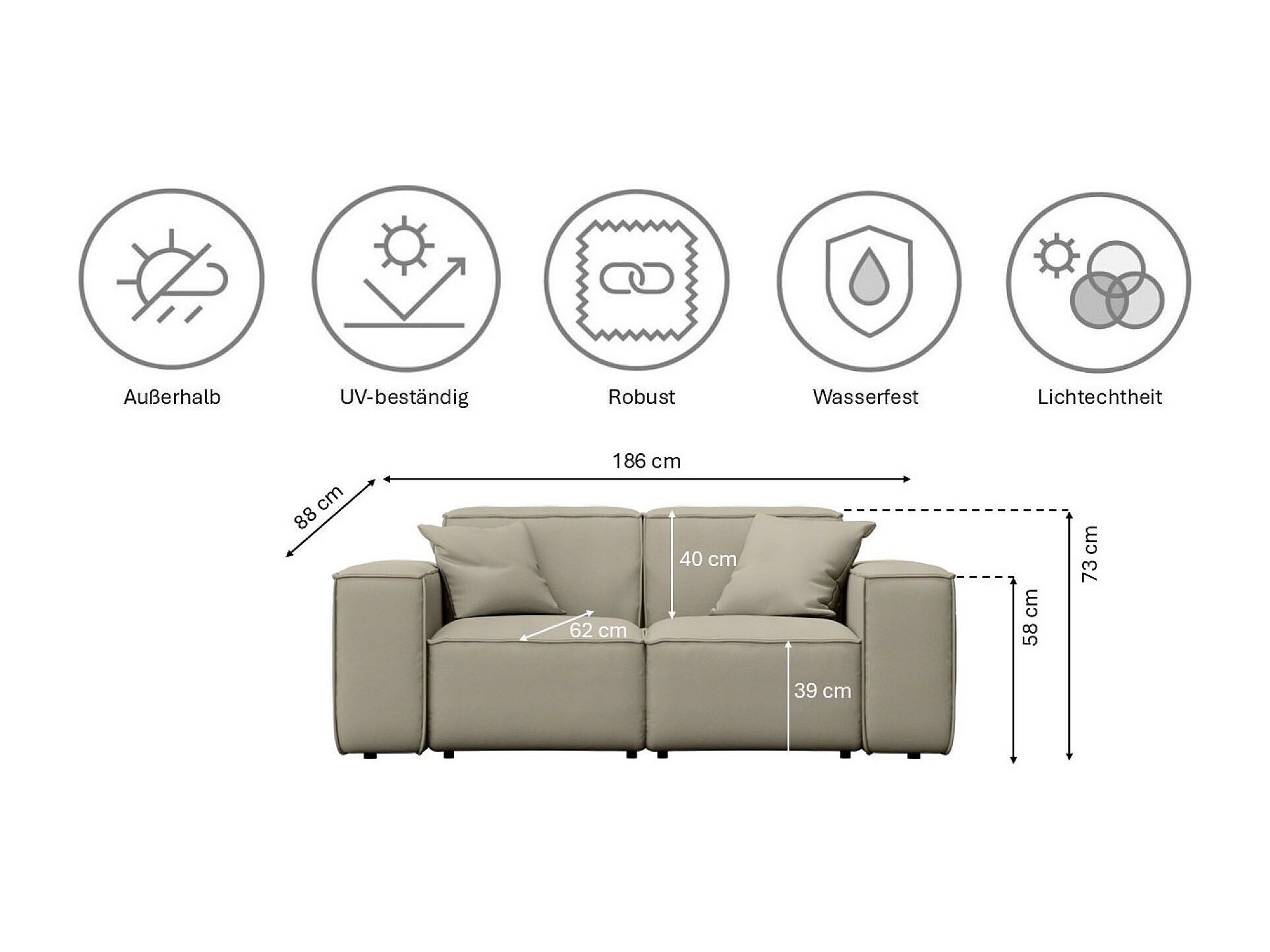 Gartenmöbel Set 3+2+1 MALIBU, Stoff ODYSSEY, Dunkelbeige