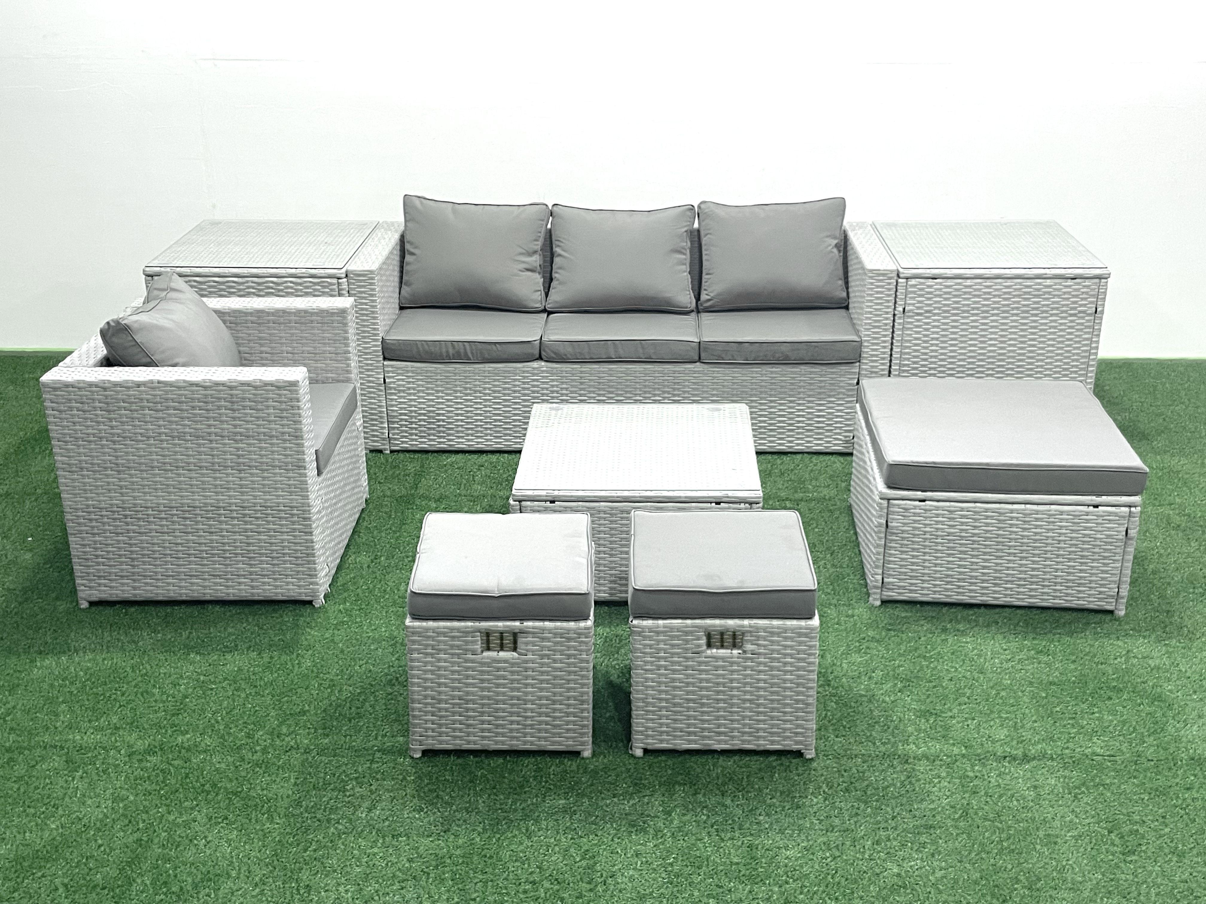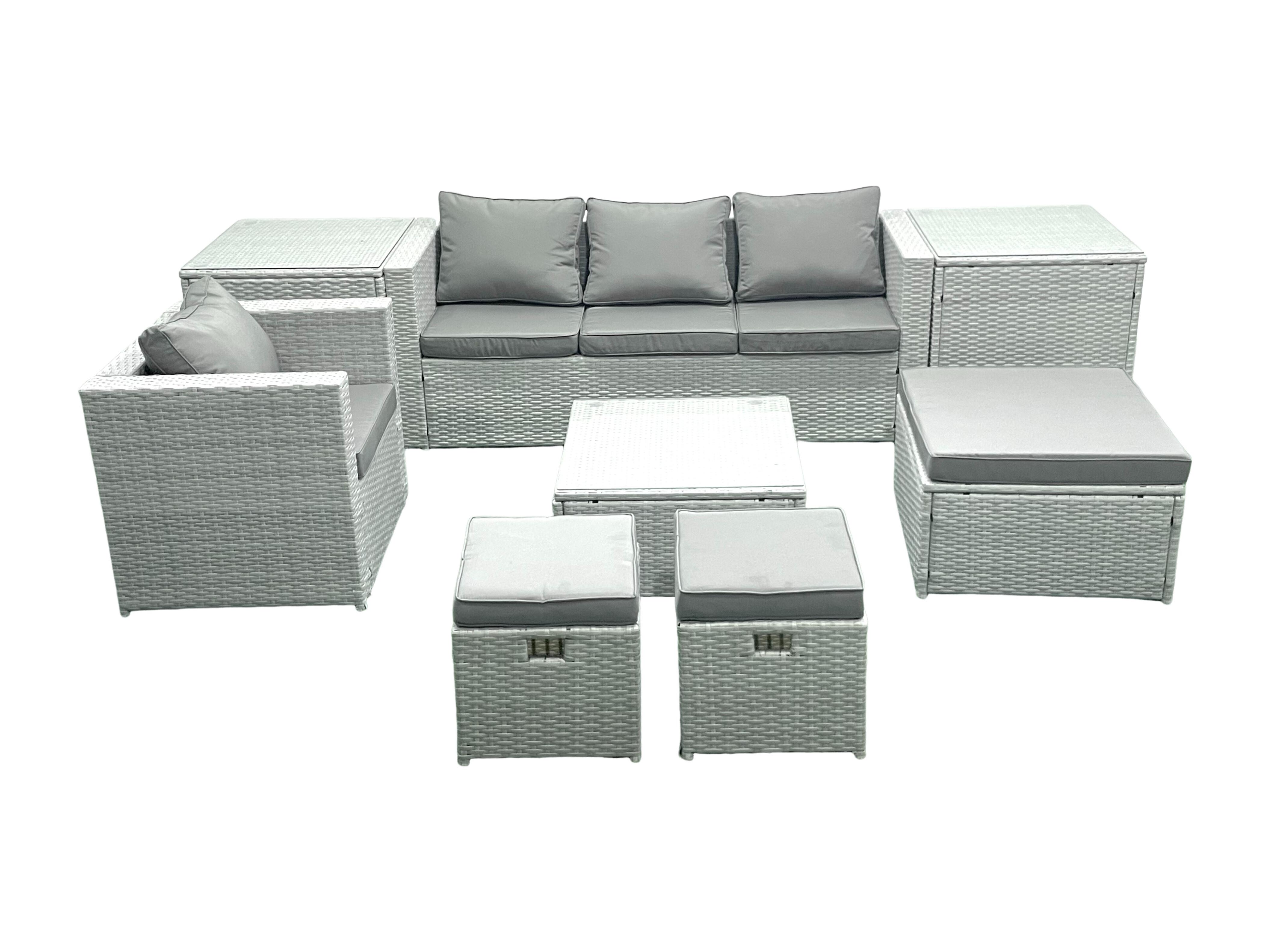 Gartenmöbel-Set 7-Sitzer Polyrattan Sofa Set mit 3 Hockern Sessel 2 Beistelltischen Hellgrau gemischt